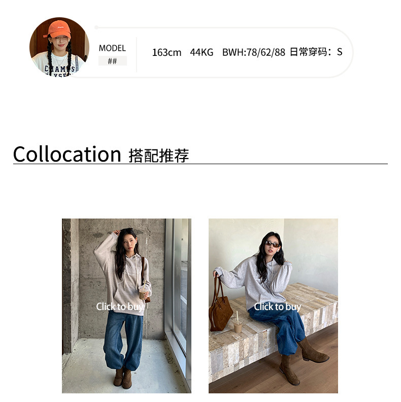 *o-ha-you*【FHZH1BF5030878】早秋新款套頭連帽衛衣復古灰色小個子寬鬆外套