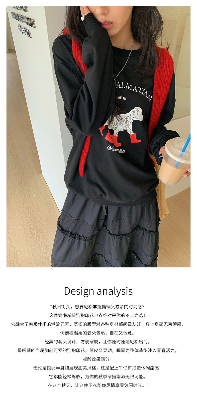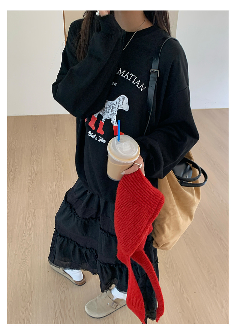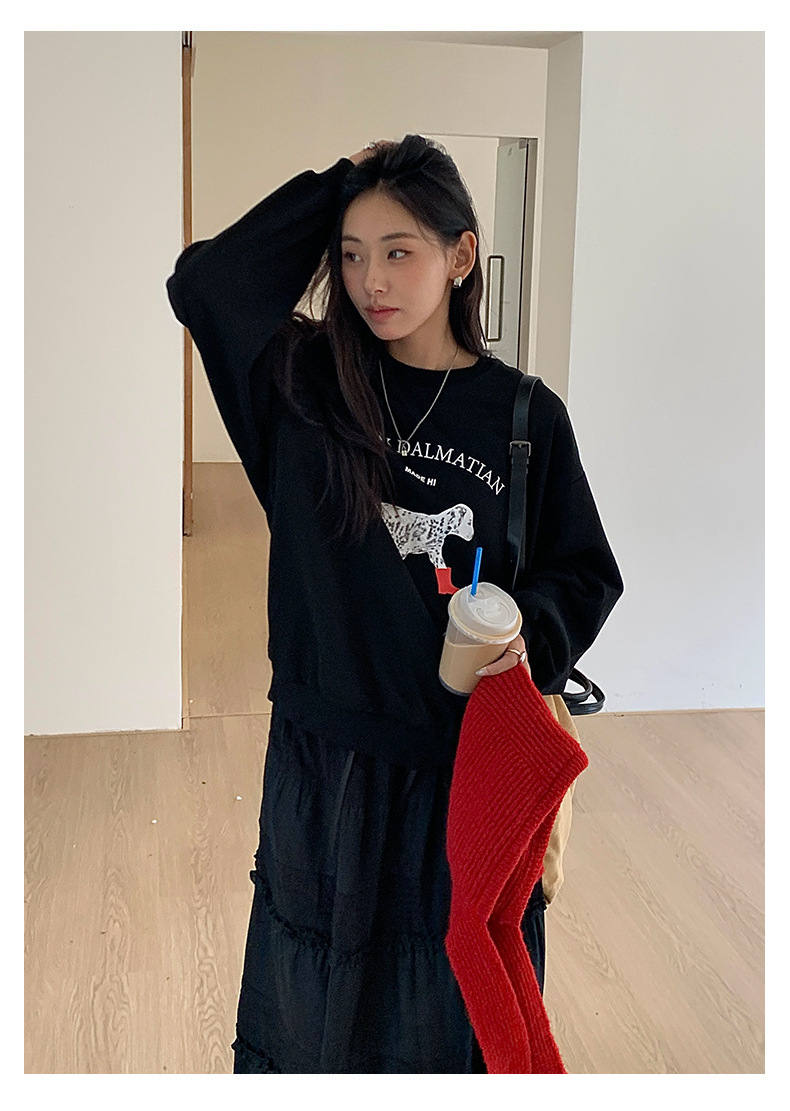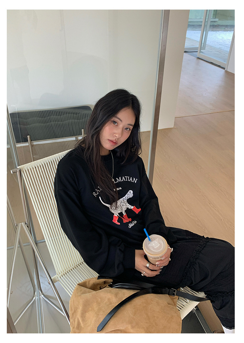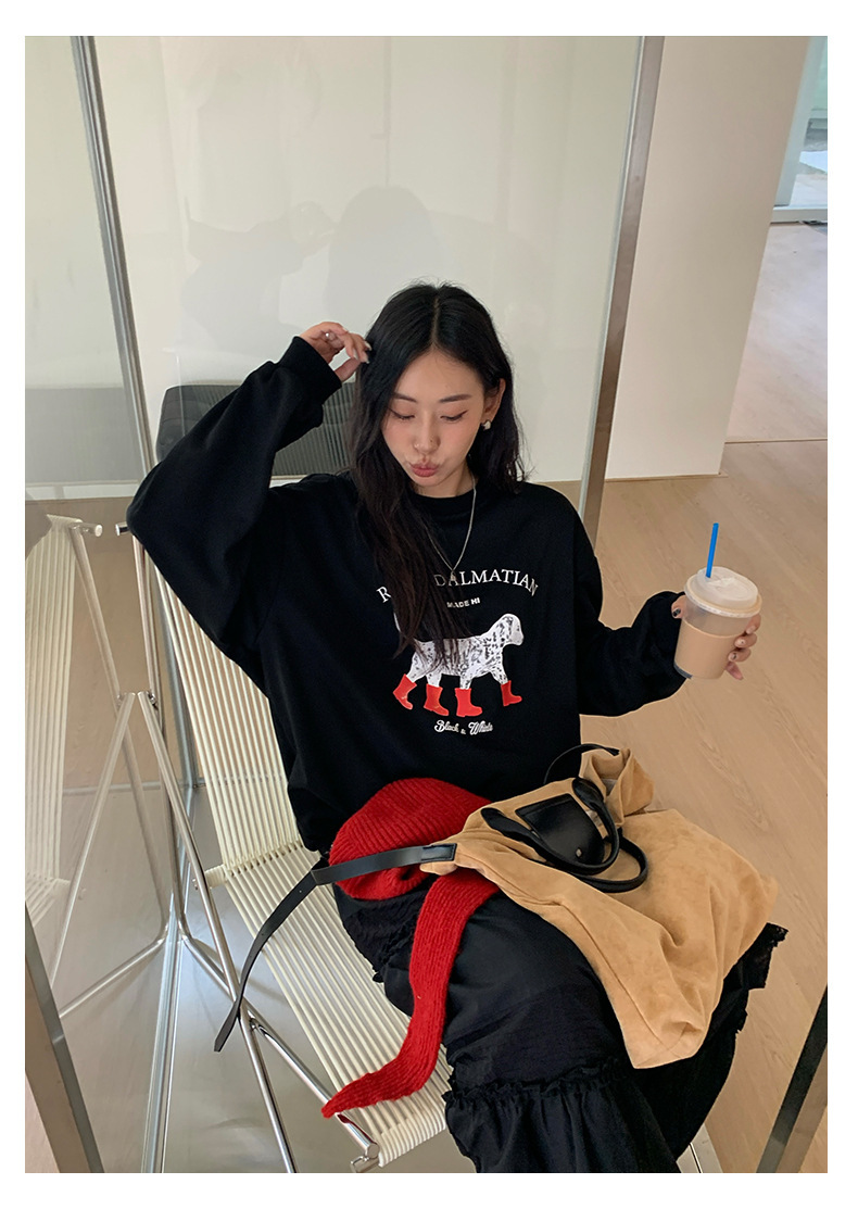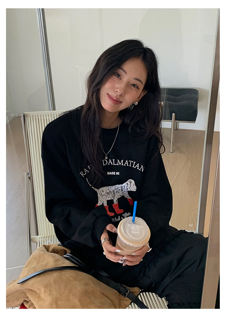 *o-ha-you*【FHZH1BF5030917】慵懶減齡狗狗印花衛衣秋季新款韓版休閒寬鬆套頭上衣