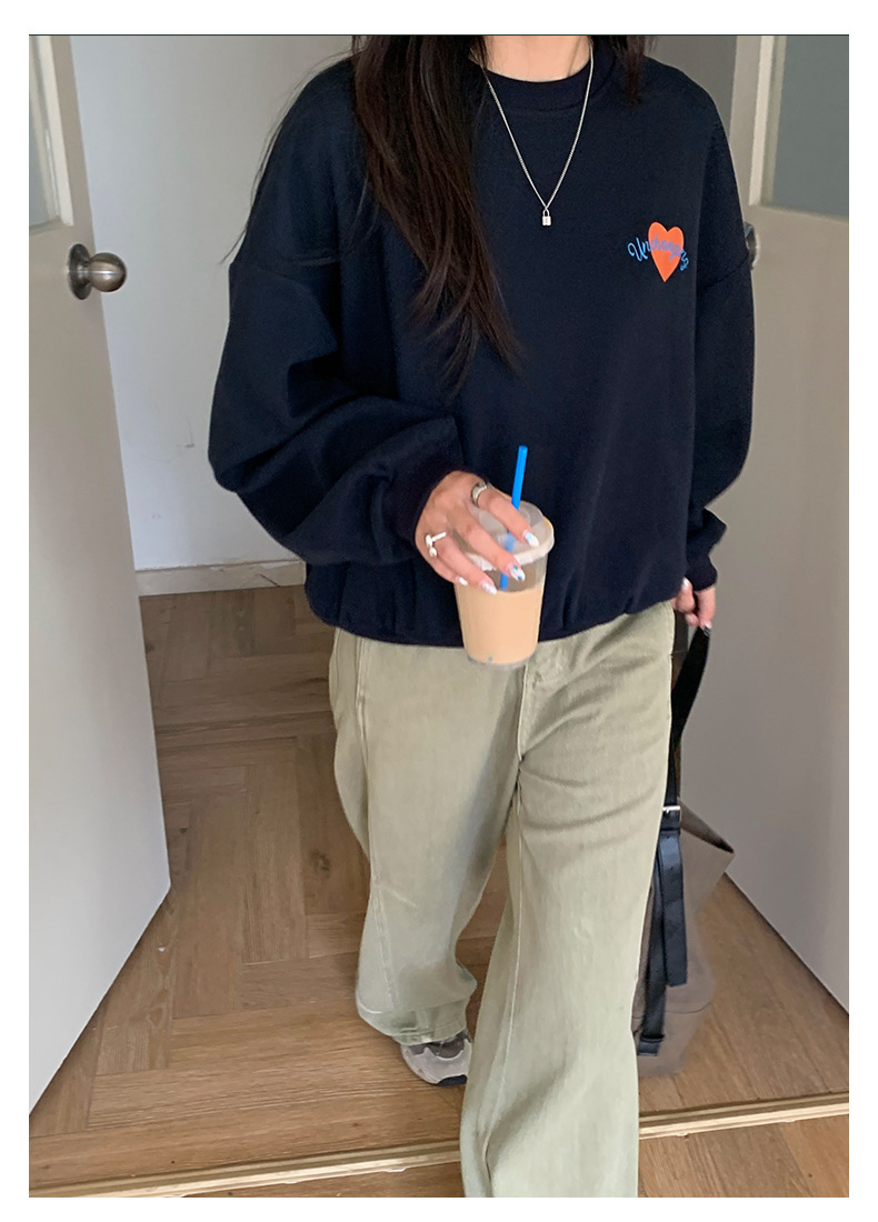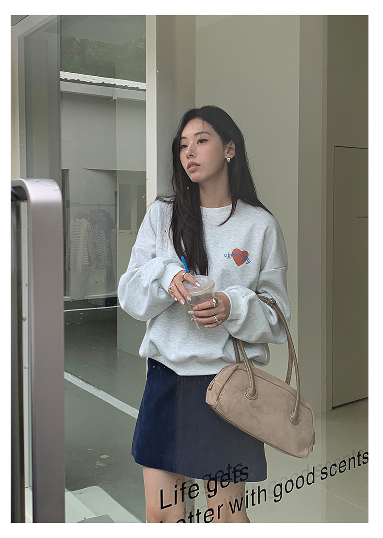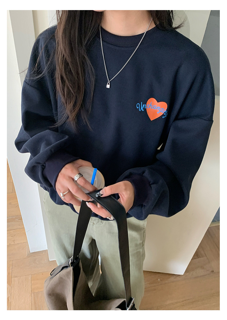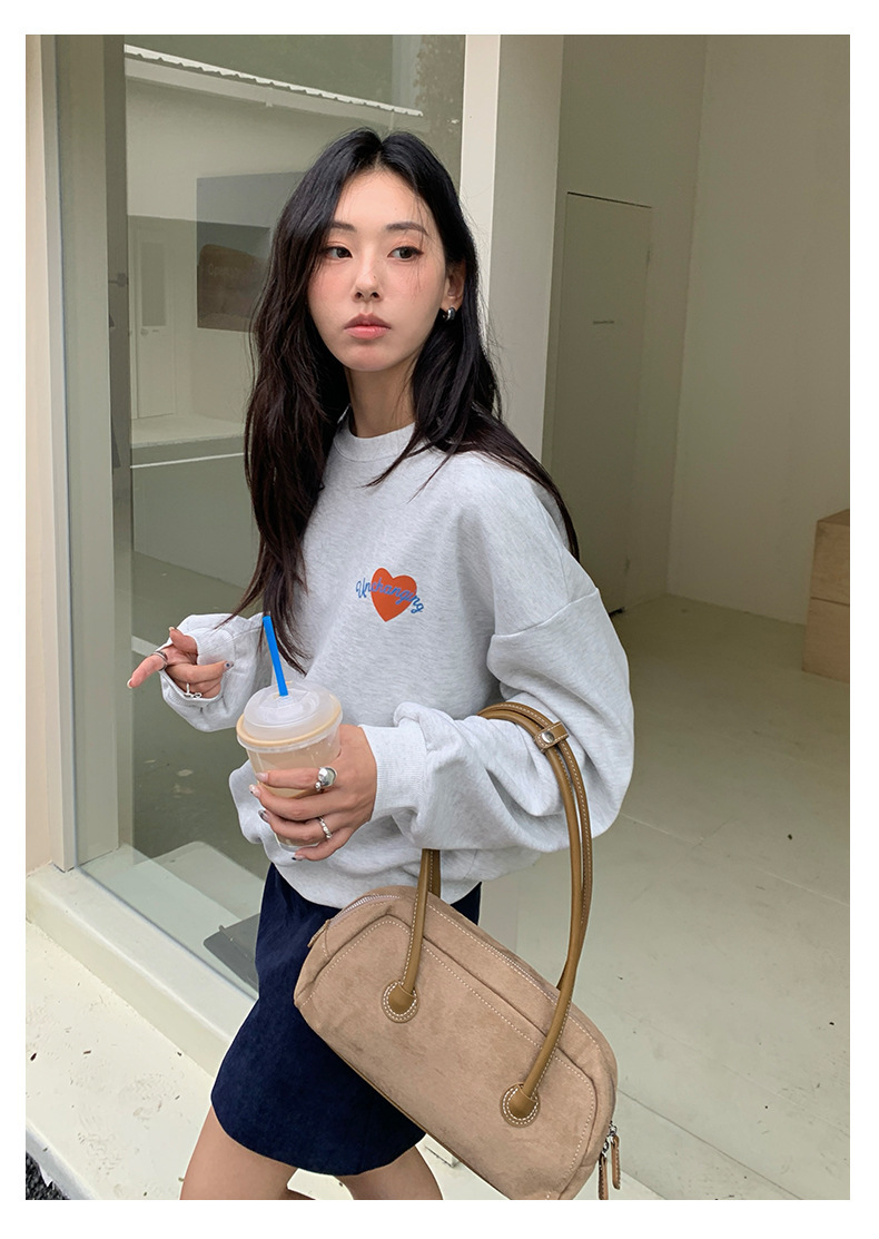 *o-ha-you*【FHZH1BF5030919】韓系愛心印花圓領長袖衛衣2025秋季休閒百搭通勤上衣-2色