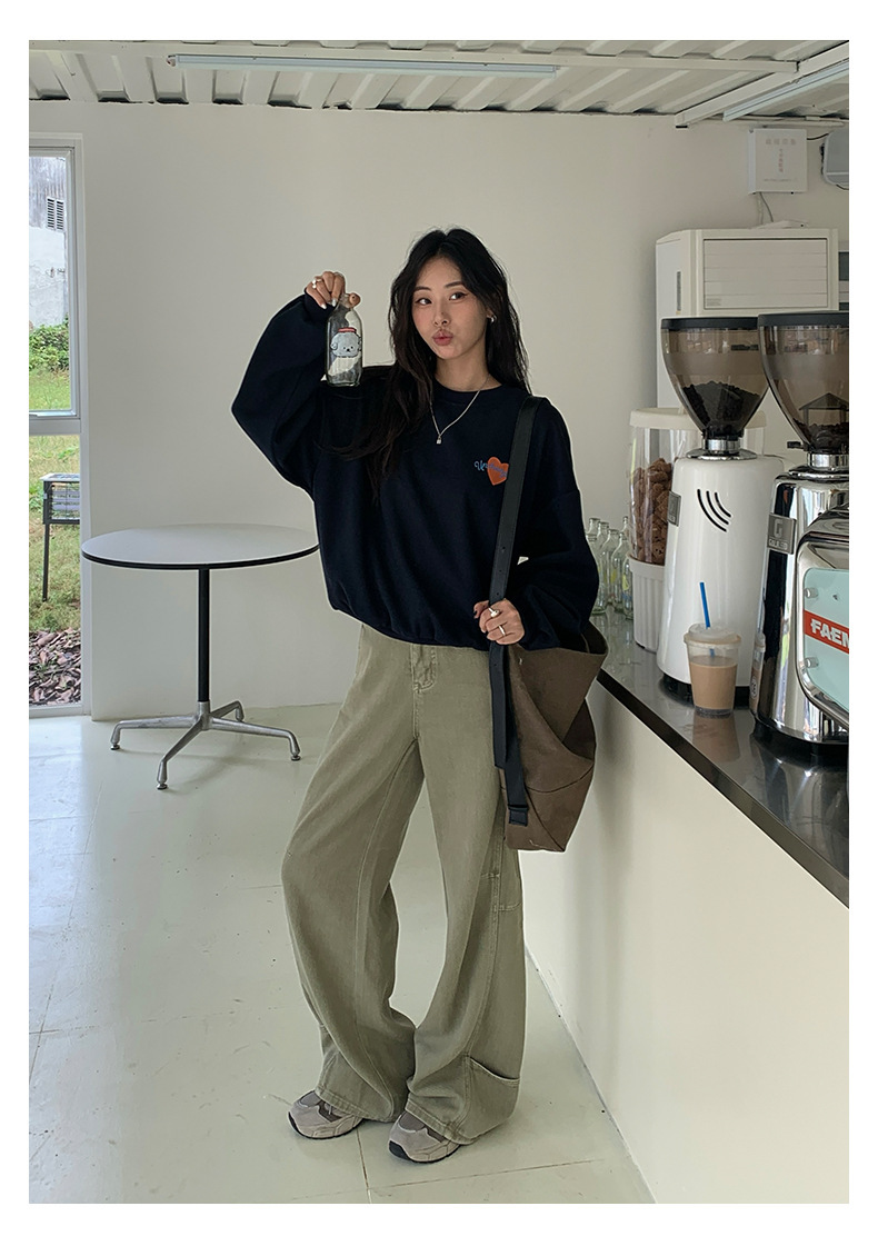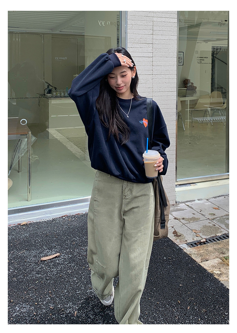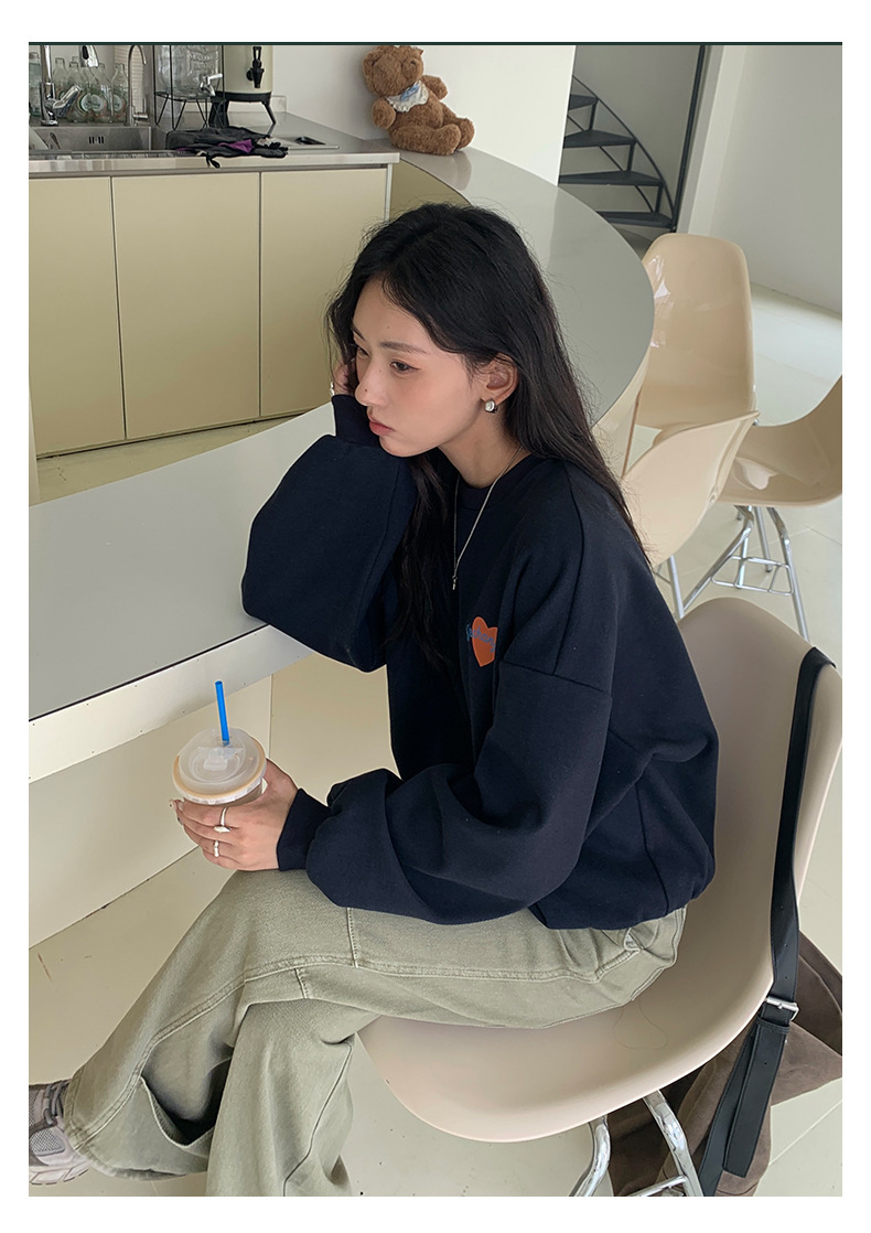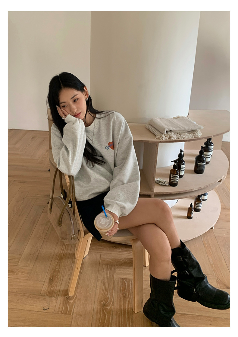 *o-ha-you*【FHZH1BF5030919】韓系愛心印花圓領長袖衛衣2025秋季休閒百搭通勤上衣-2色