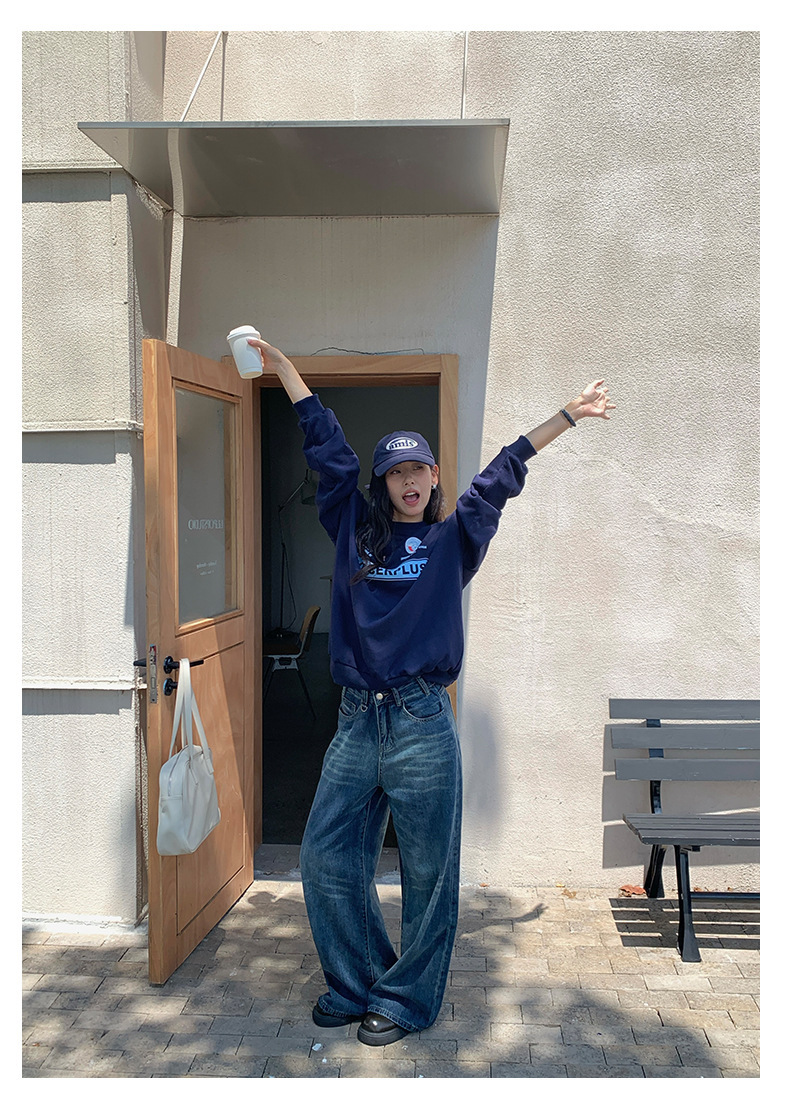 *o-ha-you*【FHZH1BF5030922】圖案印花圓領長袖衛衣女2025秋季韓版寬鬆休閒上衣外套-2色