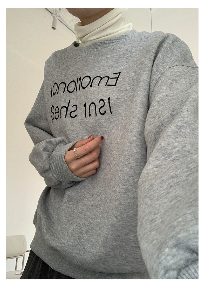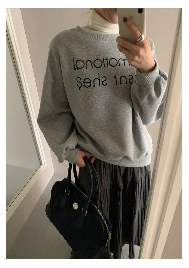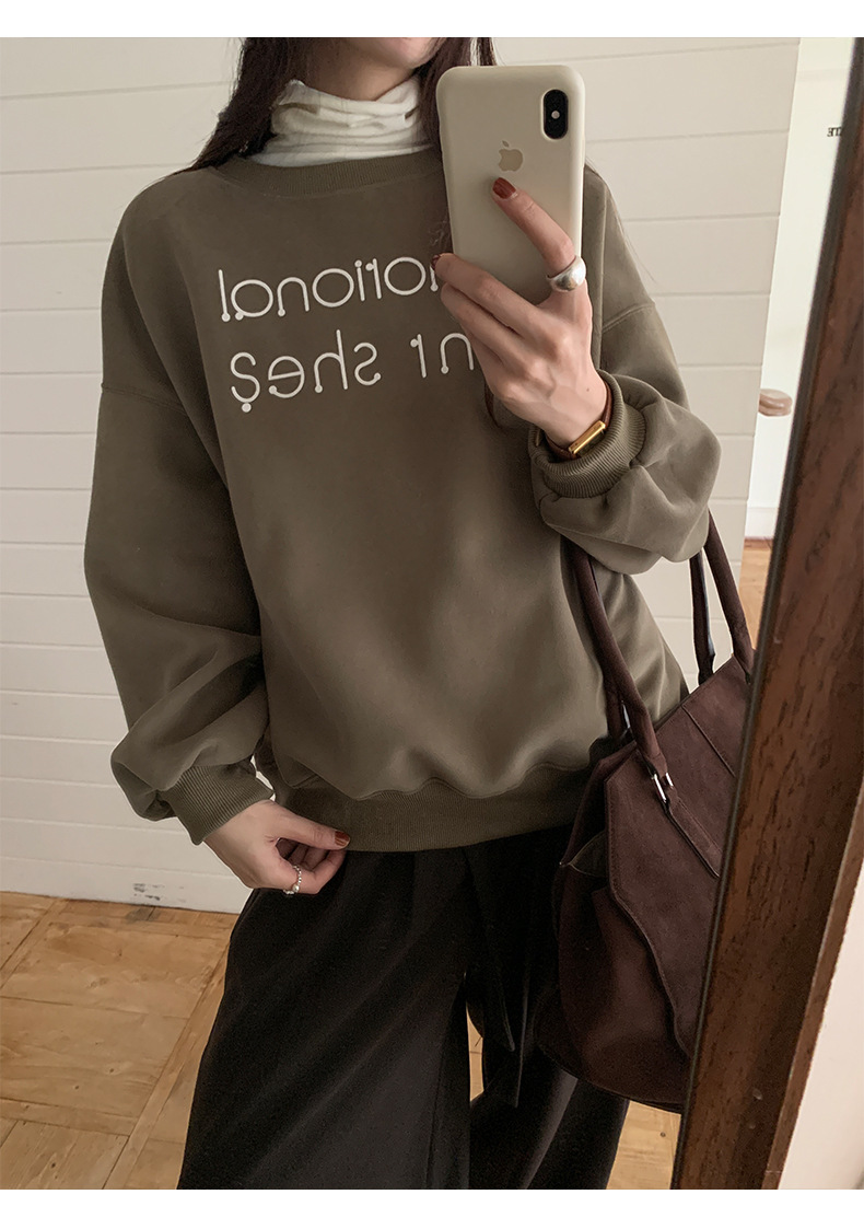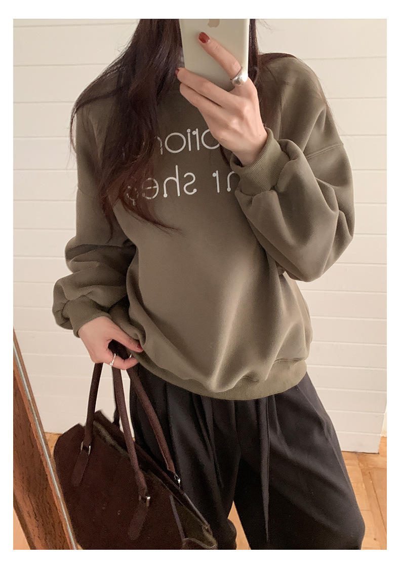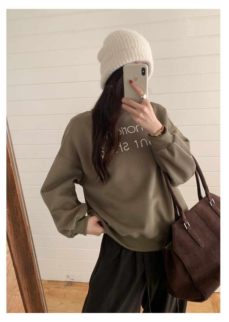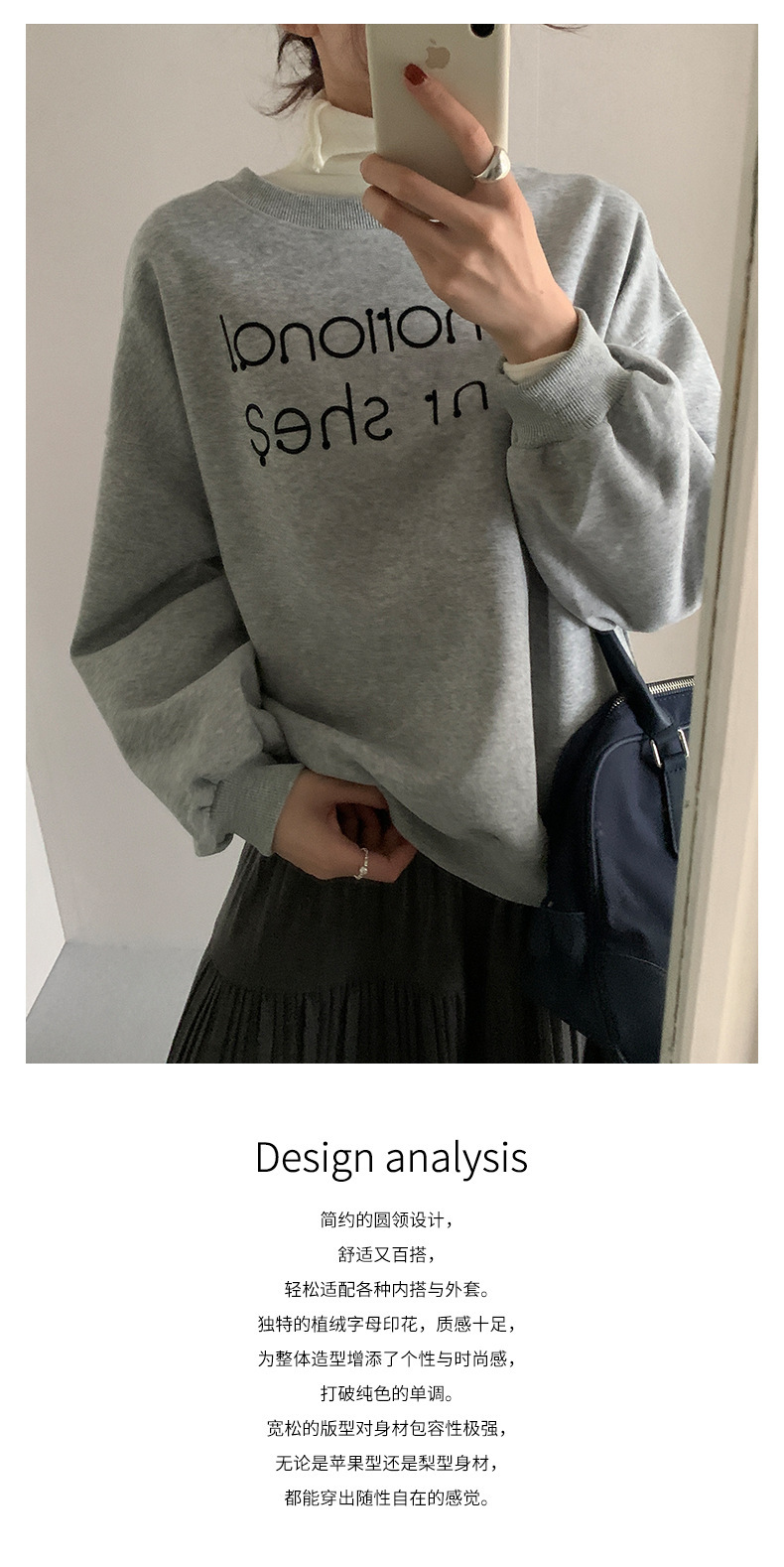 *o-ha-you*【FHZH1BF5041036】韓系植絨字母印花圓領衛衣女秋冬寬鬆休閒通勤長袖上衣-2色