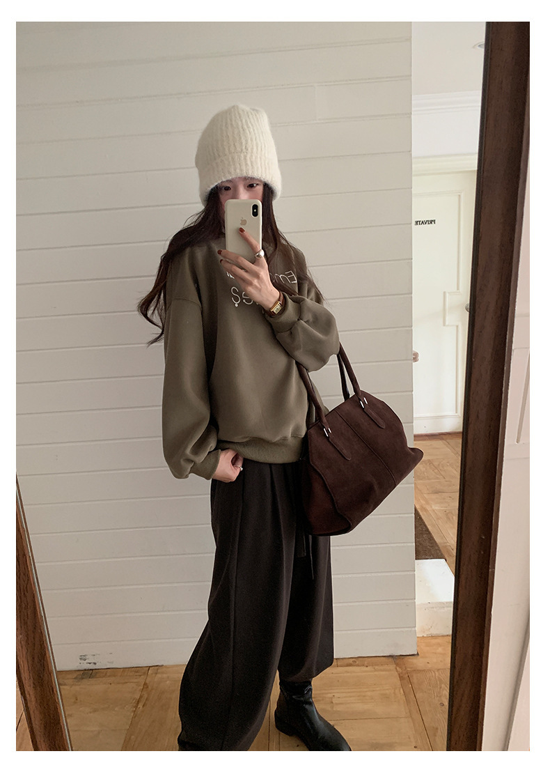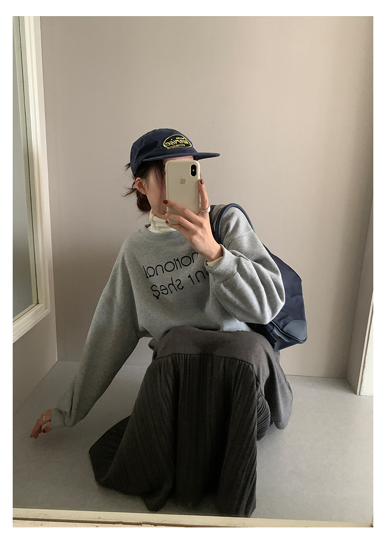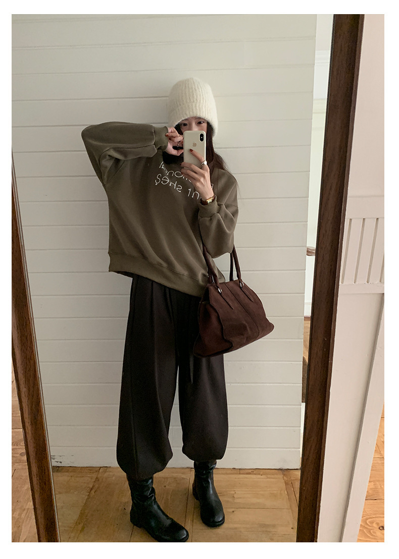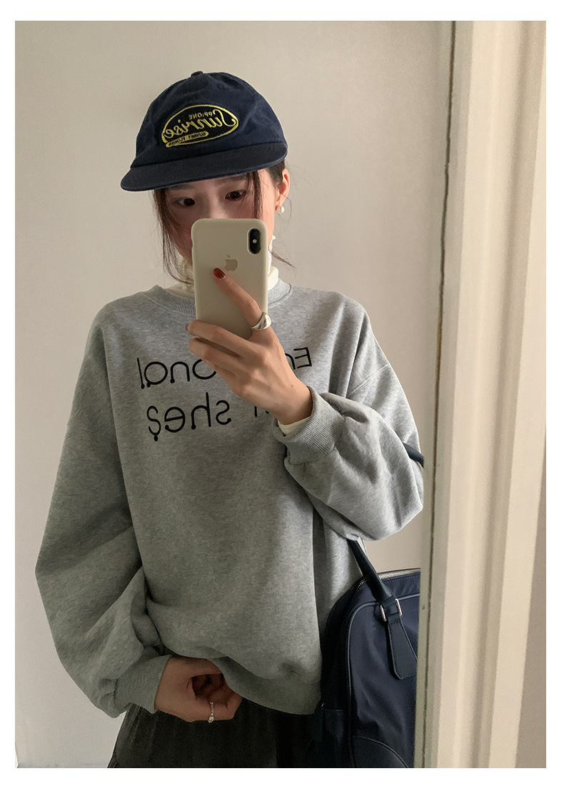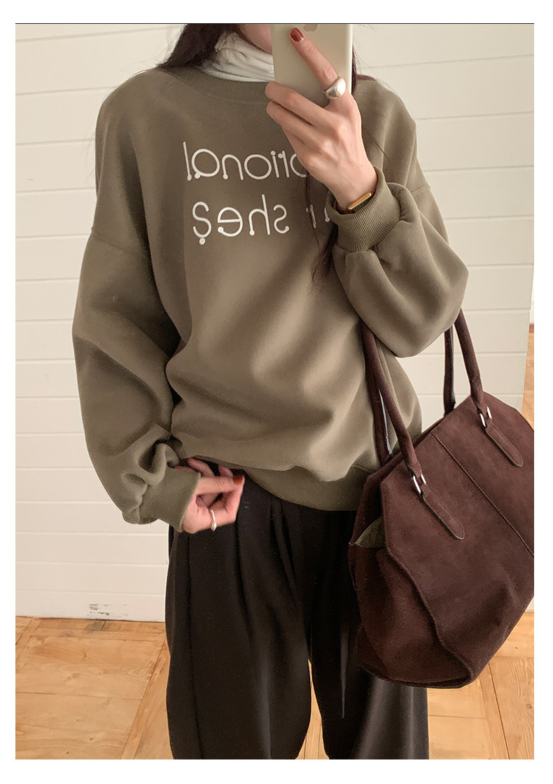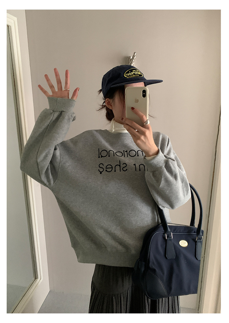*o-ha-you*【FHZH1BF5041036】韓系植絨字母印花圓領衛衣女秋冬寬鬆休閒通勤長袖上衣-2色