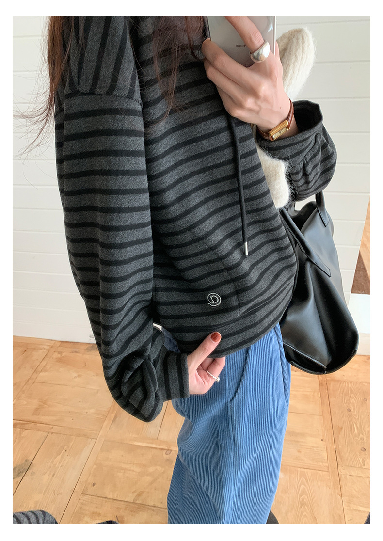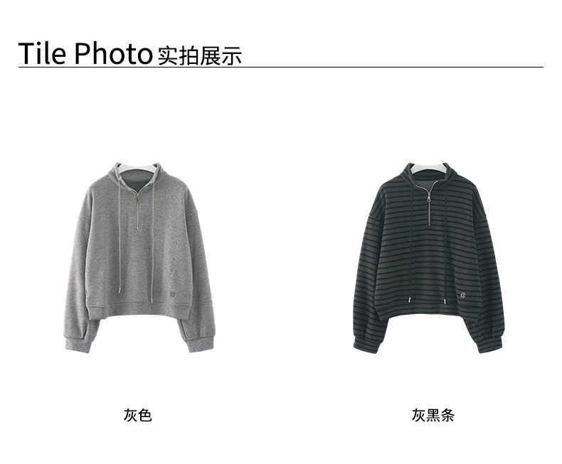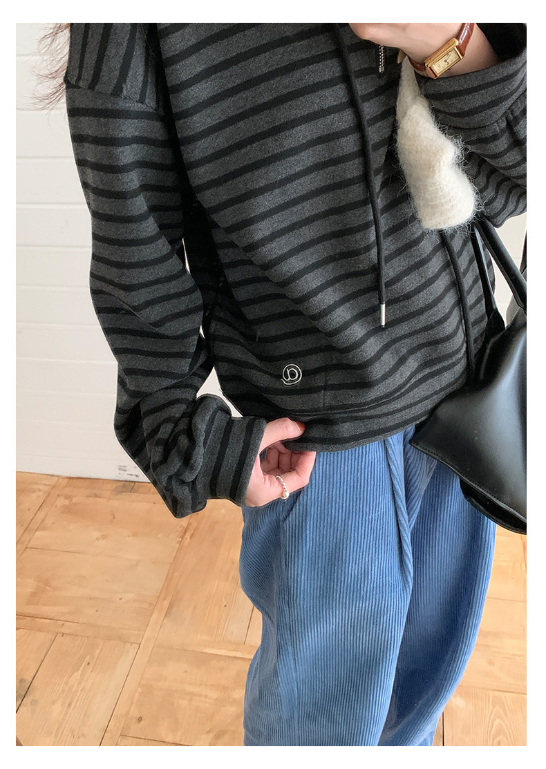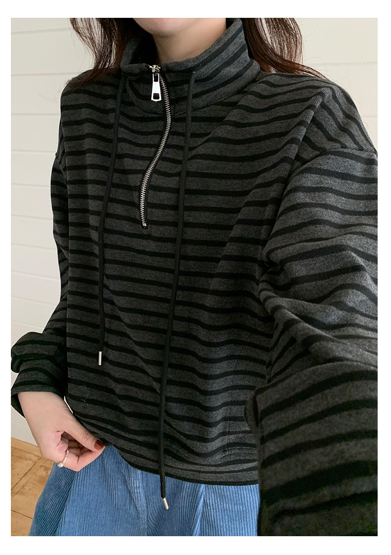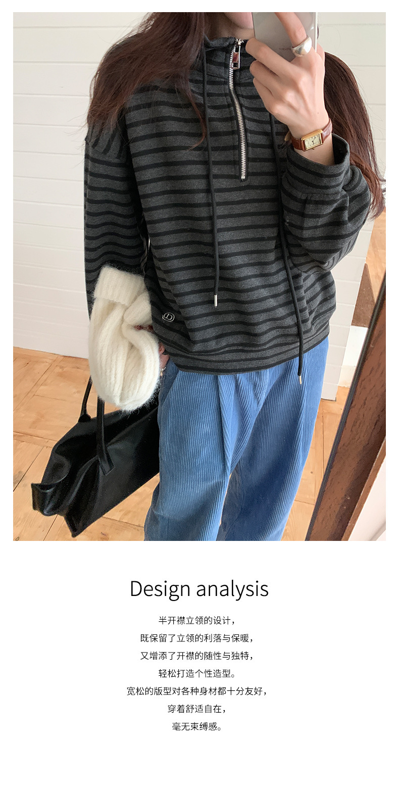 *o-ha-you*【FHZH1BF5041050】韓系簡約條紋半開襟立領衛衣秋冬新款寬鬆百搭長袖上衣-2色