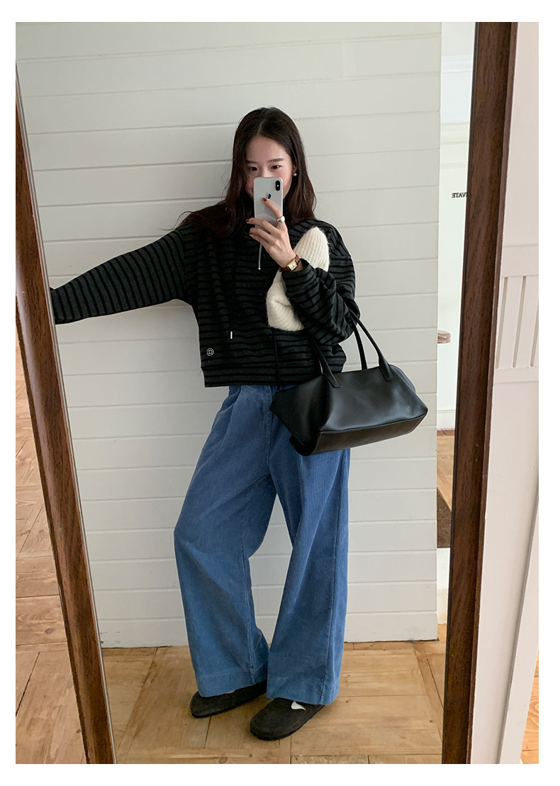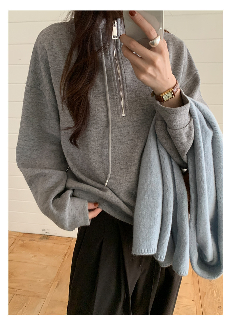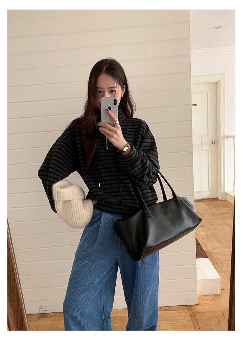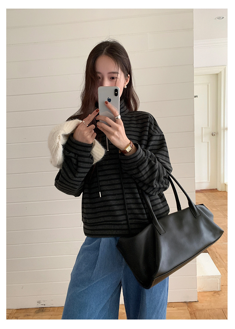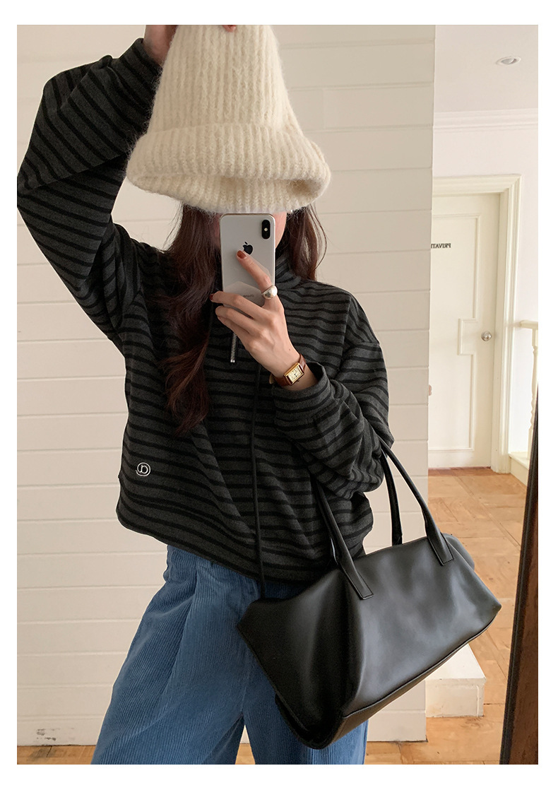 *o-ha-you*【FHZH1BF5041050】韓系簡約條紋半開襟立領衛衣秋冬新款寬鬆百搭長袖上衣-2色