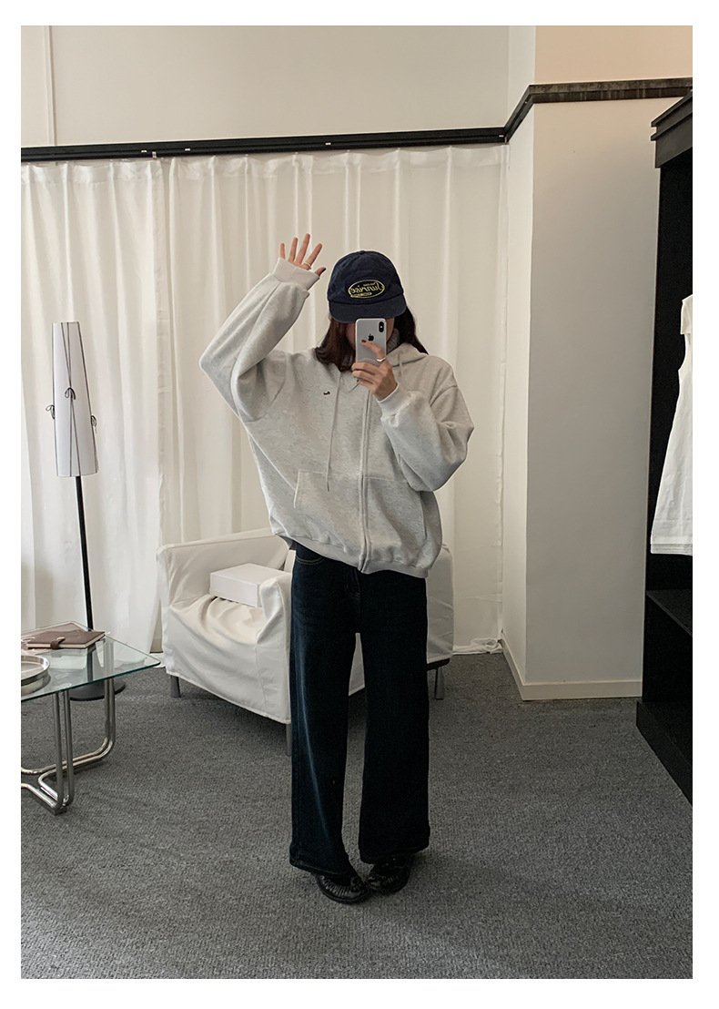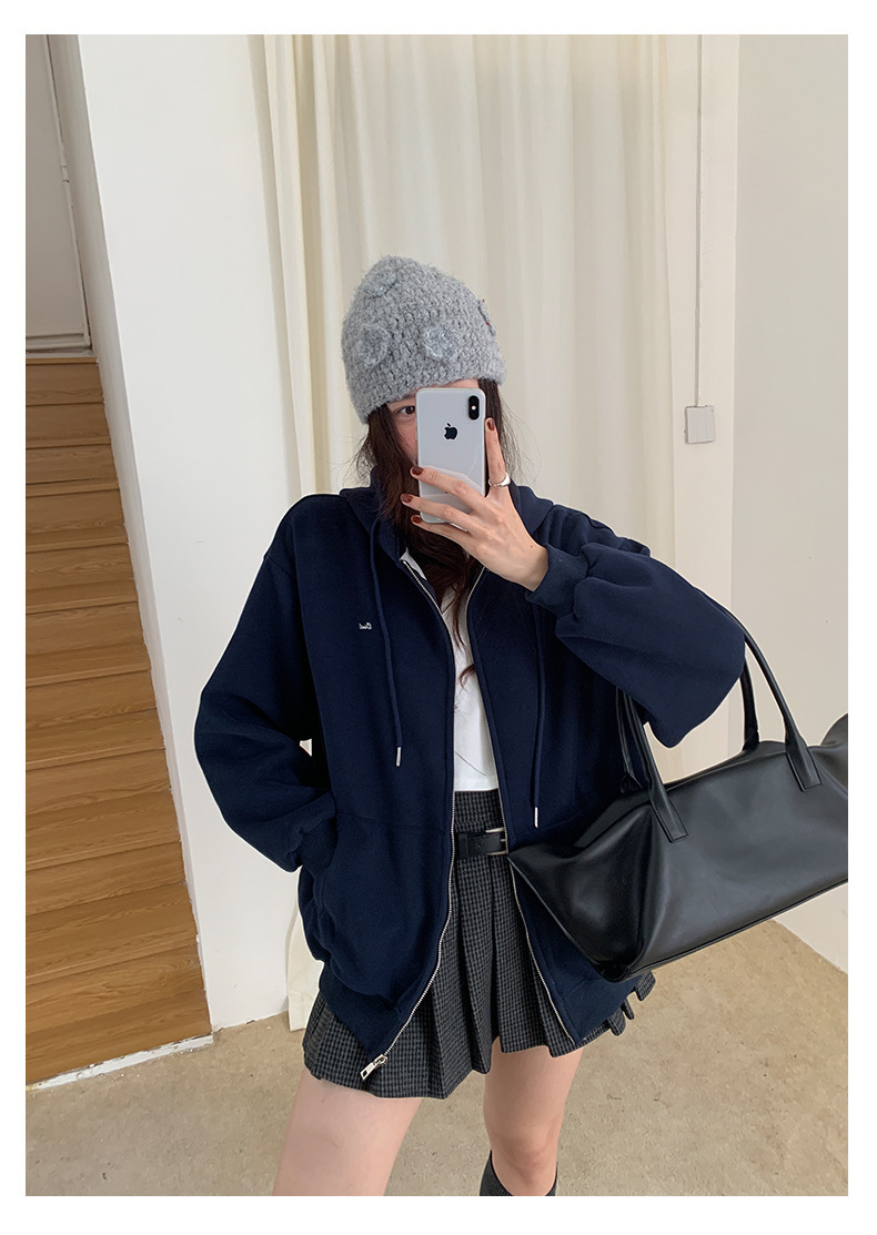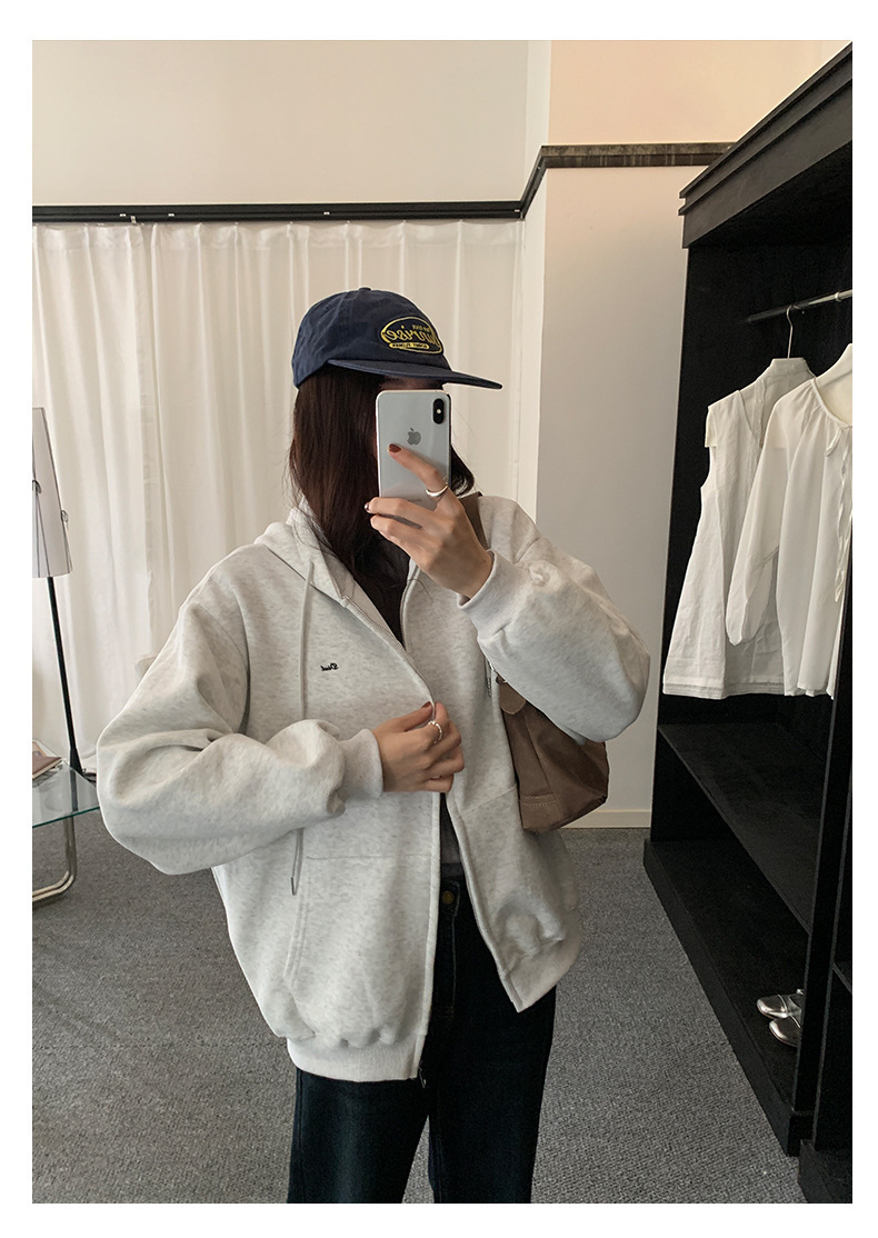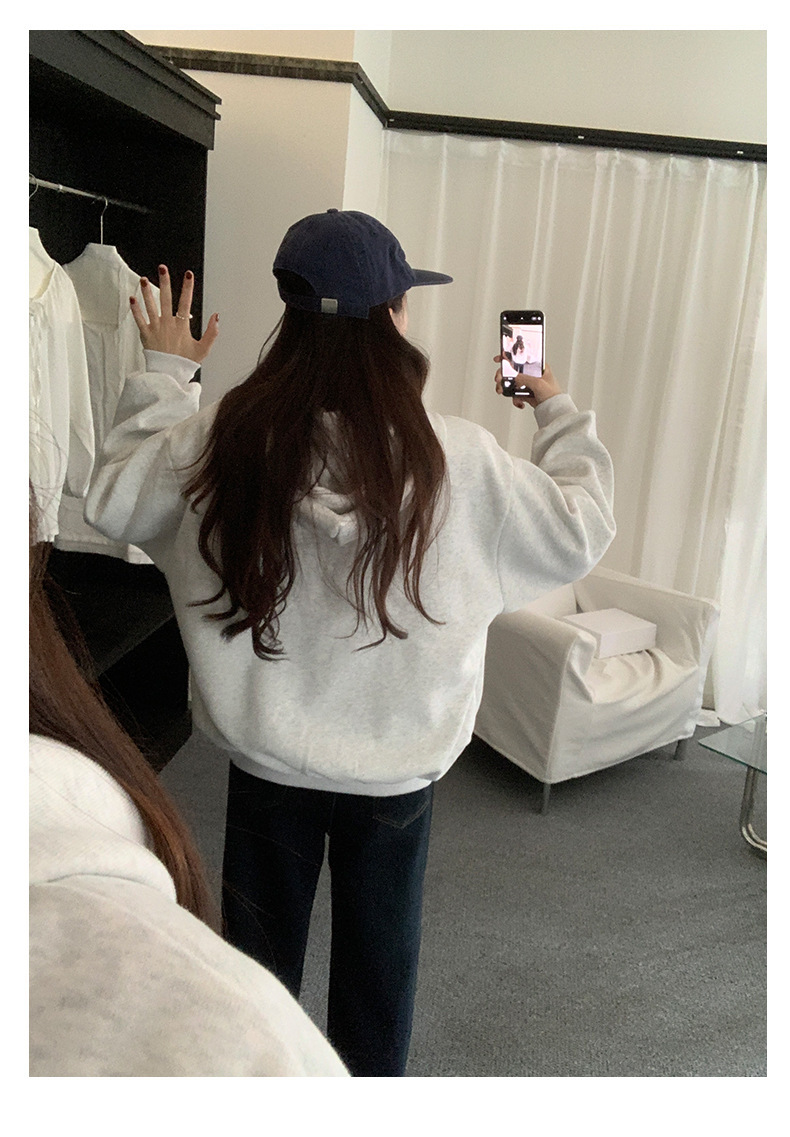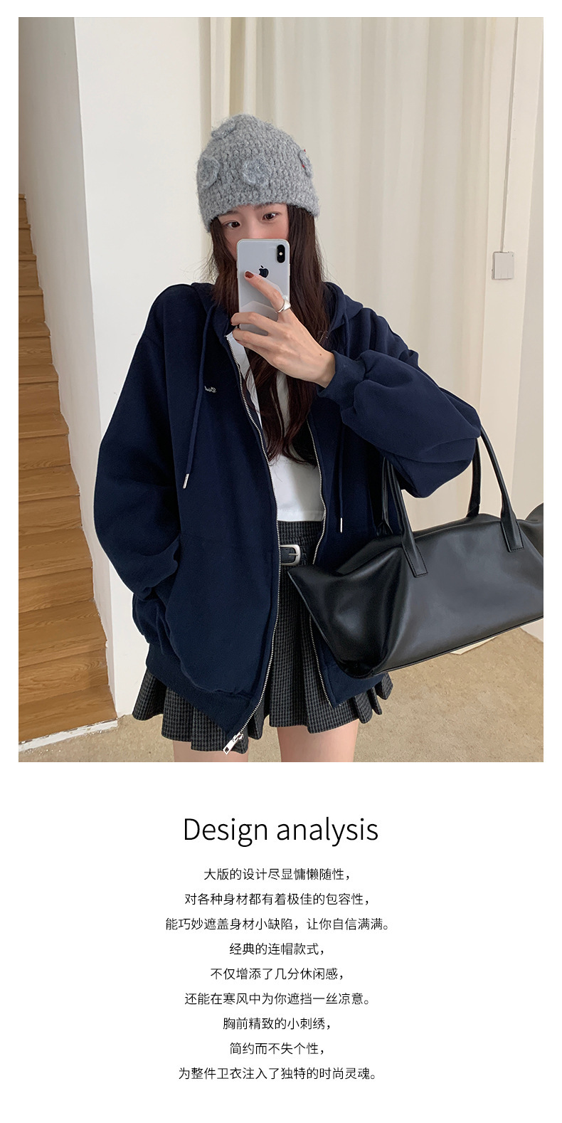 *o-ha-you*【FHZH1BF5041066】簡約大版刺繡長袖連帽衛衣女秋冬減齡寬鬆帽衫外套上衣-2色