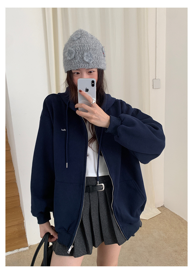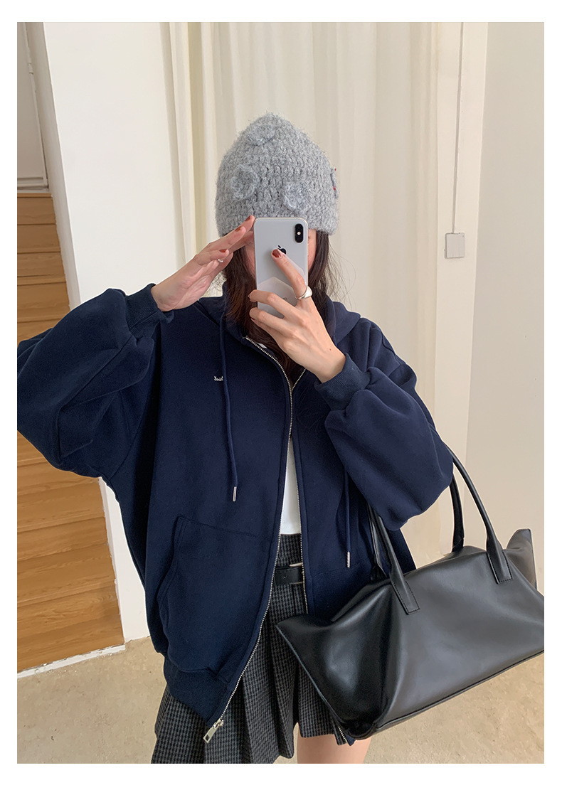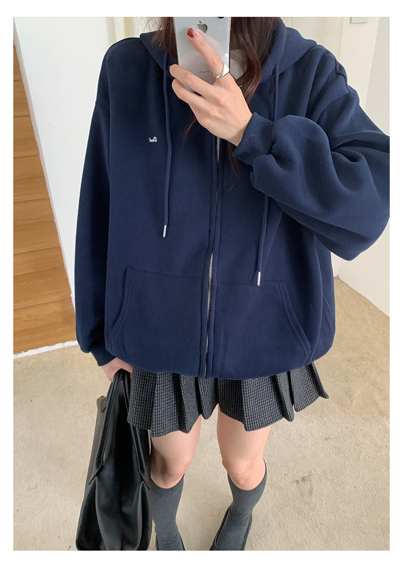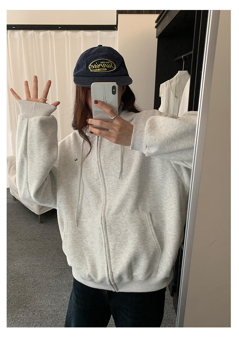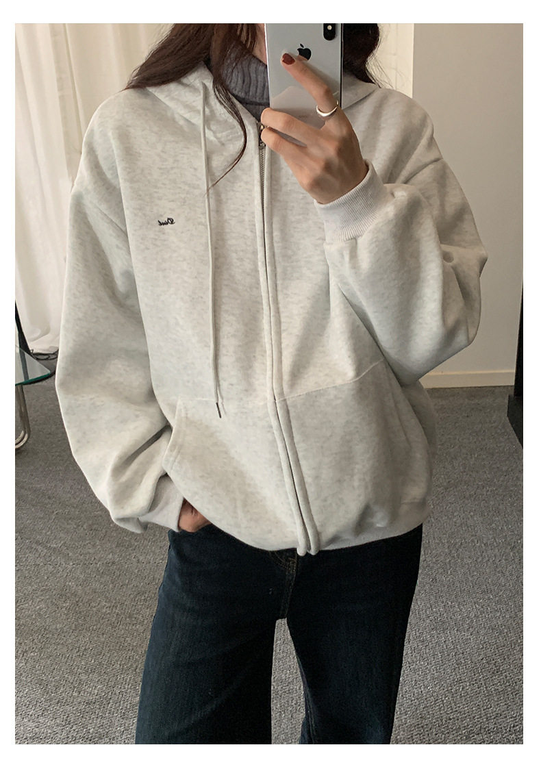 *o-ha-you*【FHZH1BF5041066】簡約大版刺繡長袖連帽衛衣女秋冬減齡寬鬆帽衫外套上衣-2色