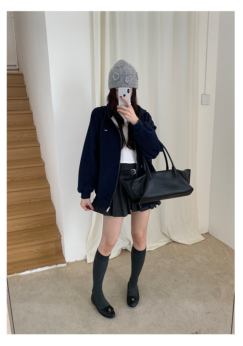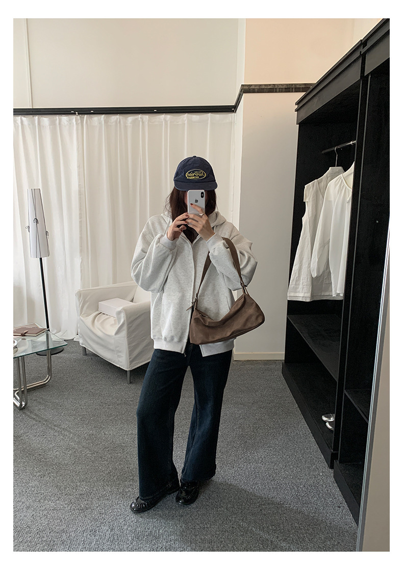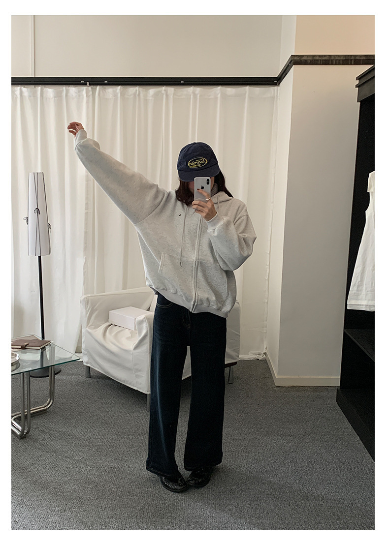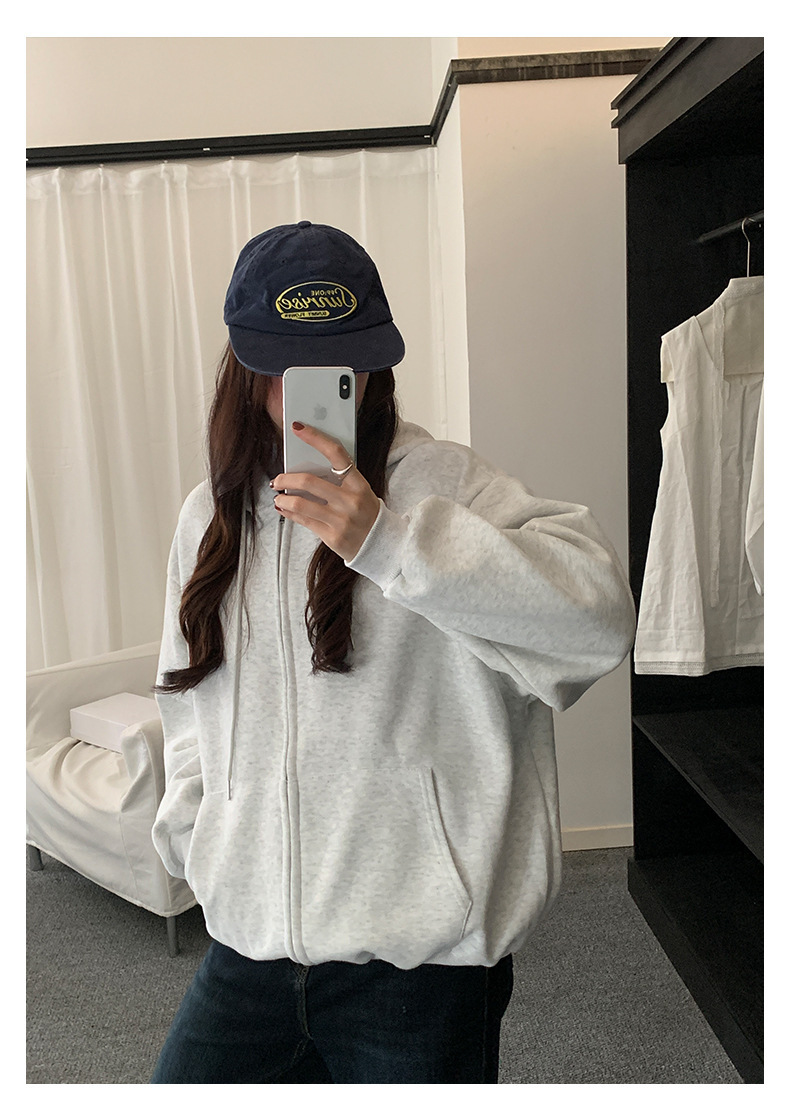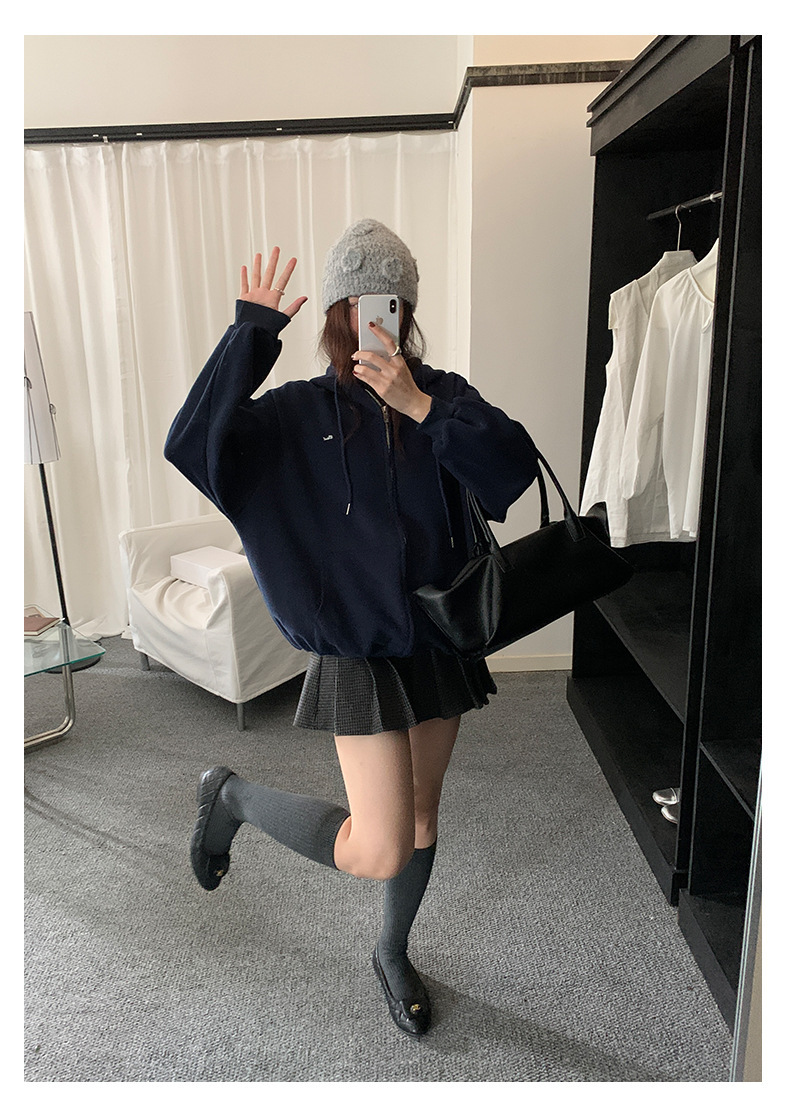 *o-ha-you*【FHZH1BF5041066】簡約大版刺繡長袖連帽衛衣女秋冬減齡寬鬆帽衫外套上衣-2色