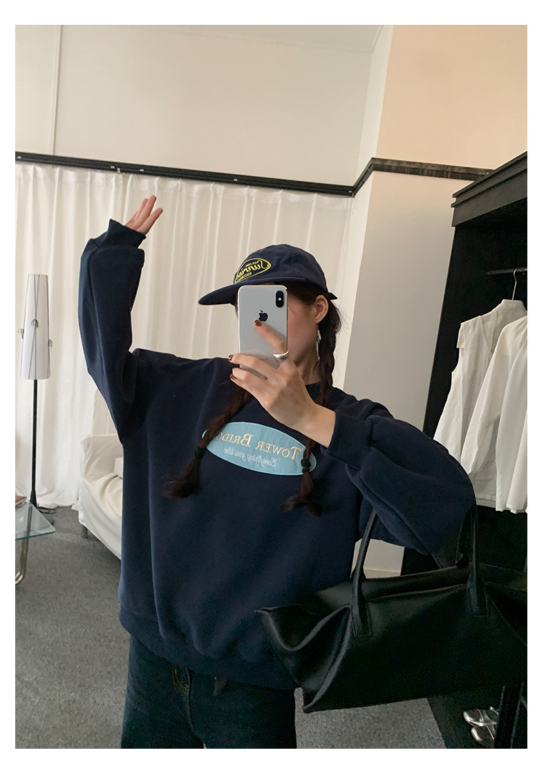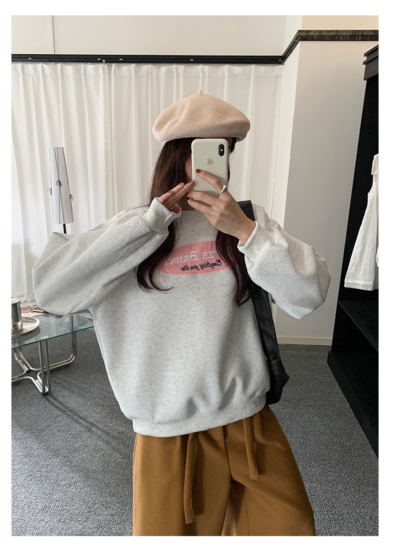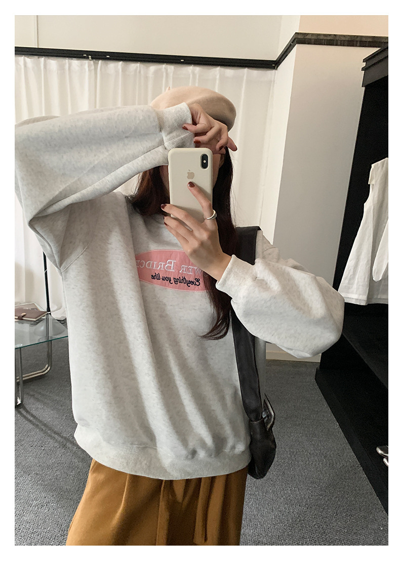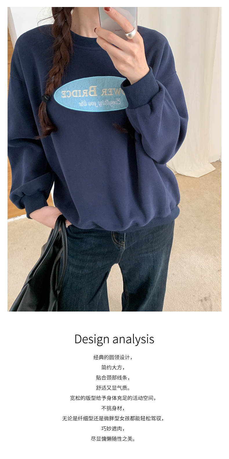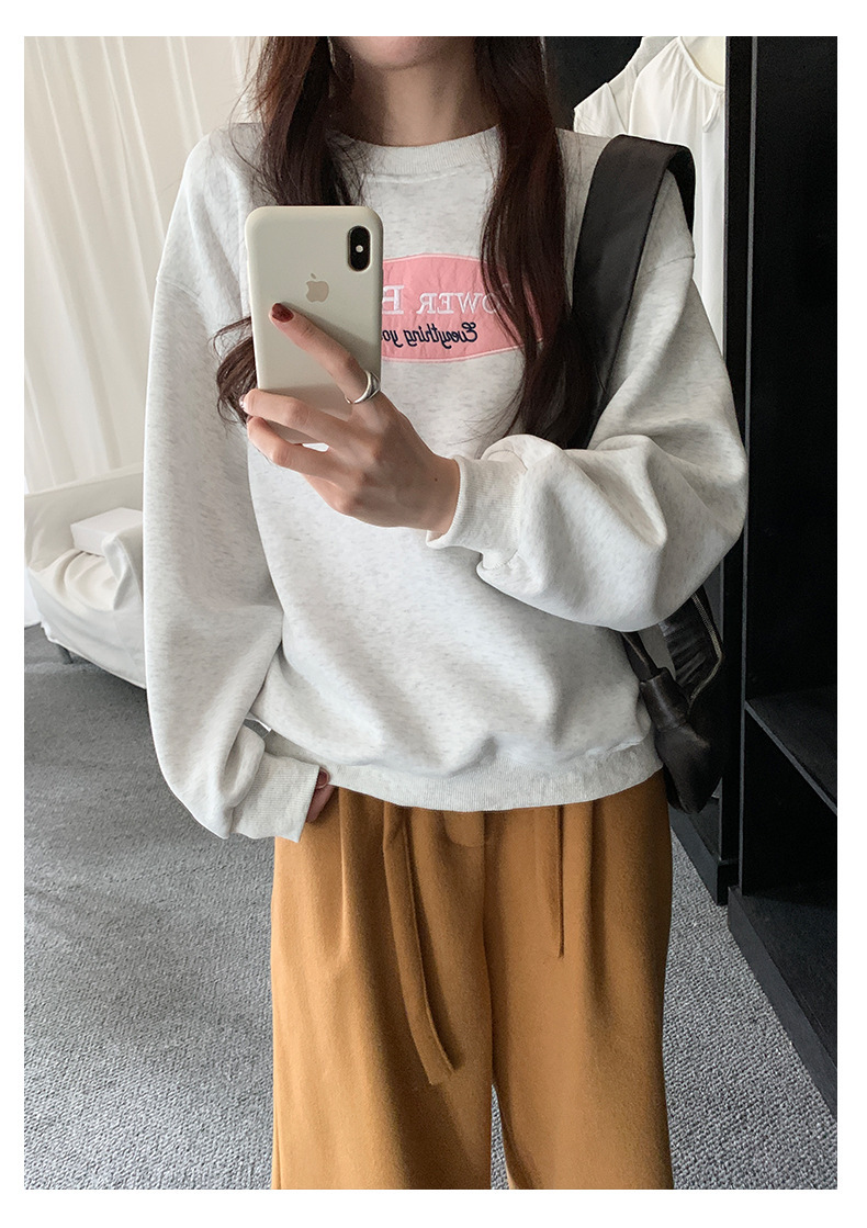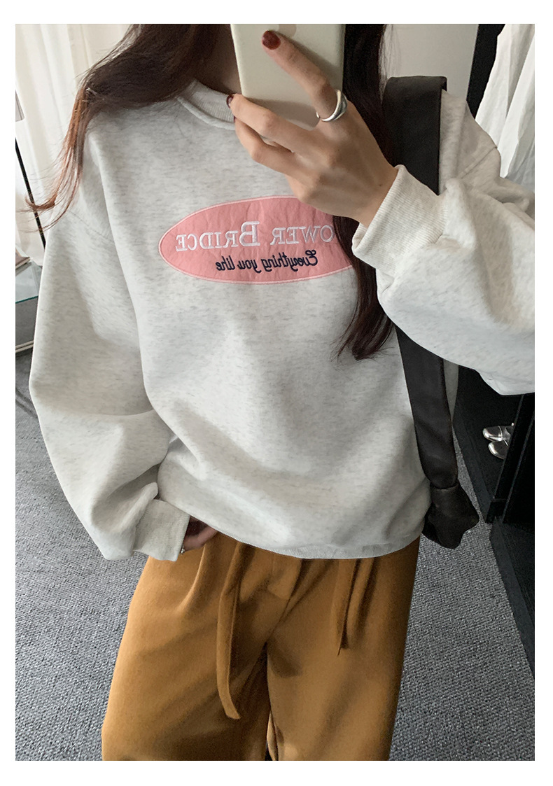 *o-ha-you*【FHZH1BF5041067】韓系圓領字母刺繡長袖衛衣女秋冬新款甜美百搭套頭上衣-2色