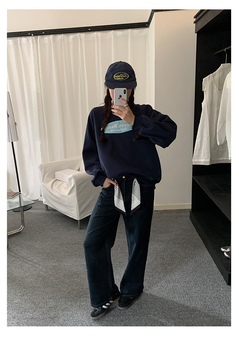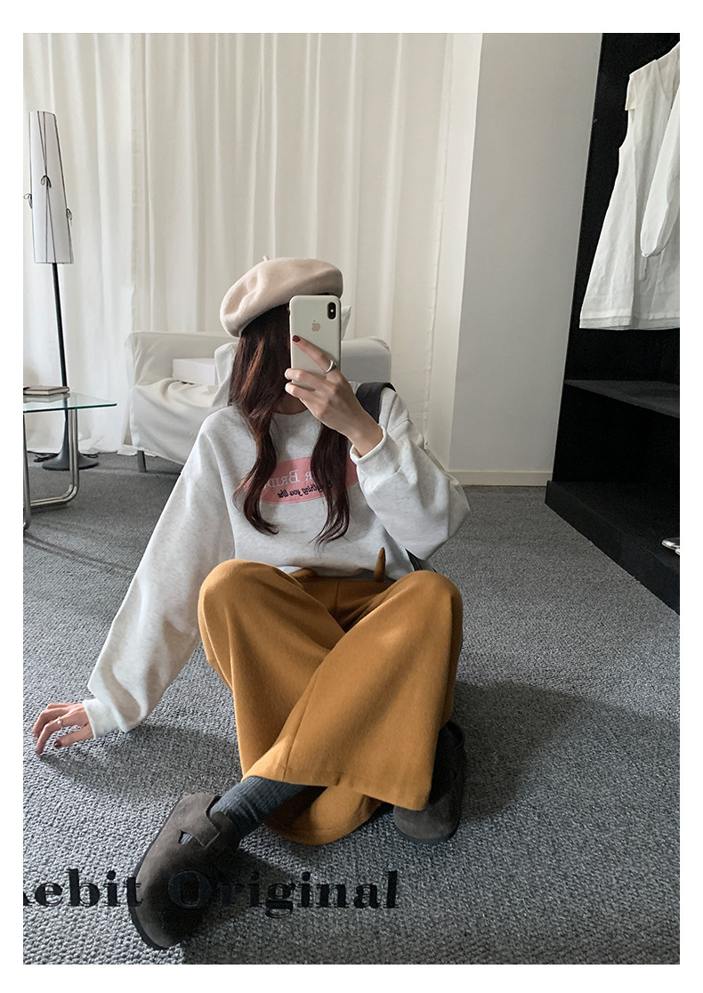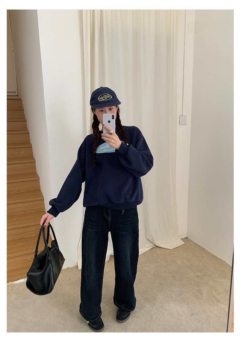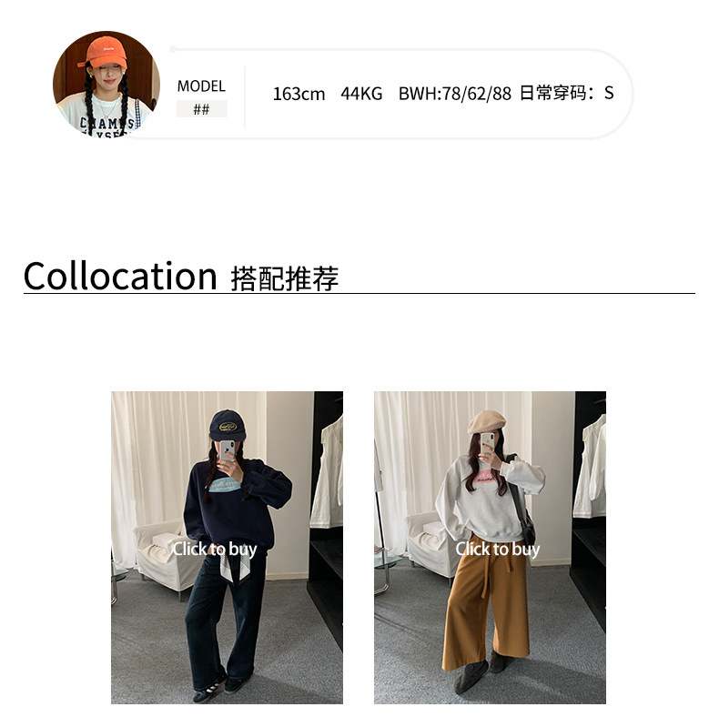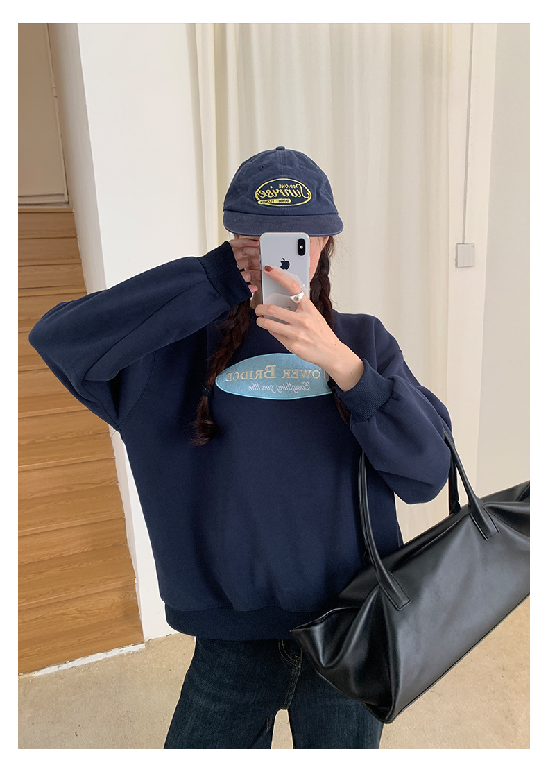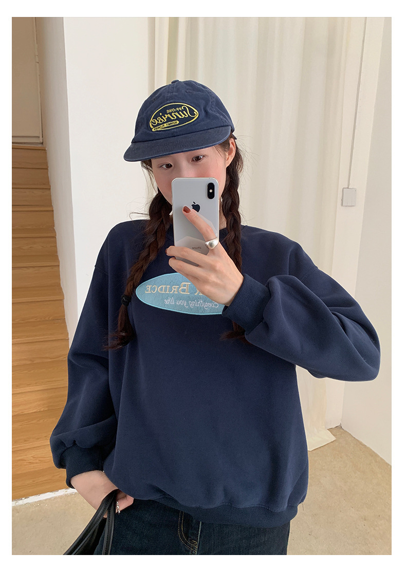 *o-ha-you*【FHZH1BF5041067】韓系圓領字母刺繡長袖衛衣女秋冬新款甜美百搭套頭上衣-2色