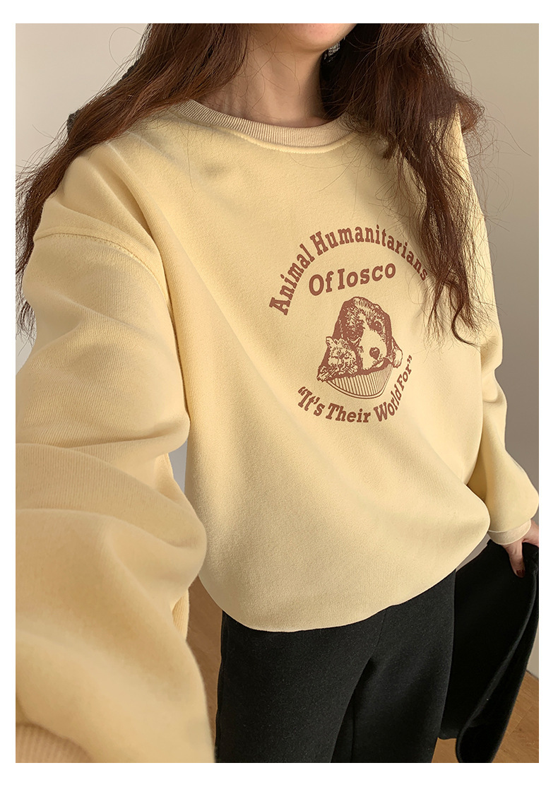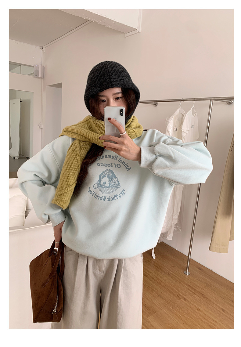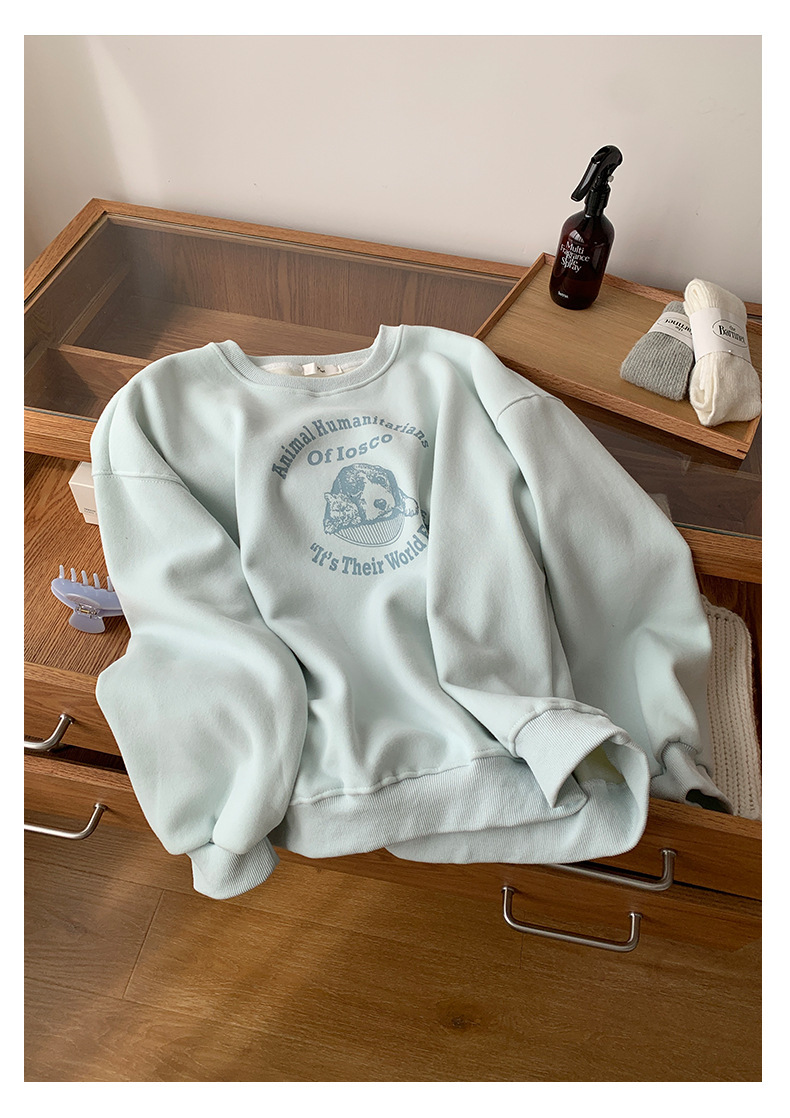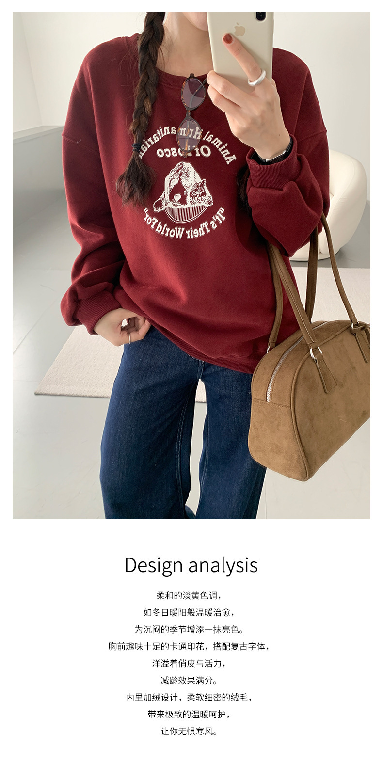 *o-ha-you*【FHZH1BF5041085】韓系卡通印花加絨圓領衛衣女秋冬新款寬鬆百搭通勤上衣-2色