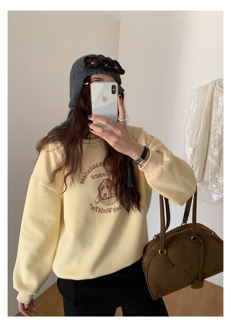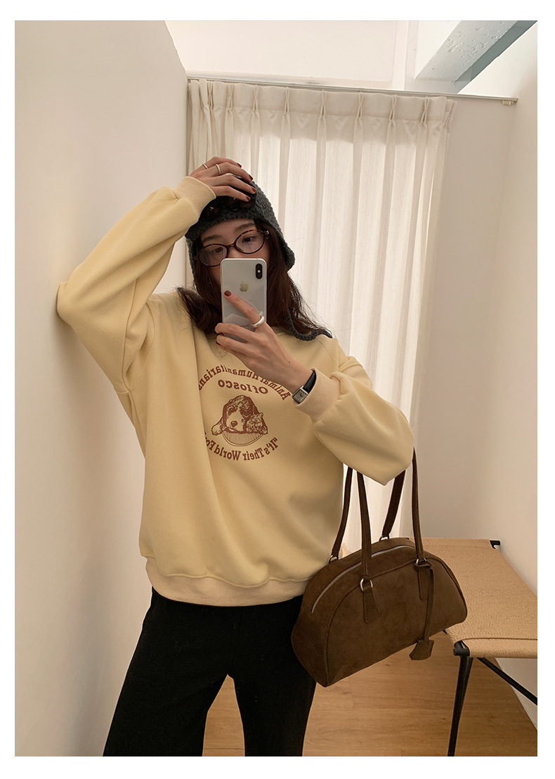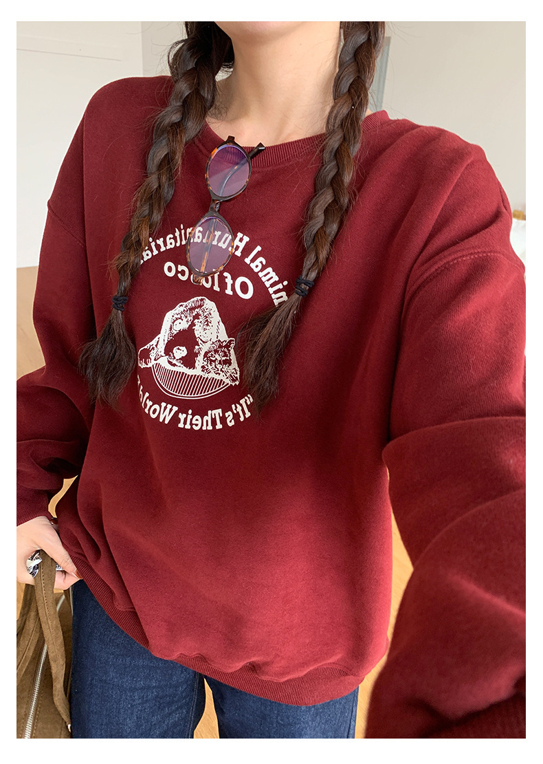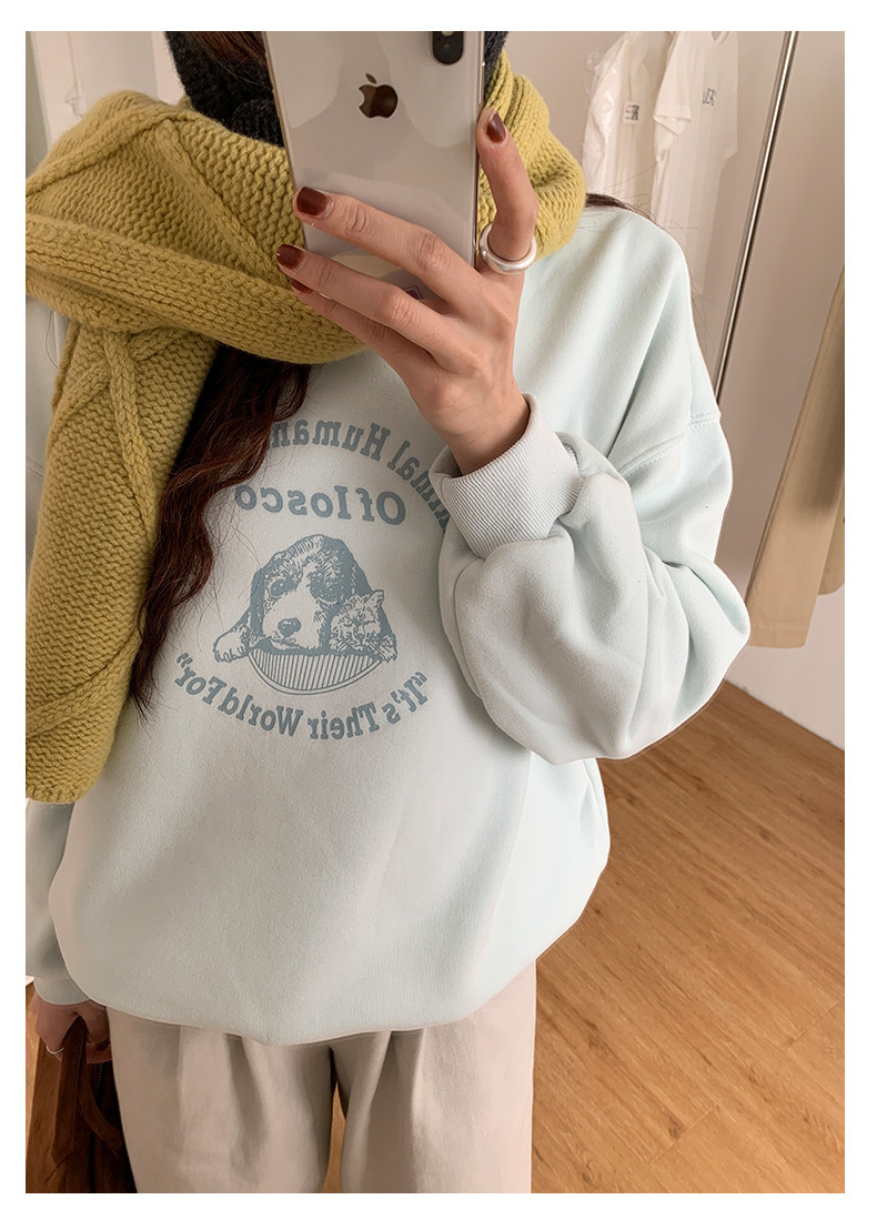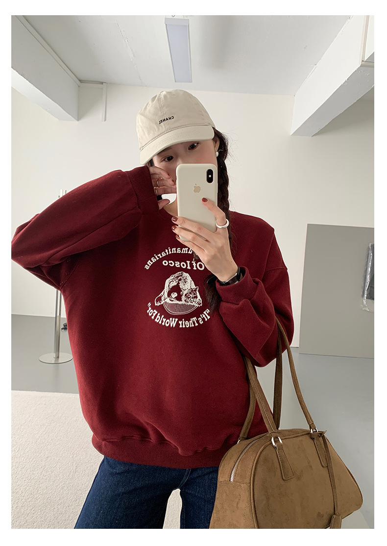 *o-ha-you*【FHZH1BF5041085】韓系卡通印花加絨圓領衛衣女秋冬新款寬鬆百搭通勤上衣-2色