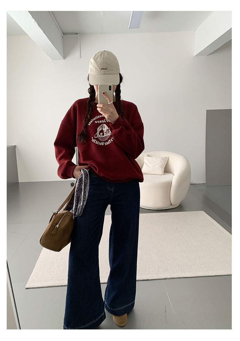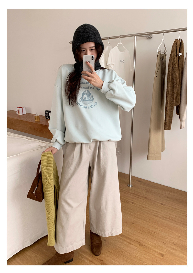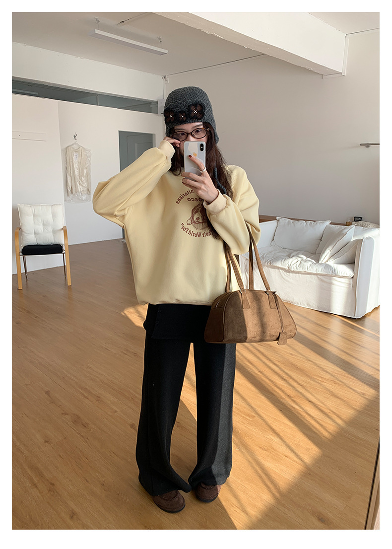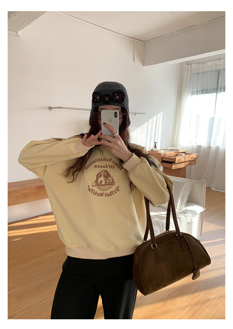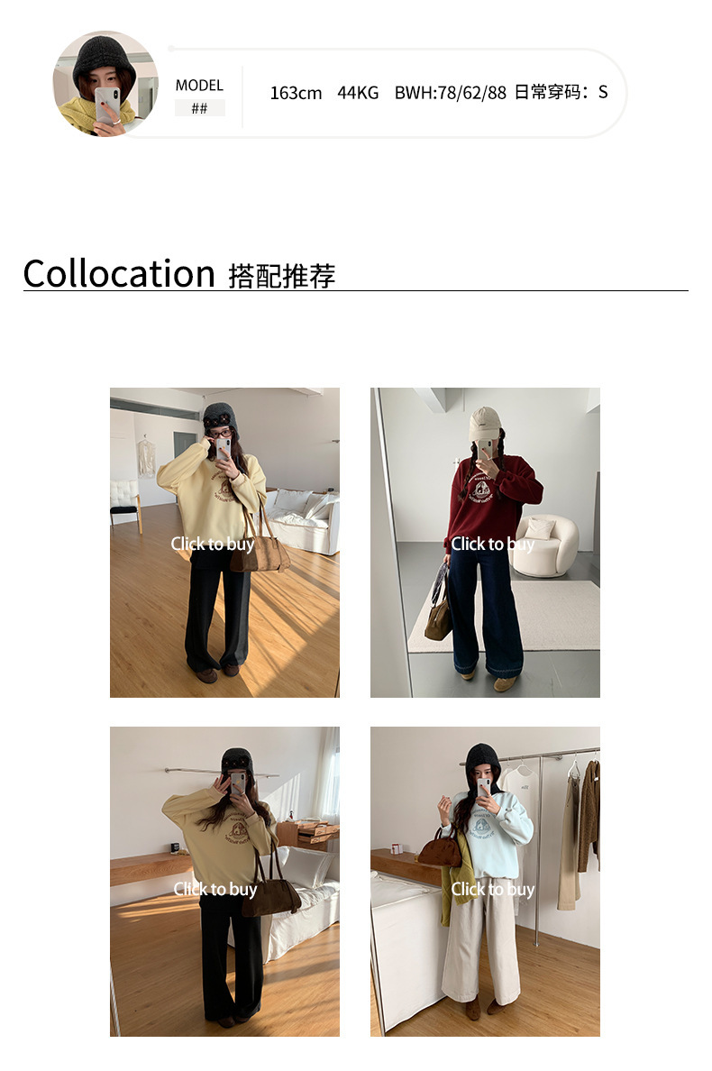 *o-ha-you*【FHZH1BF5041085】韓系卡通印花加絨圓領衛衣女秋冬新款寬鬆百搭通勤上衣-2色