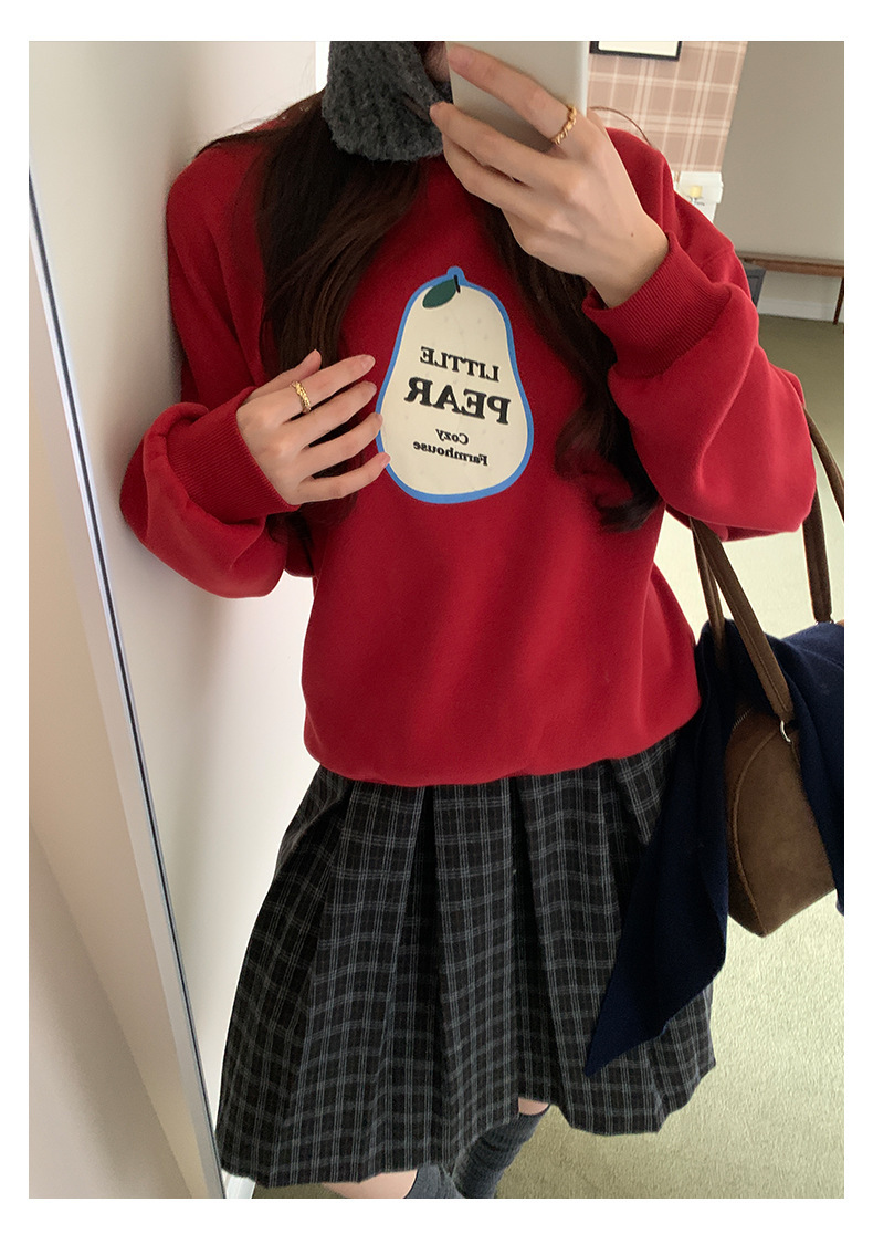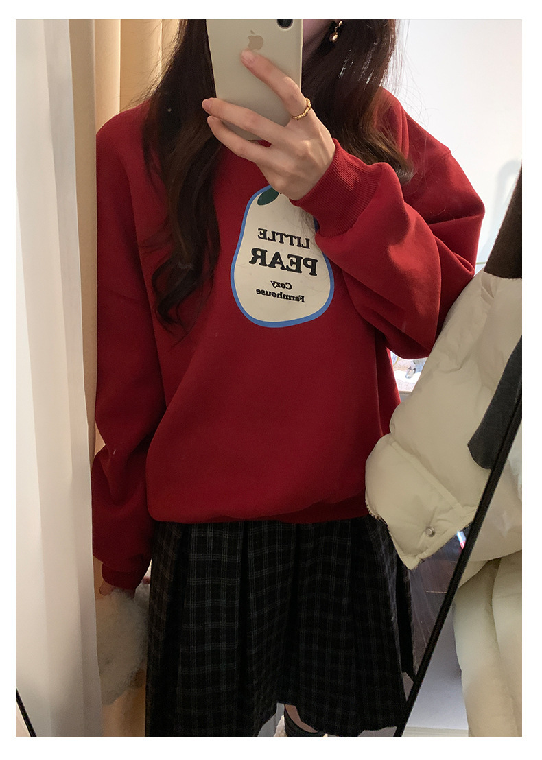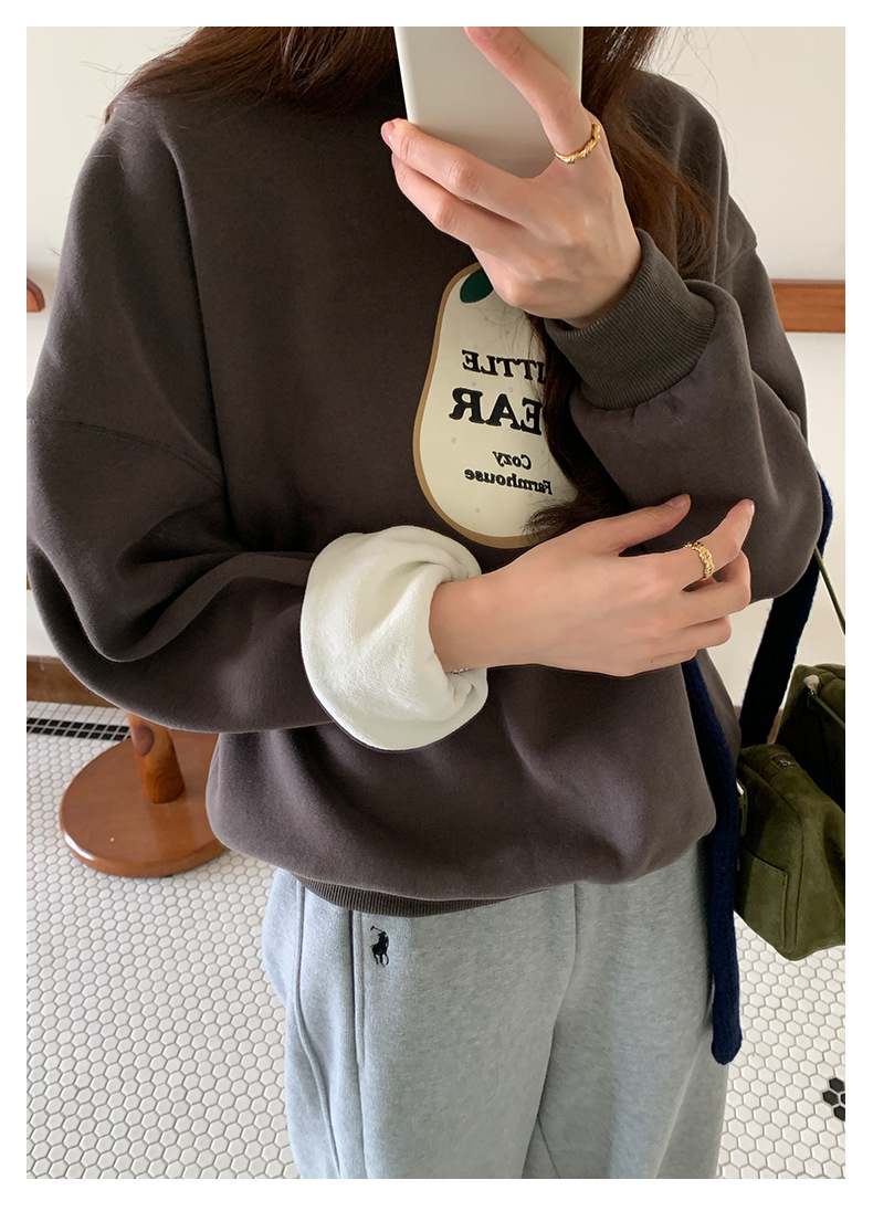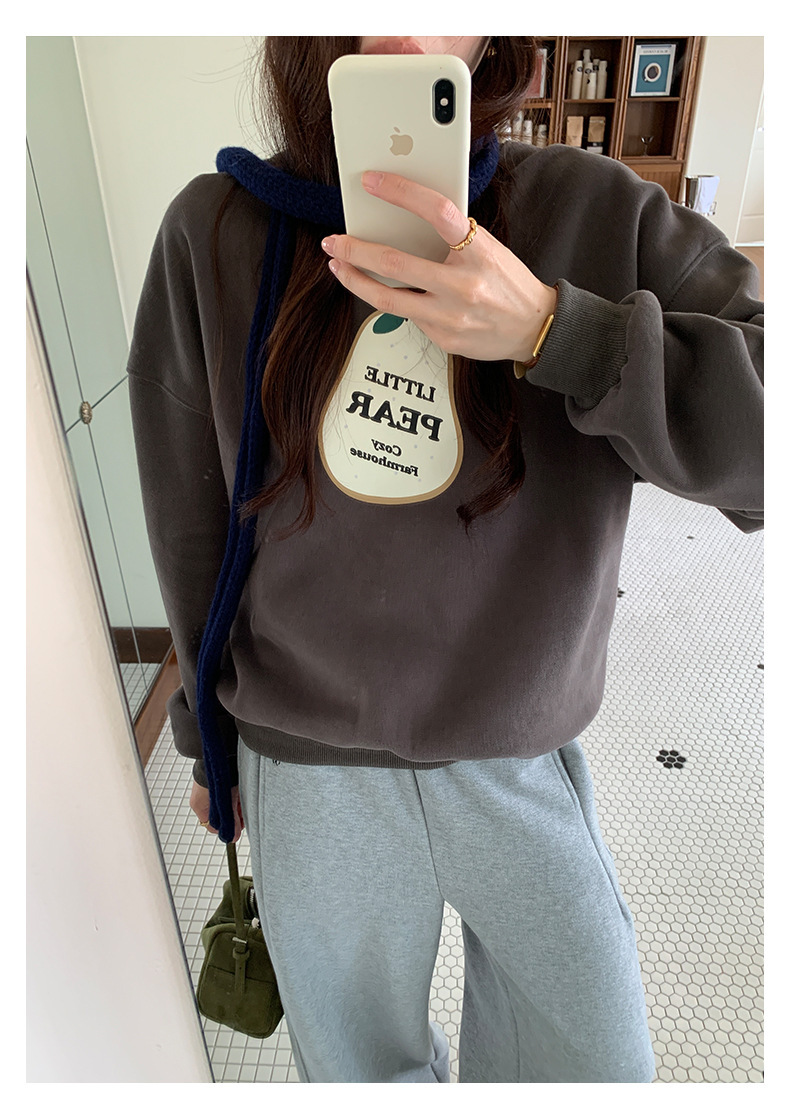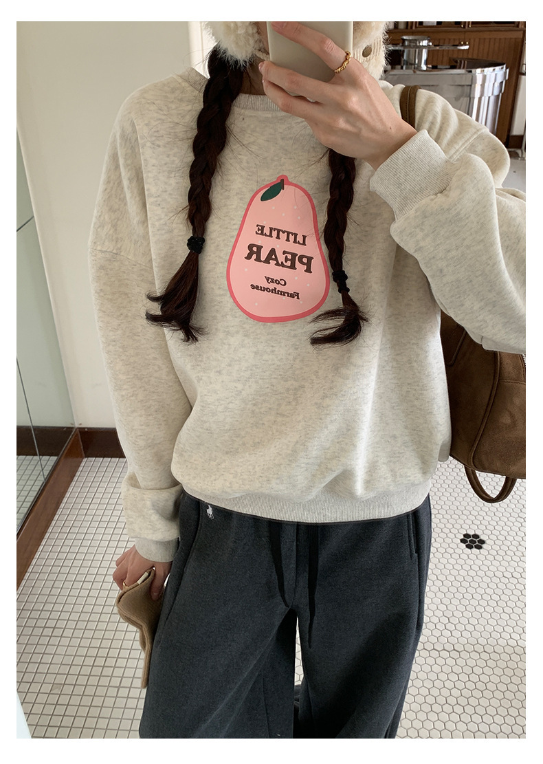 *o-ha-you*【FHZH1BF5041101】韓系梨形印花加絨衛衣女冬季休閒百搭保暖通勤長袖上衣-3色