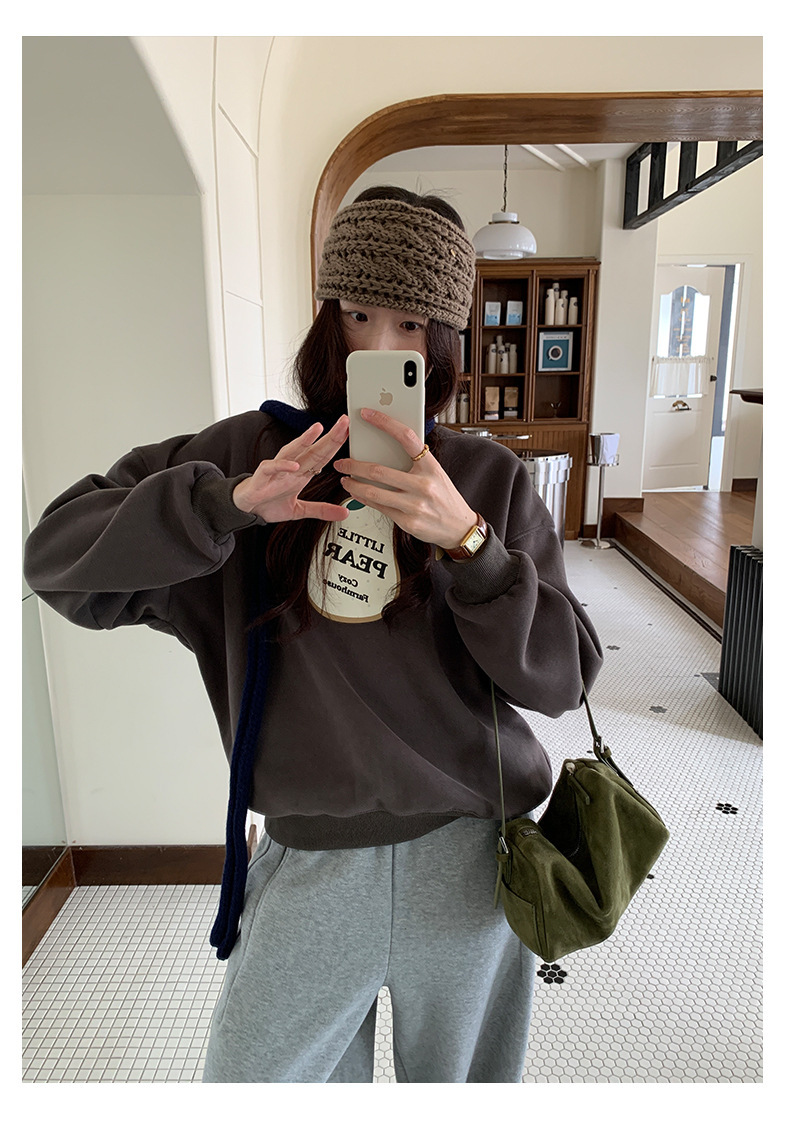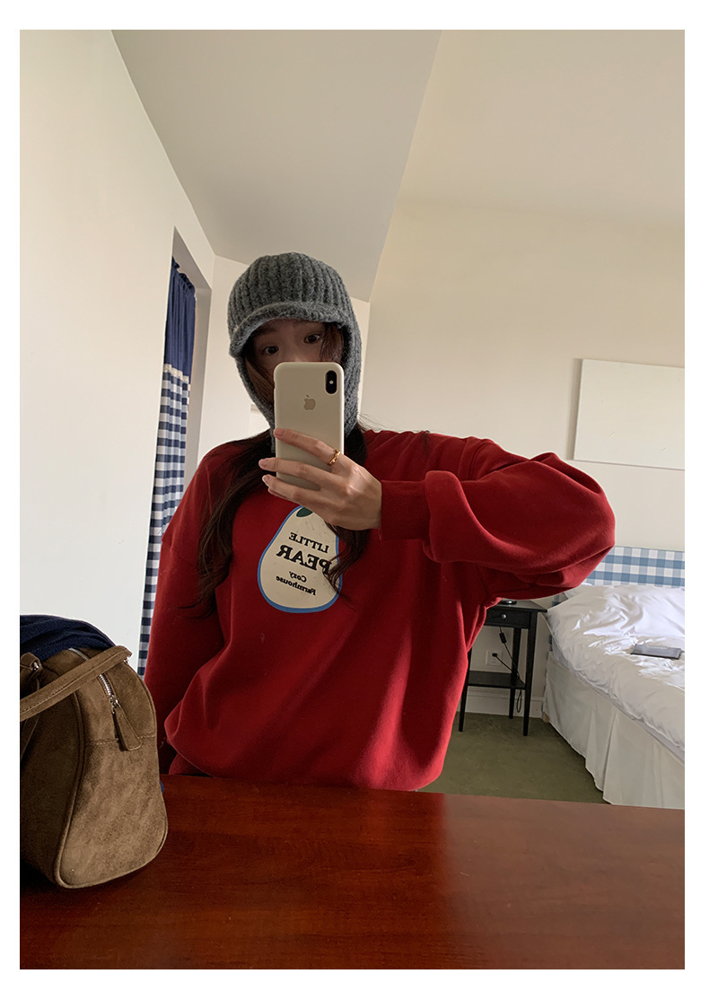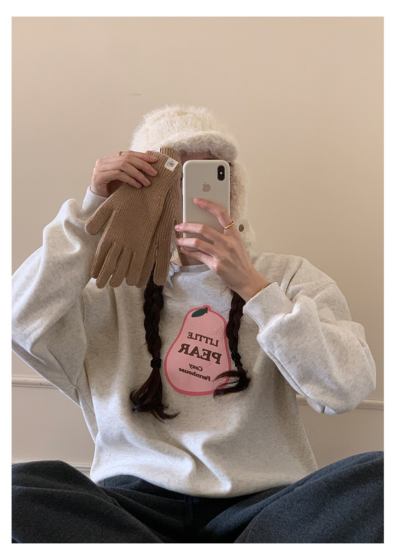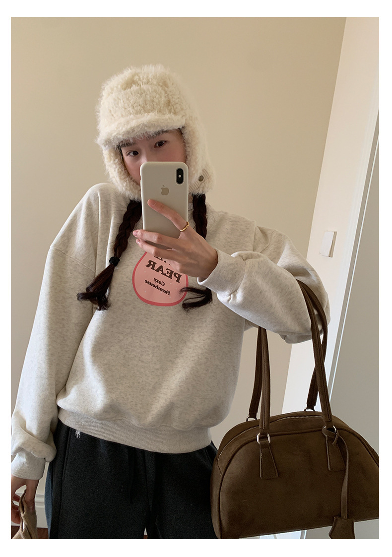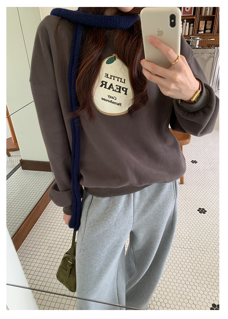 *o-ha-you*【FHZH1BF5041101】韓系梨形印花加絨衛衣女冬季休閒百搭保暖通勤長袖上衣-3色