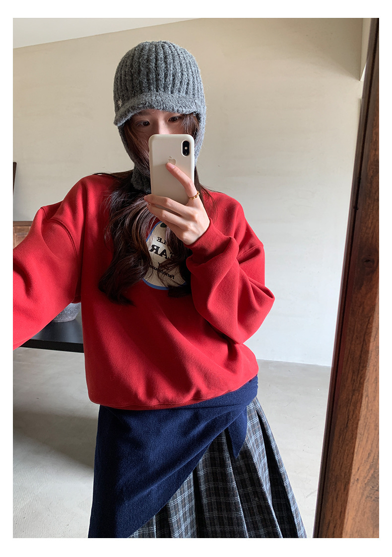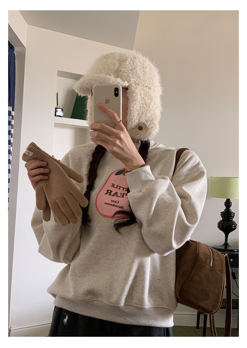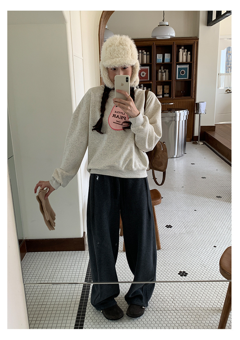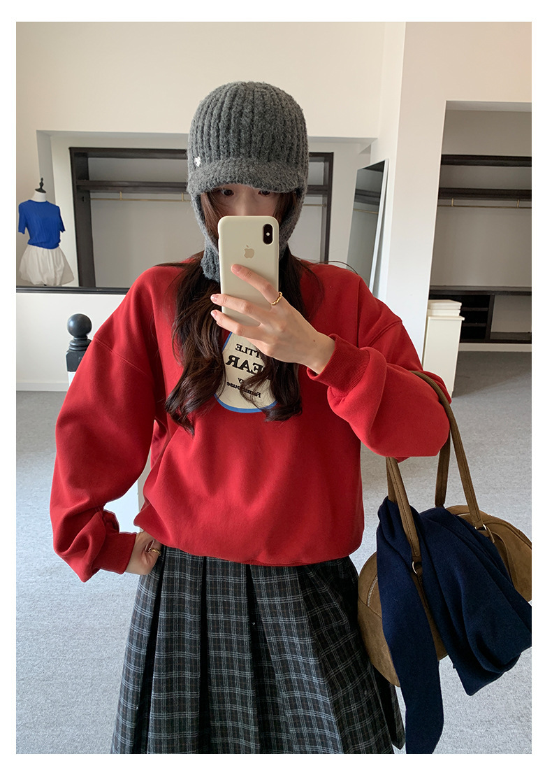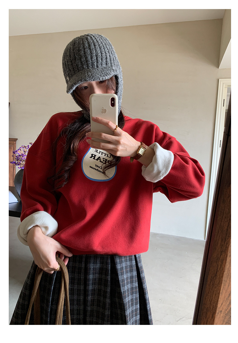 *o-ha-you*【FHZH1BF5041101】韓系梨形印花加絨衛衣女冬季休閒百搭保暖通勤長袖上衣-3色