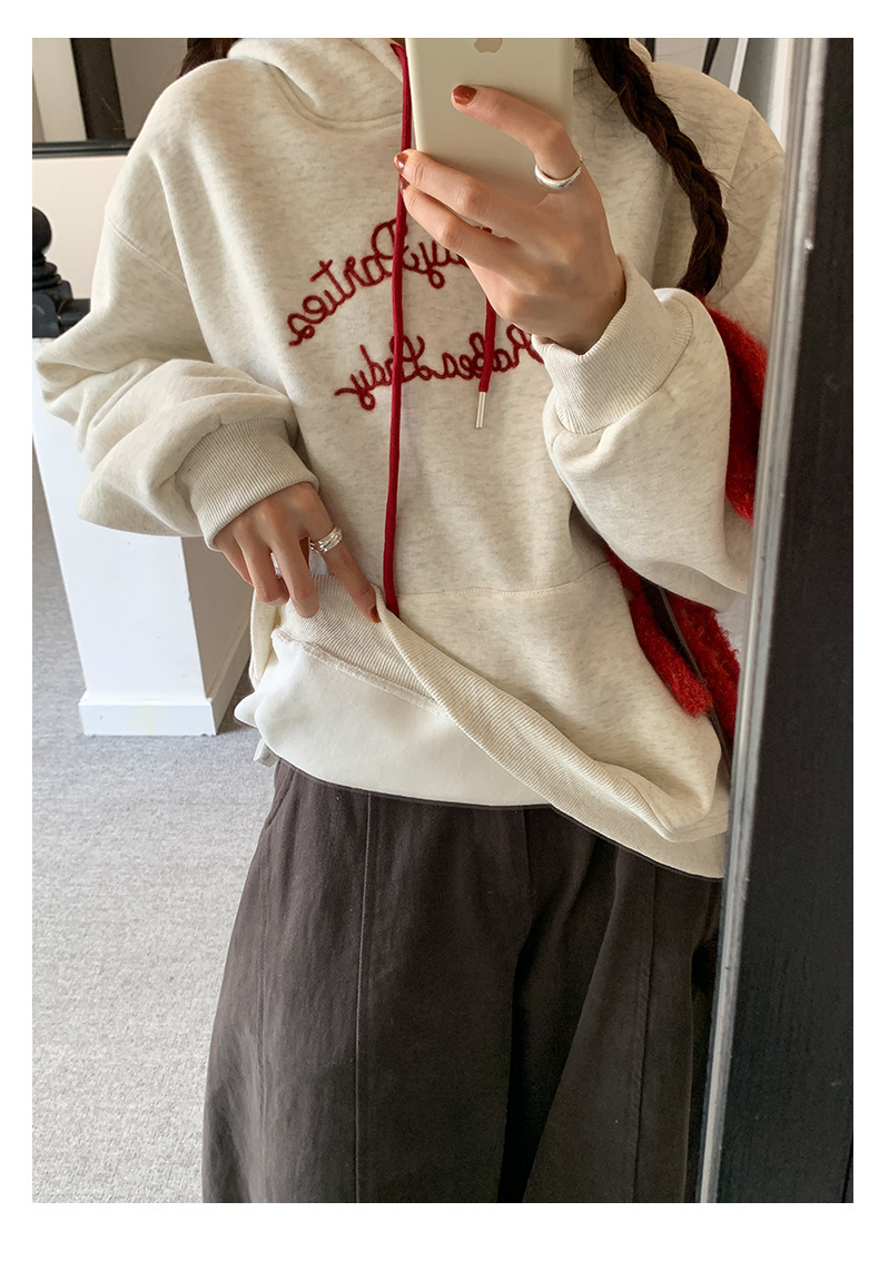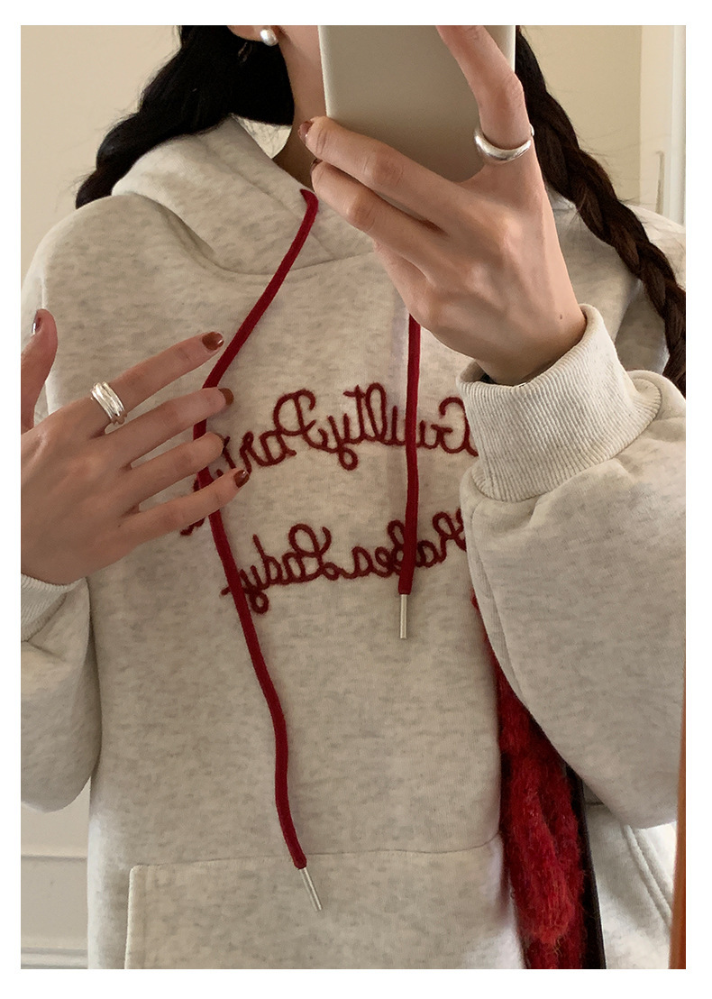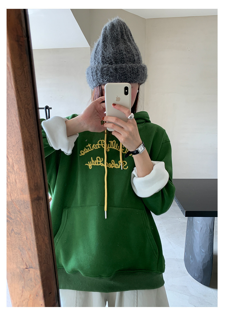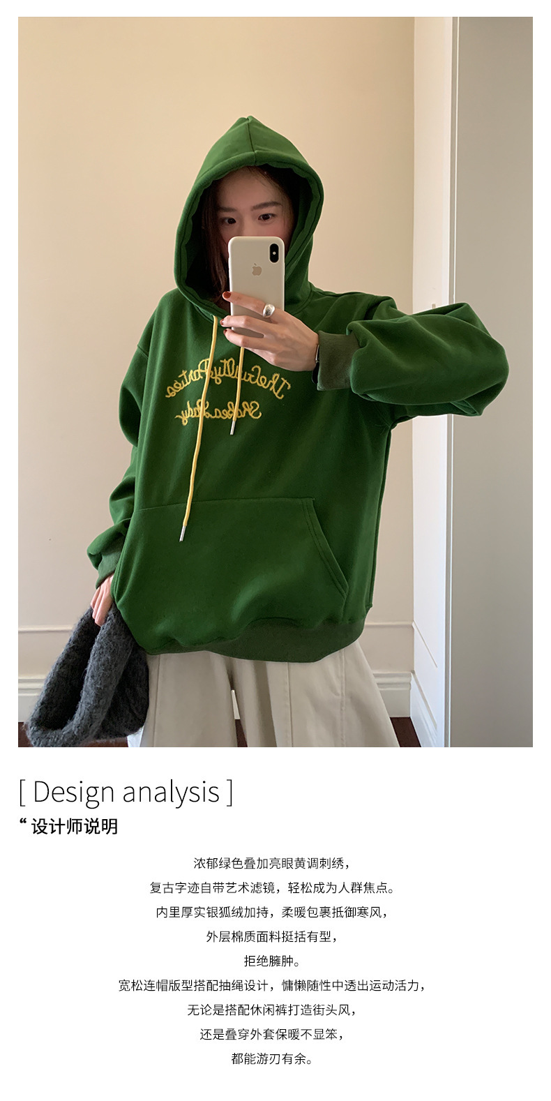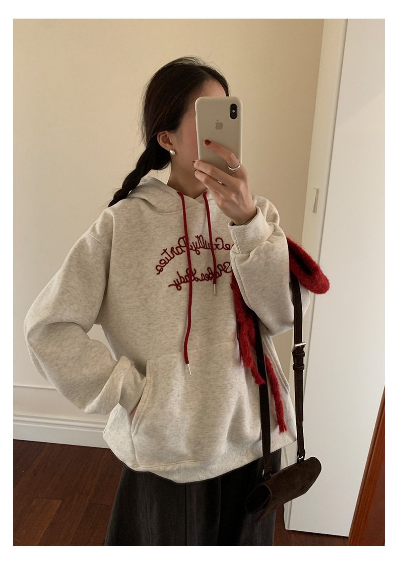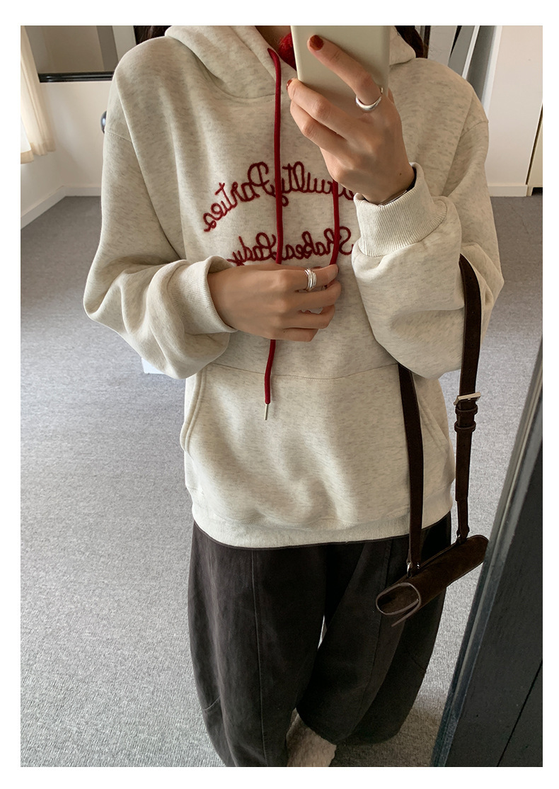 *o-ha-you*【FHZH1BF5041118】重工刺繡加絨連帽衛衣女冬季寬鬆休閒長袖運動帽衫外套-2色