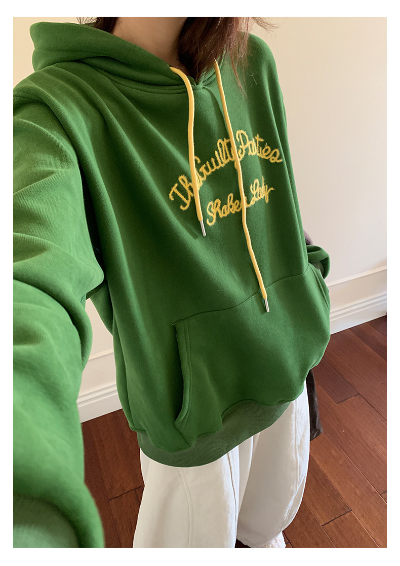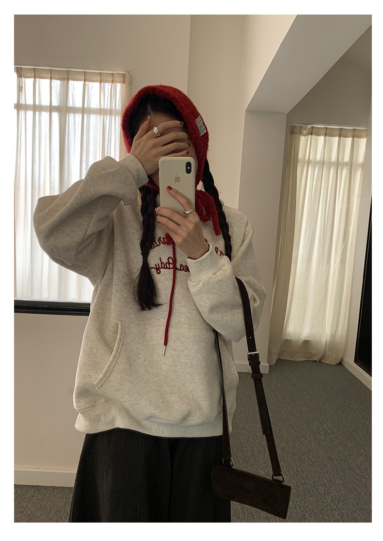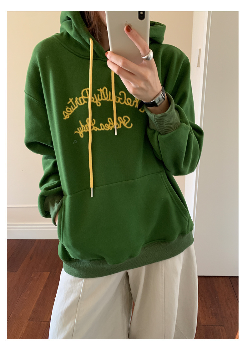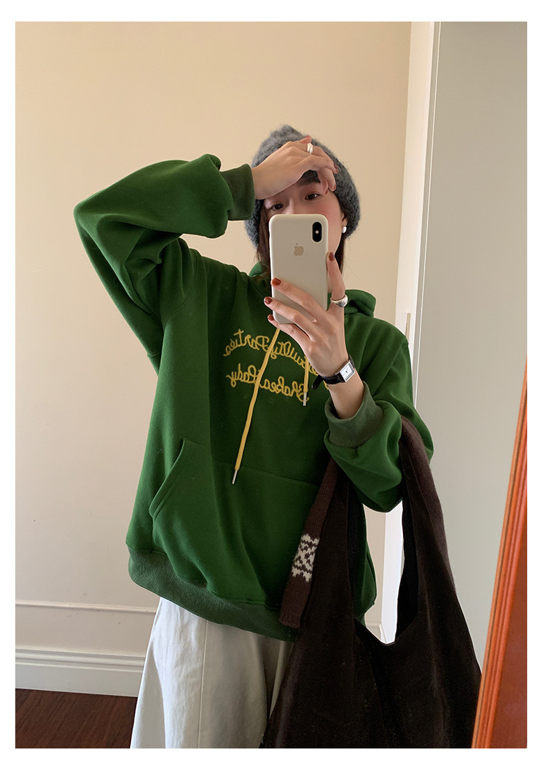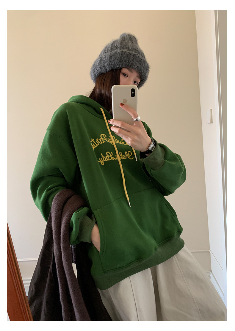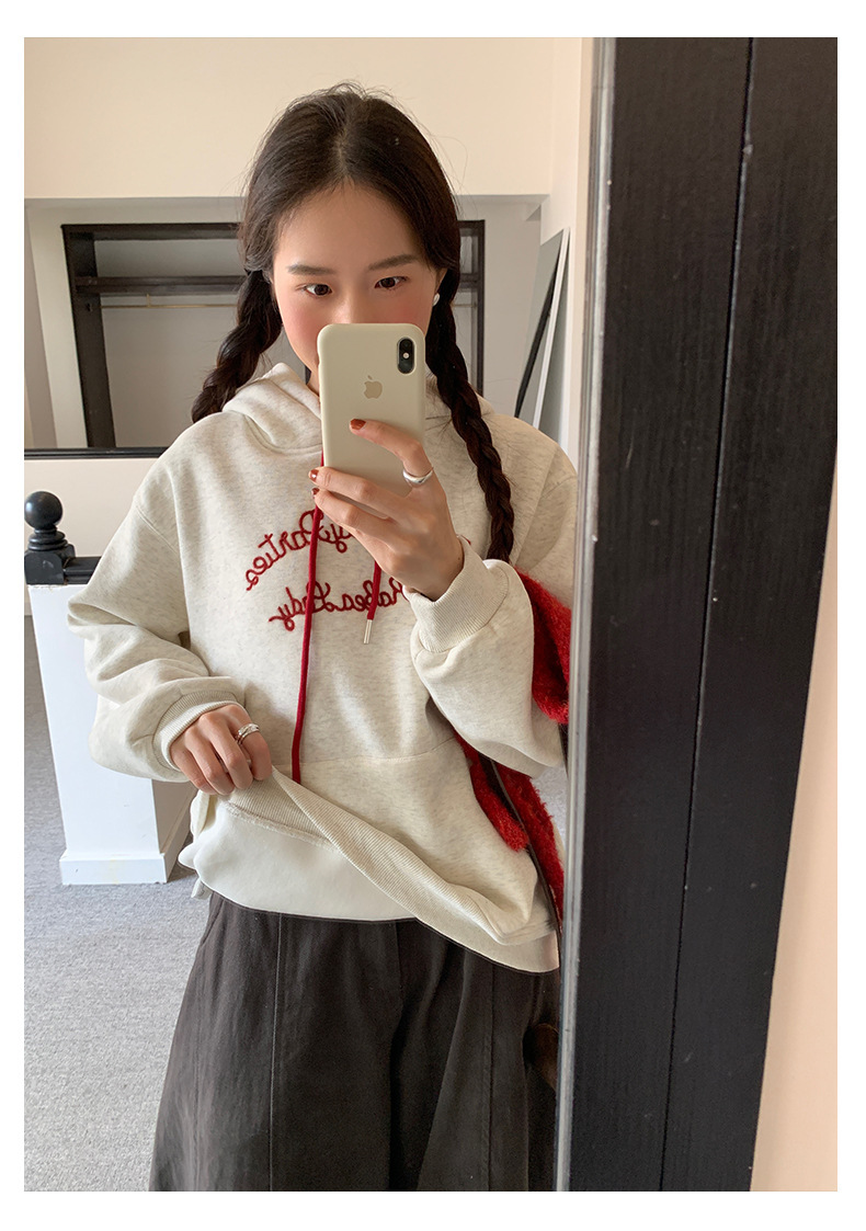 *o-ha-you*【FHZH1BF5041118】重工刺繡加絨連帽衛衣女冬季寬鬆休閒長袖運動帽衫外套-2色
