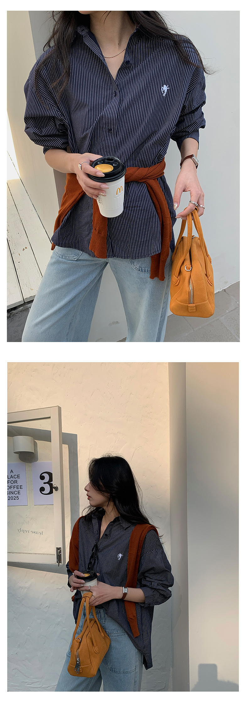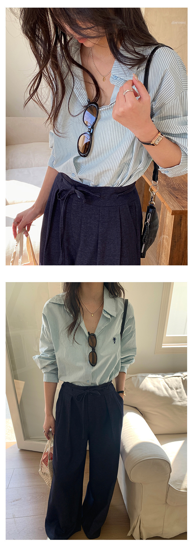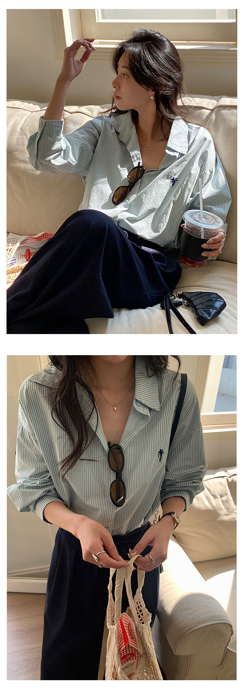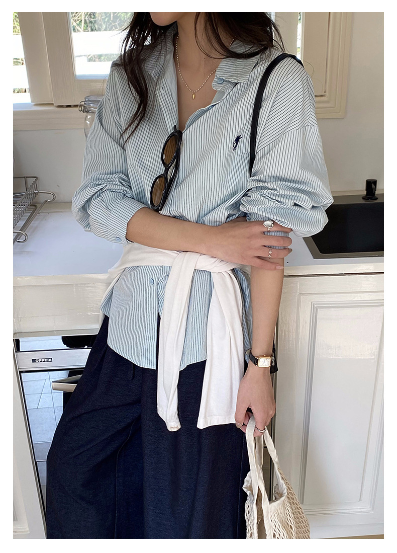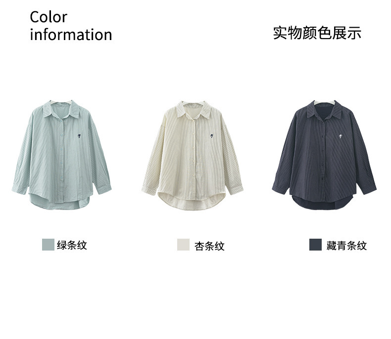 *o-ha-you*【FHZH1CA5010015】經典撞色條紋刺繡襯衫2025早春韓系寬鬆休閒開襟衫-3色-如有需要請先諮詢