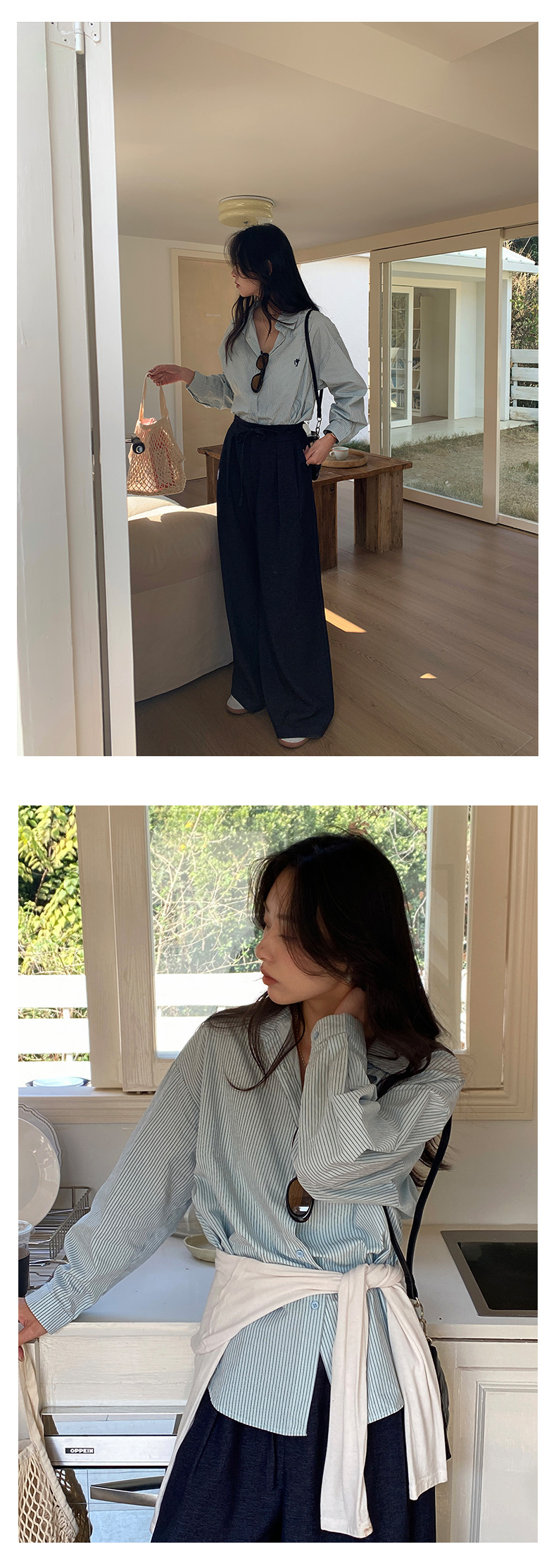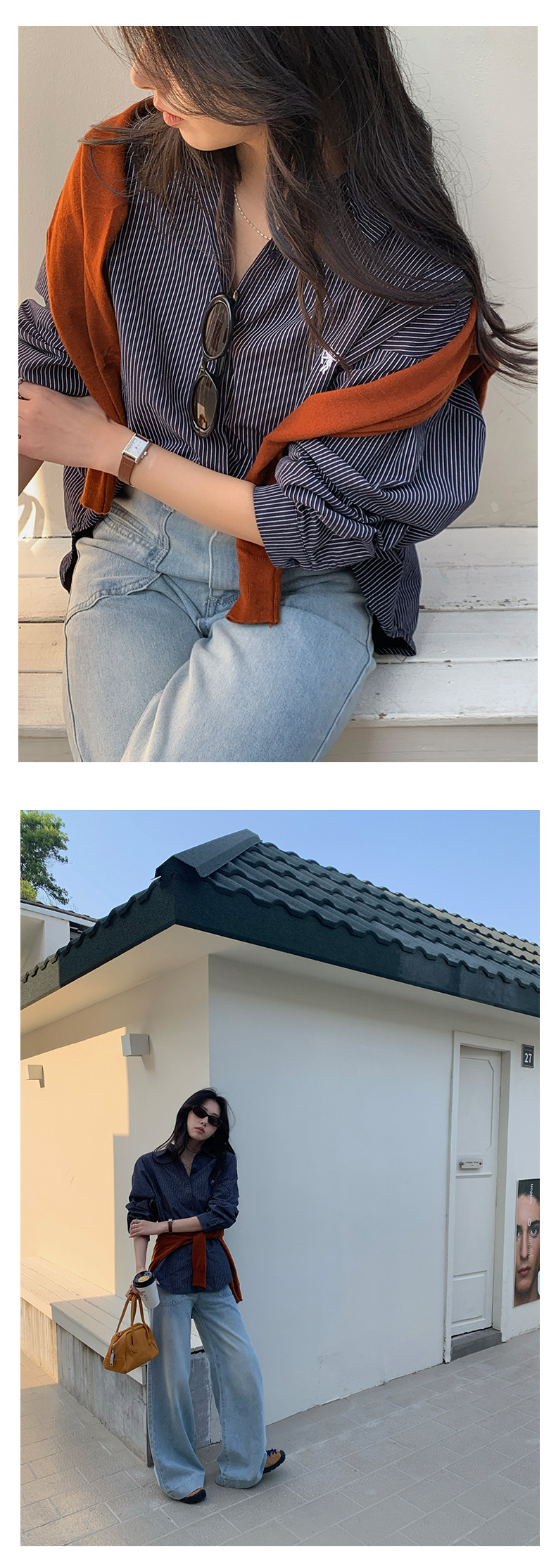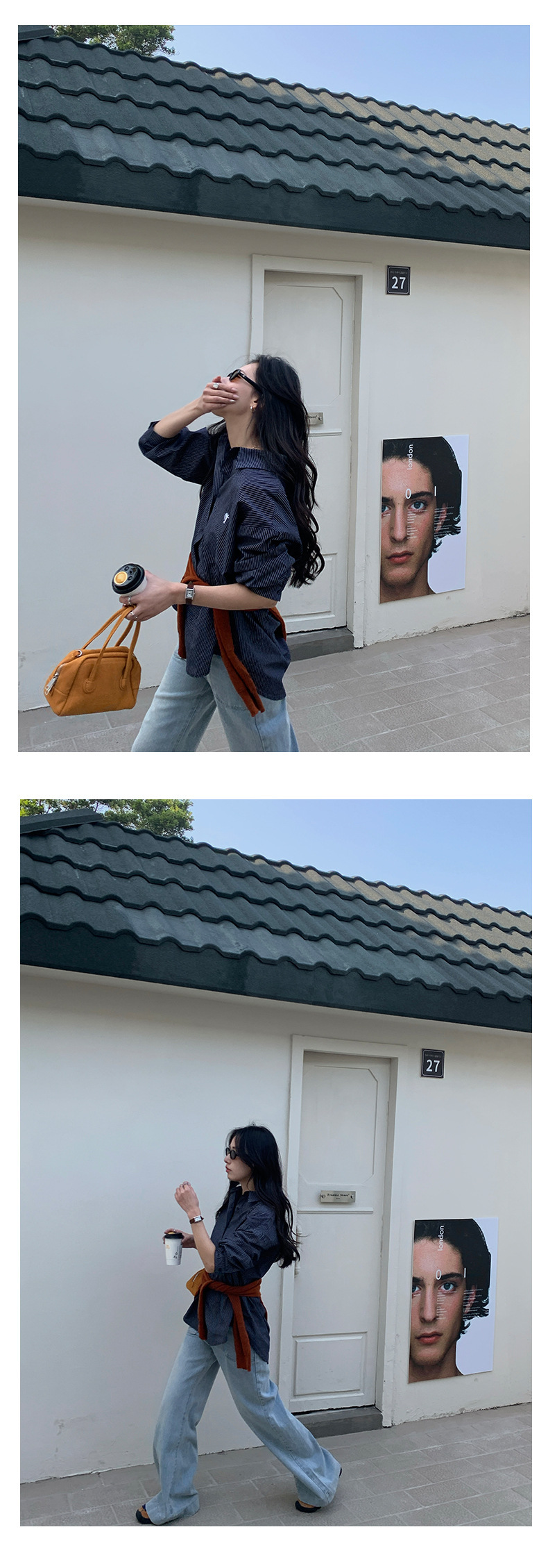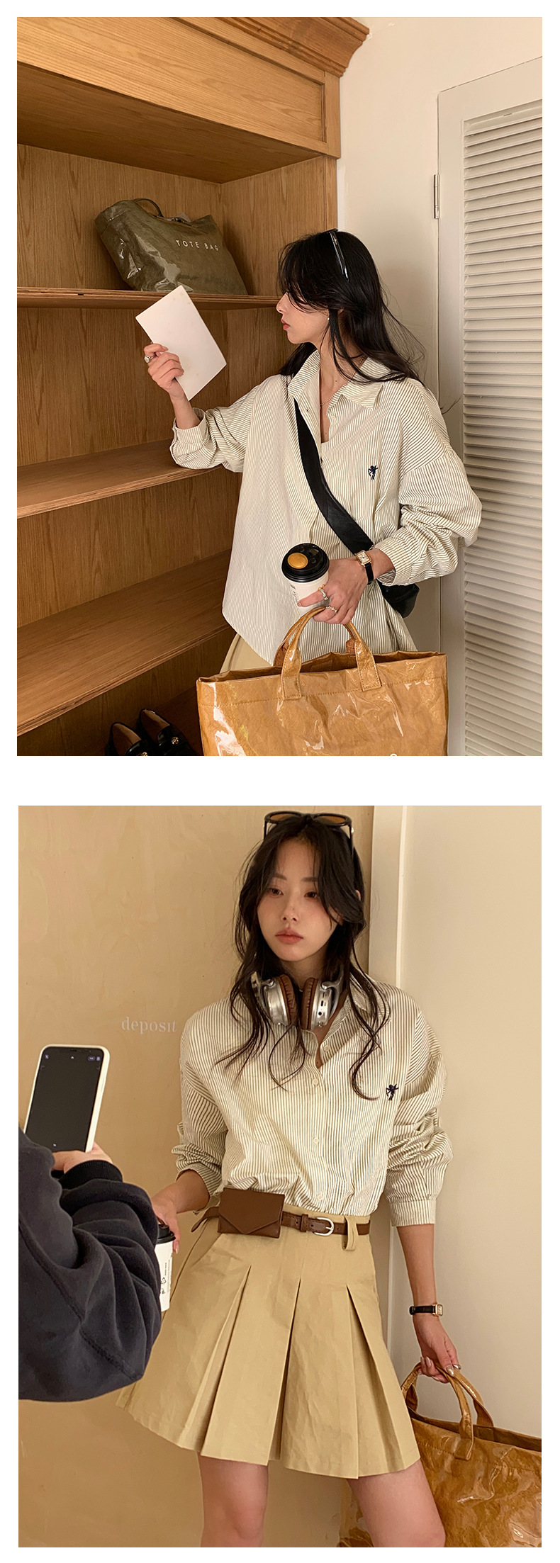 *o-ha-you*【FHZH1CA5010015】經典撞色條紋刺繡襯衫2025早春韓系寬鬆休閒開襟衫-3色-如有需要請先諮詢