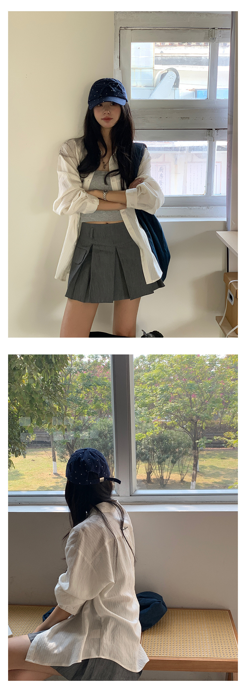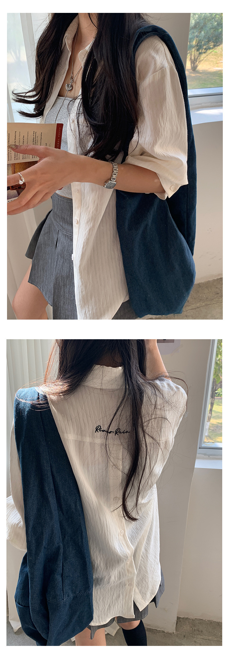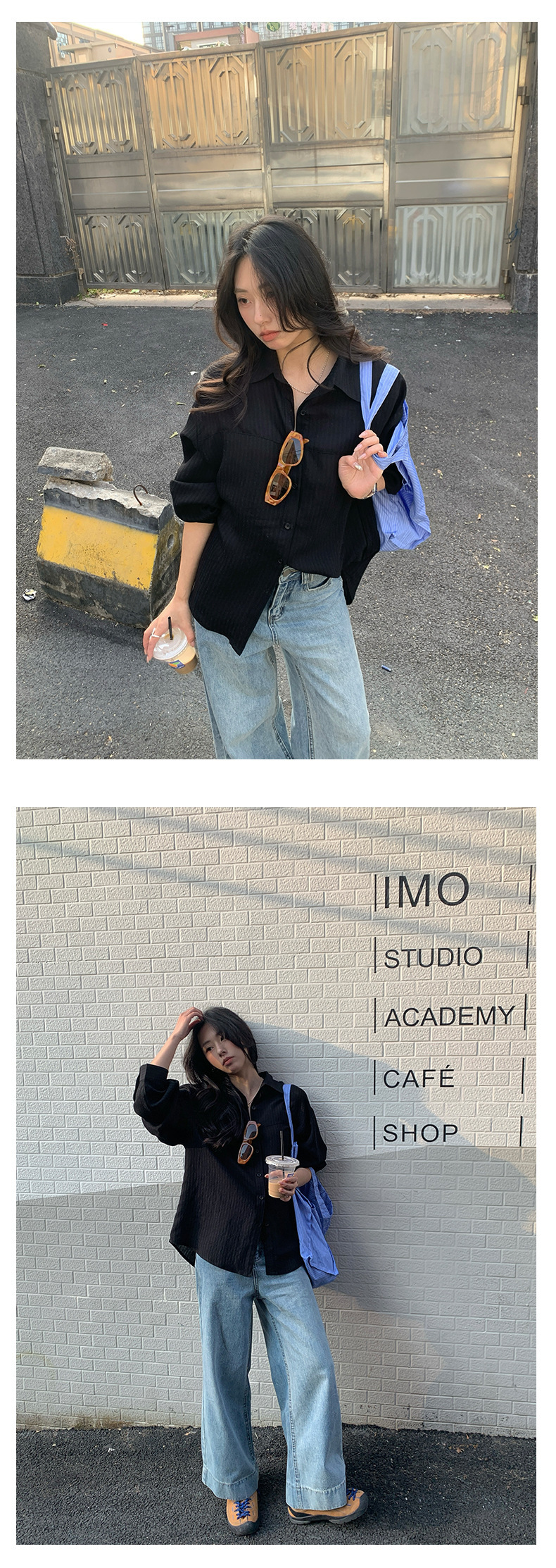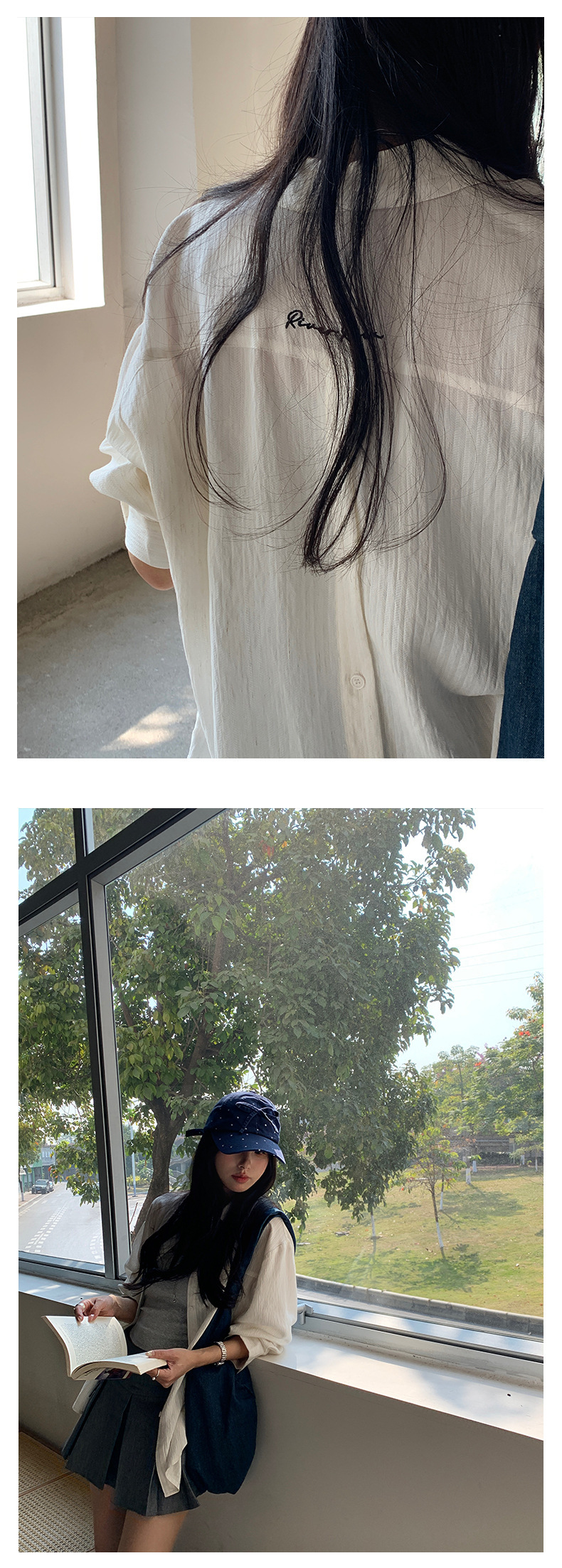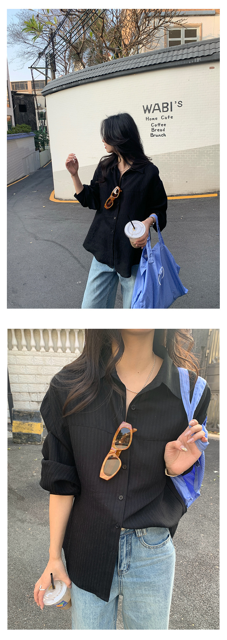 *o-ha-you*【FHZH1CA5010024】設計感坑條刺繡襯衫2025早春韓系大版休閒開襟衫-2色-如有需要請先諮詢