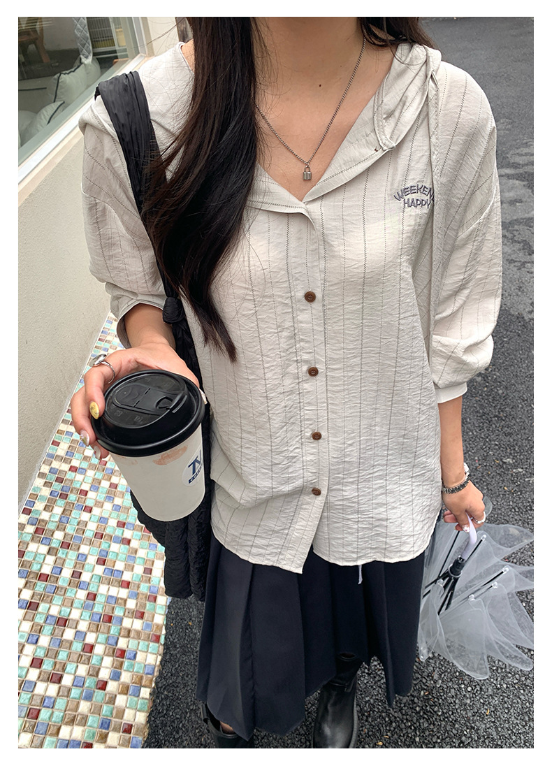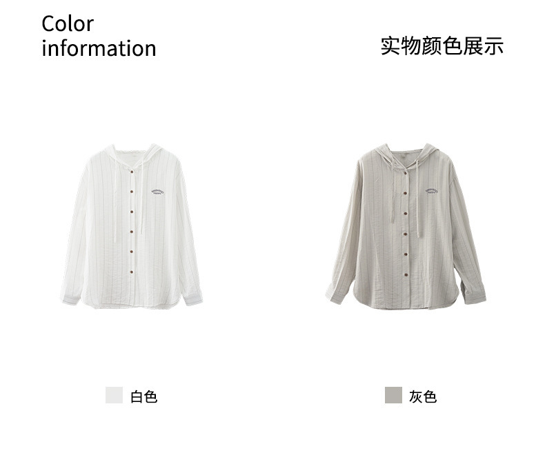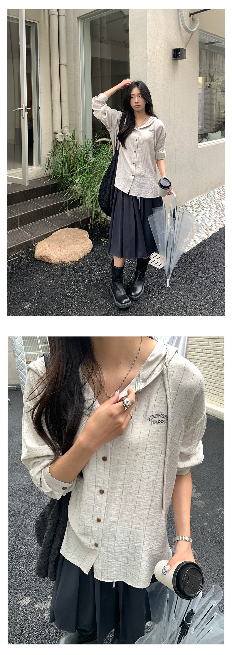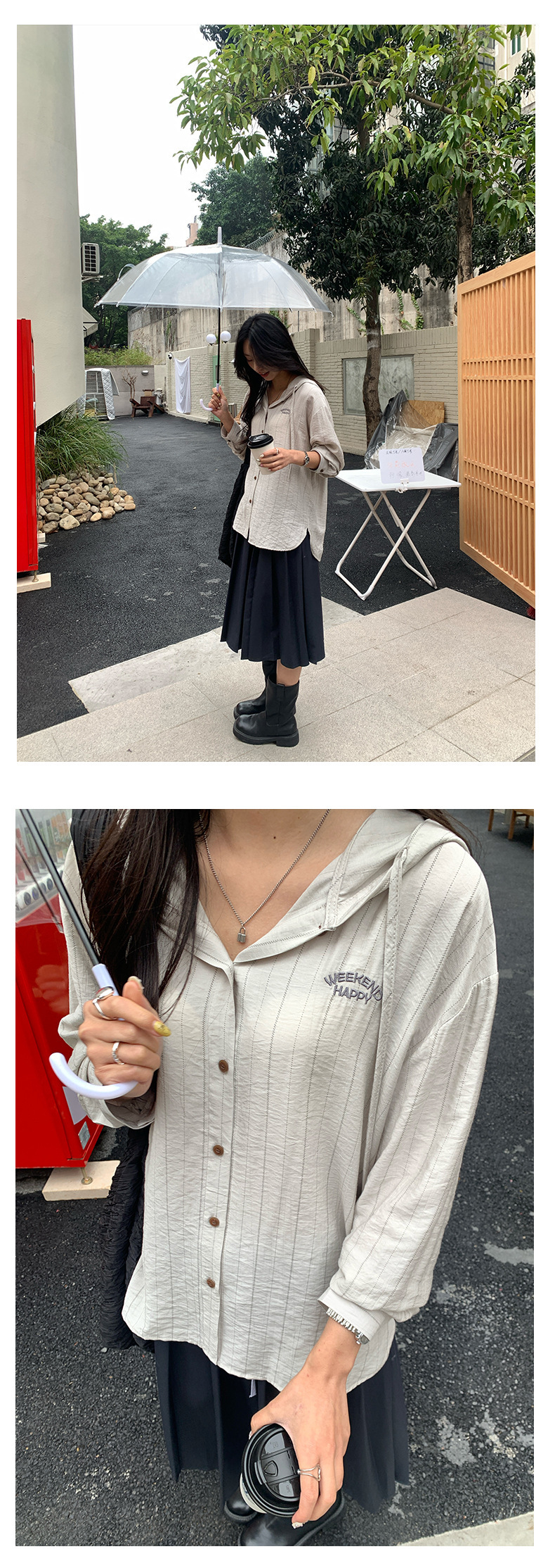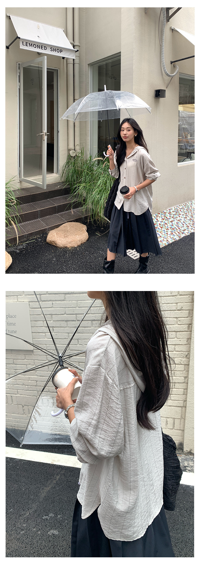*o-ha-you*【FHZH1CA5010116】豎條紋連帽抽繩刺繡襯衫2025春夏休閒舒適時尚上衣-2色-如有需要請先諮詢