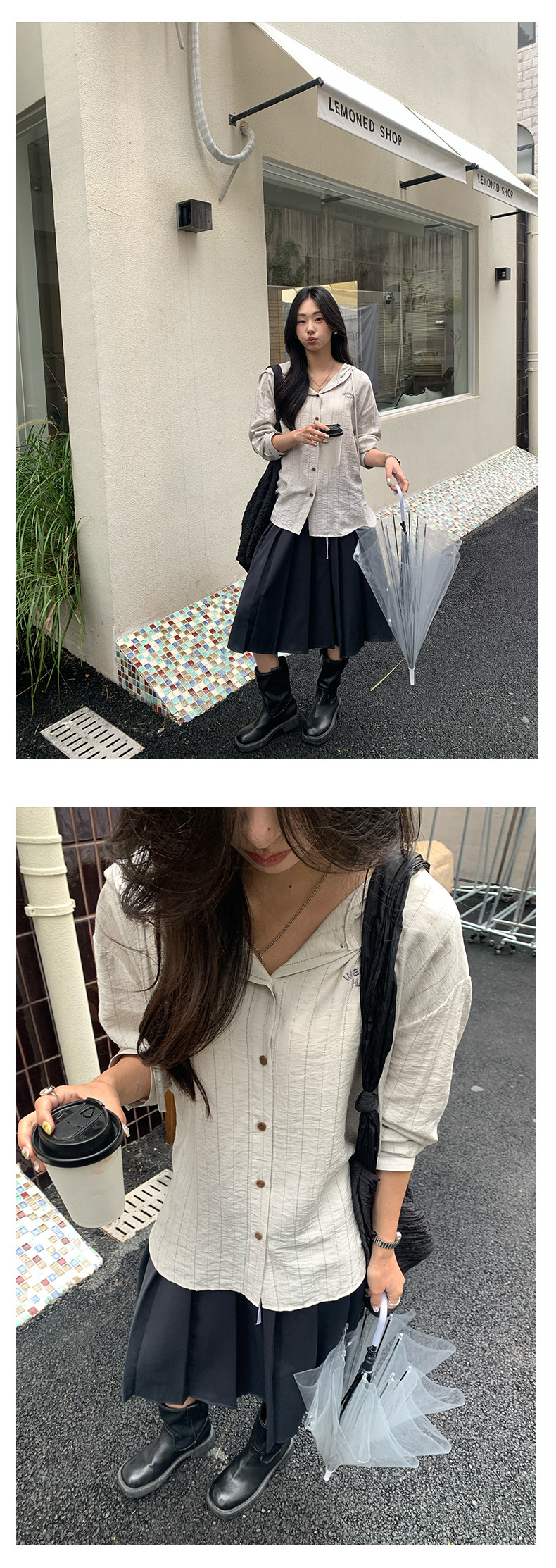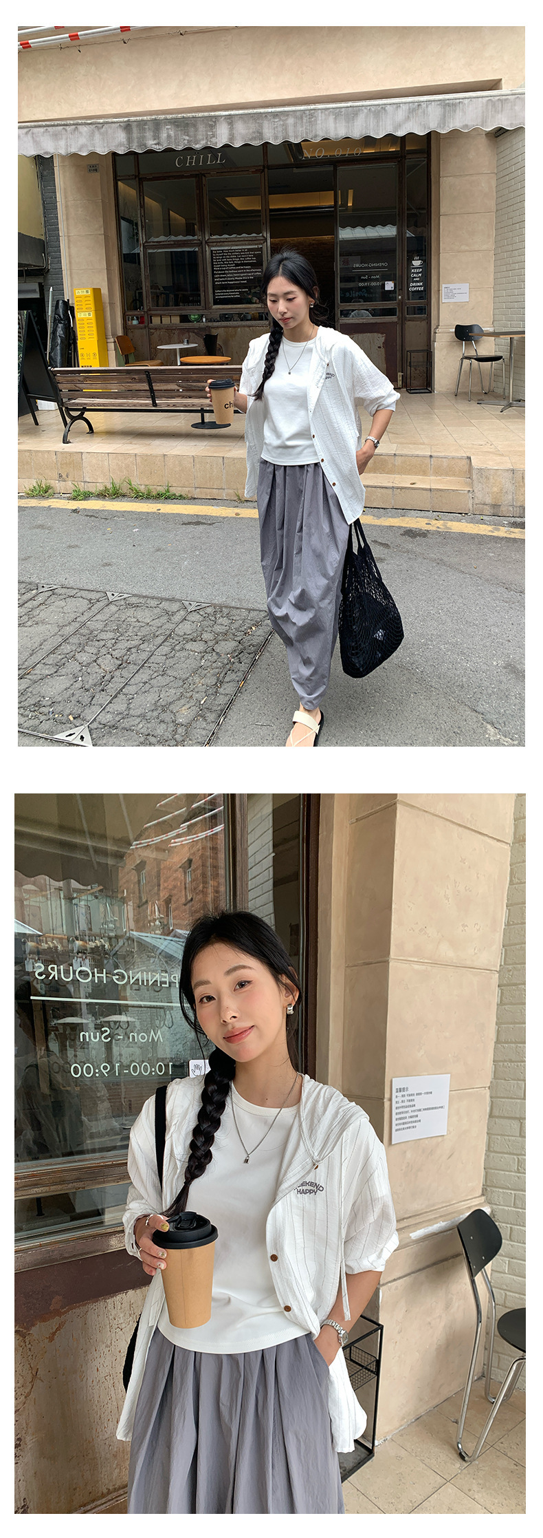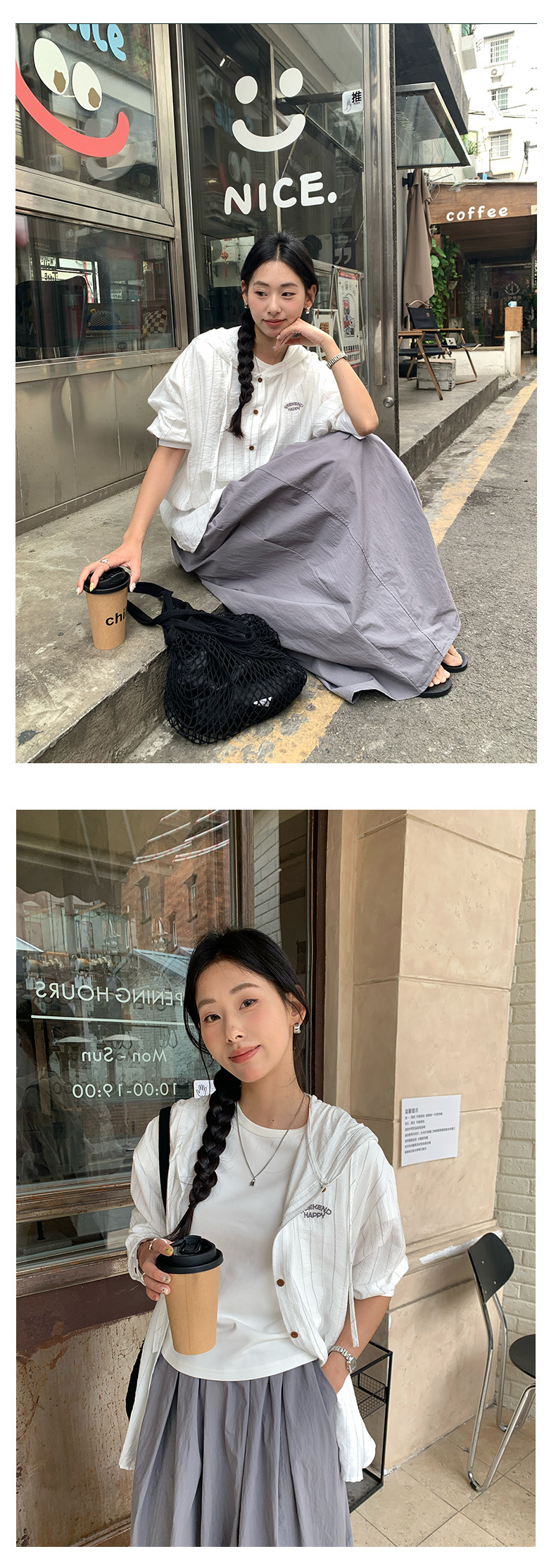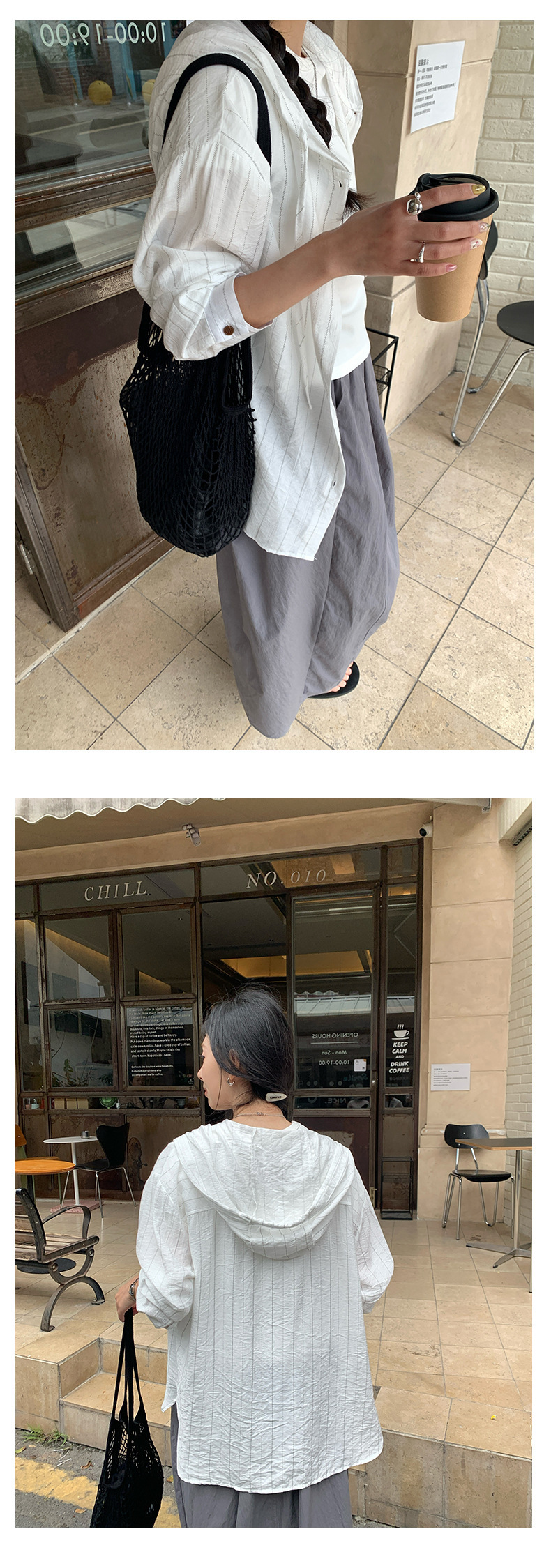 *o-ha-you*【FHZH1CA5010116】豎條紋連帽抽繩刺繡襯衫2025春夏休閒舒適時尚上衣-2色-如有需要請先諮詢