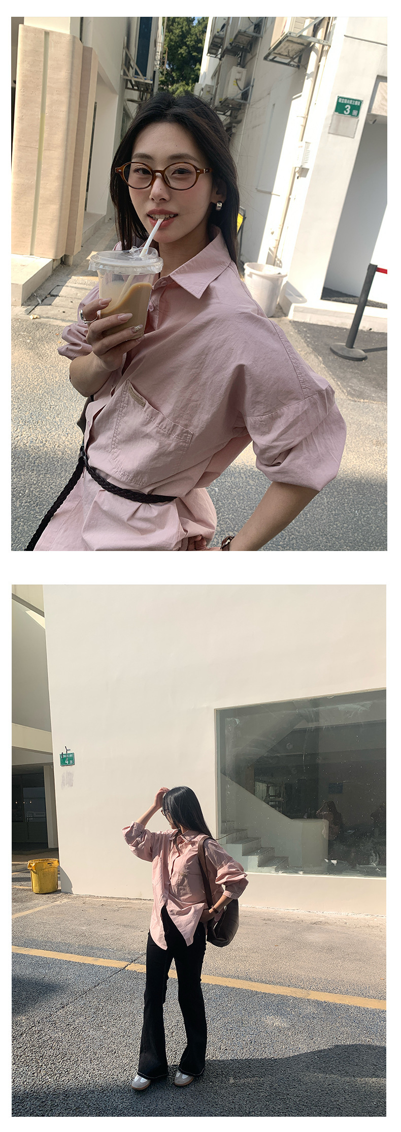 *o-ha-you*【FHZH1CA5010179】簡約小皮標設計長袖襯衫2025春韓版休閒襯衣開襟衫-3色-如有需要請先諮詢