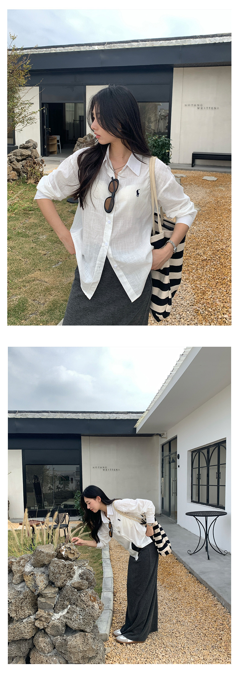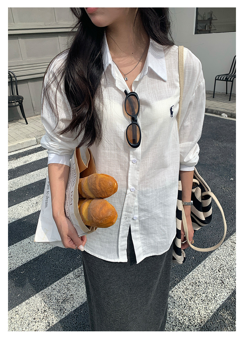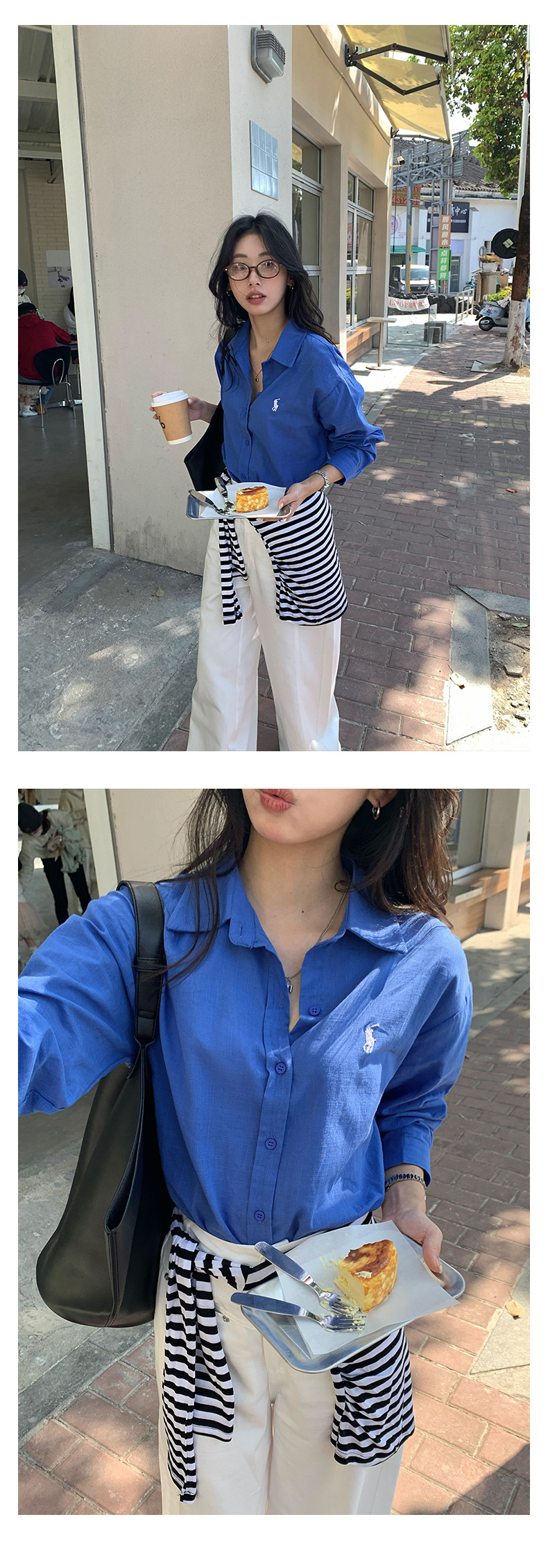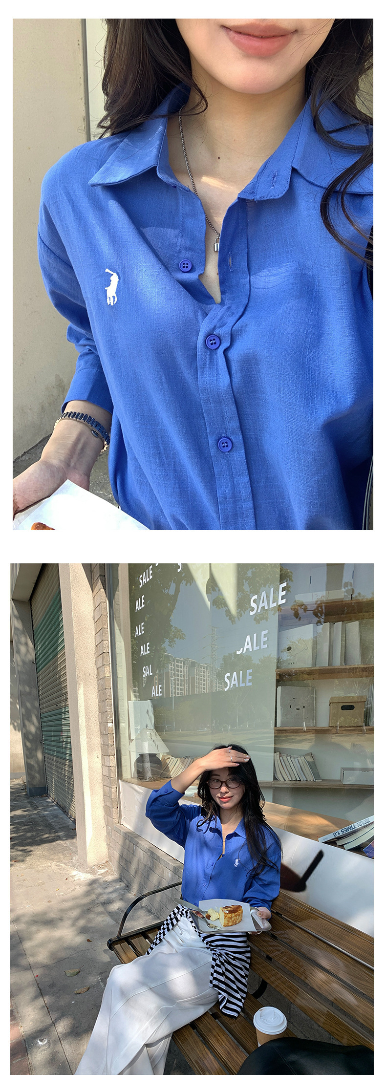 *o-ha-you*【FHZH1CA5010188】簡約小馬刺繡花襯衫2025春季韓版寬鬆休閒小開襟衫-2色-如有需要請先諮詢