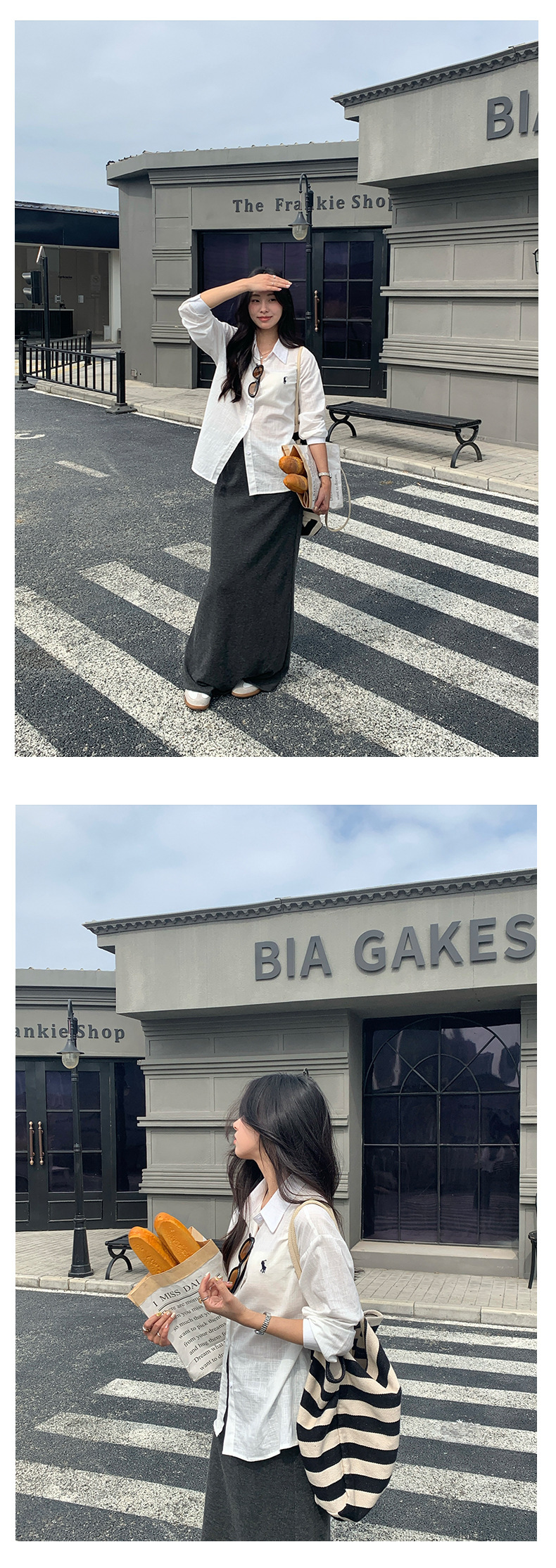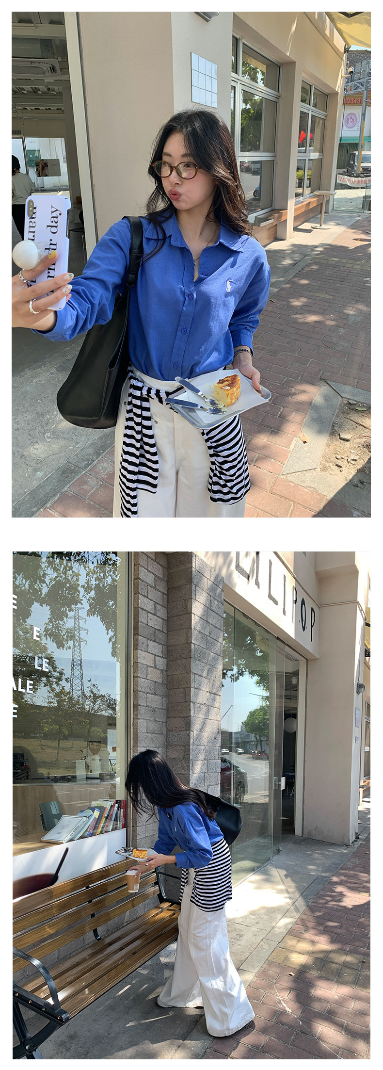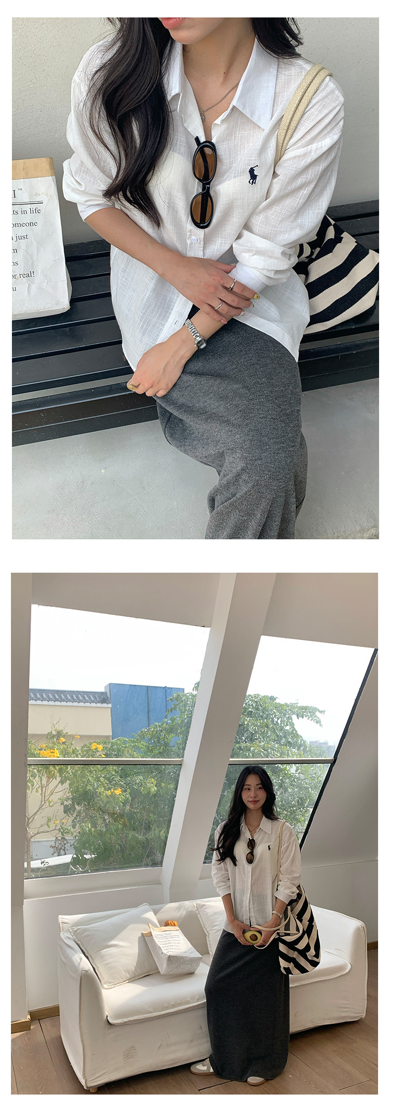 *o-ha-you*【FHZH1CA5010188】簡約小馬刺繡花襯衫2025春季韓版寬鬆休閒小開襟衫-2色-如有需要請先諮詢