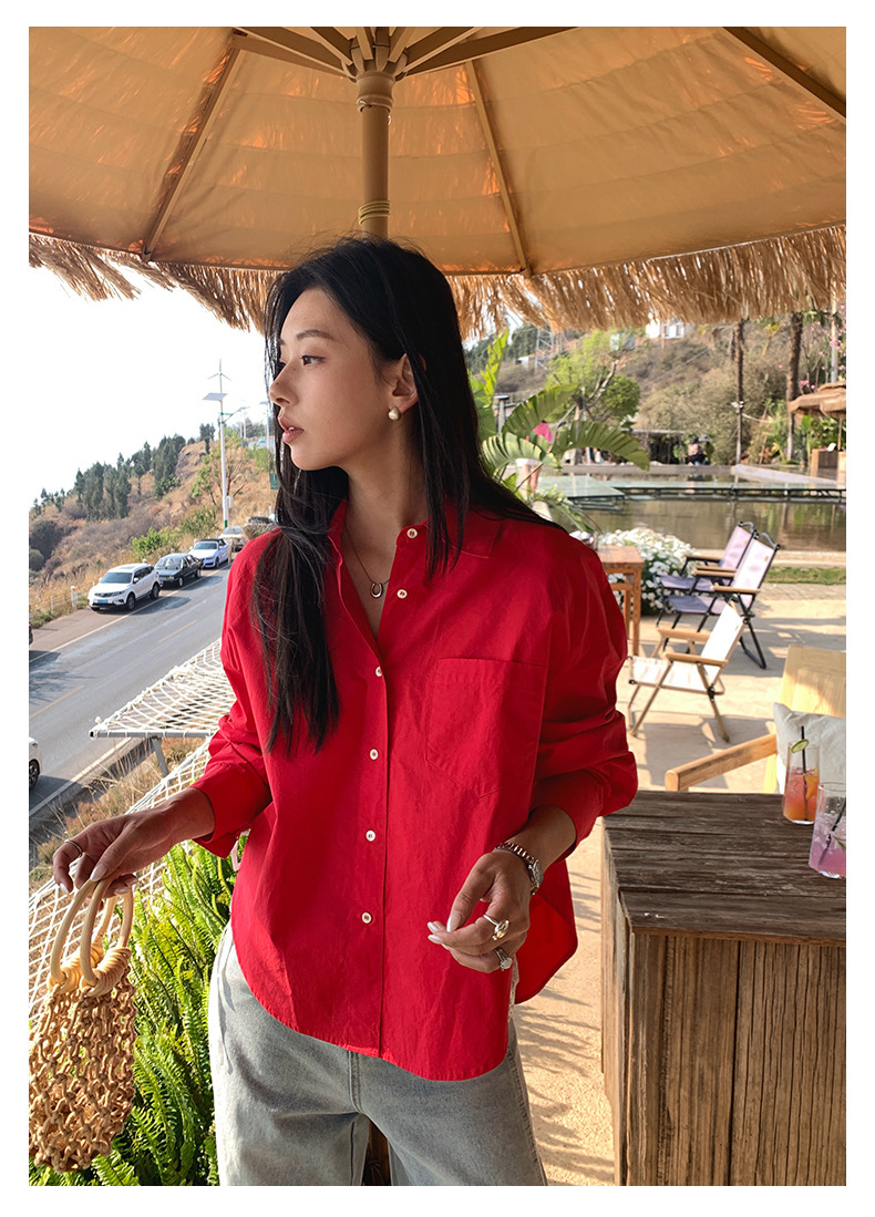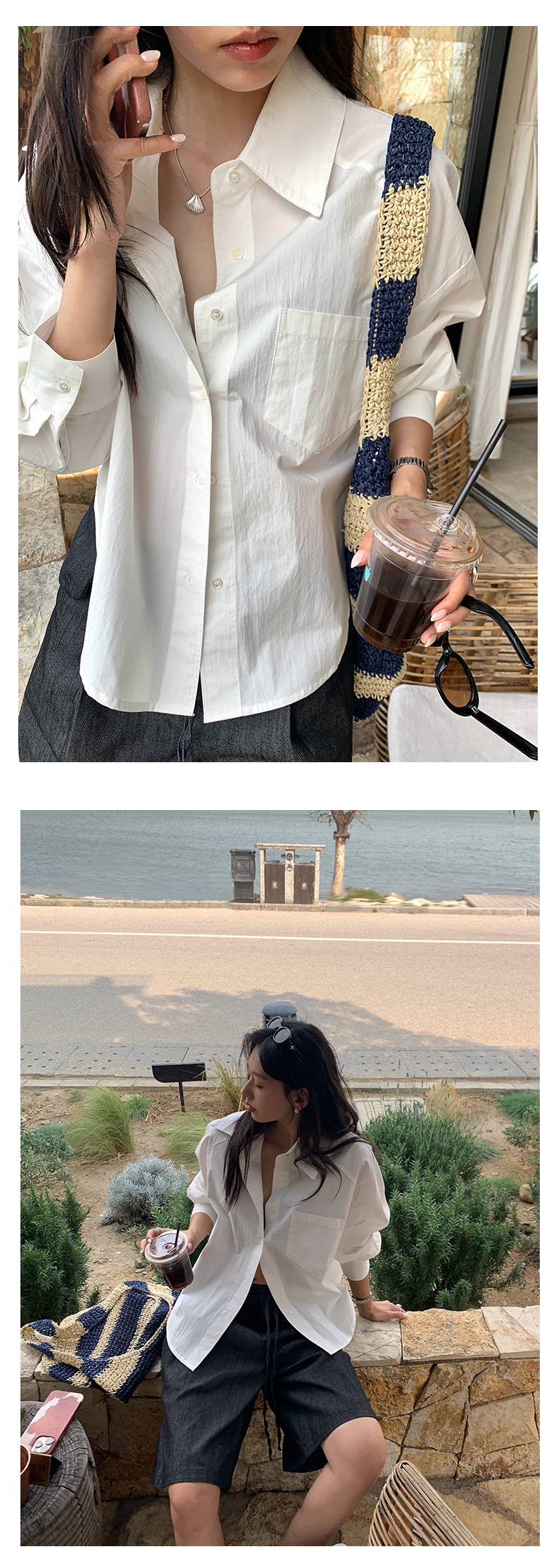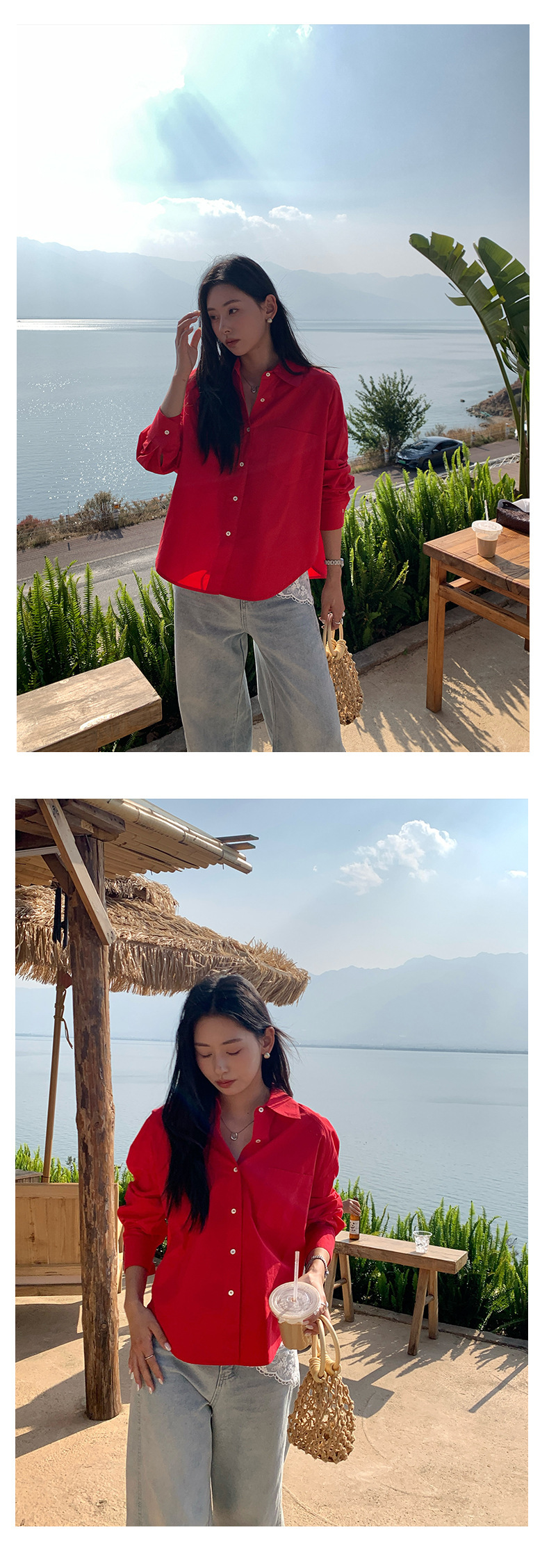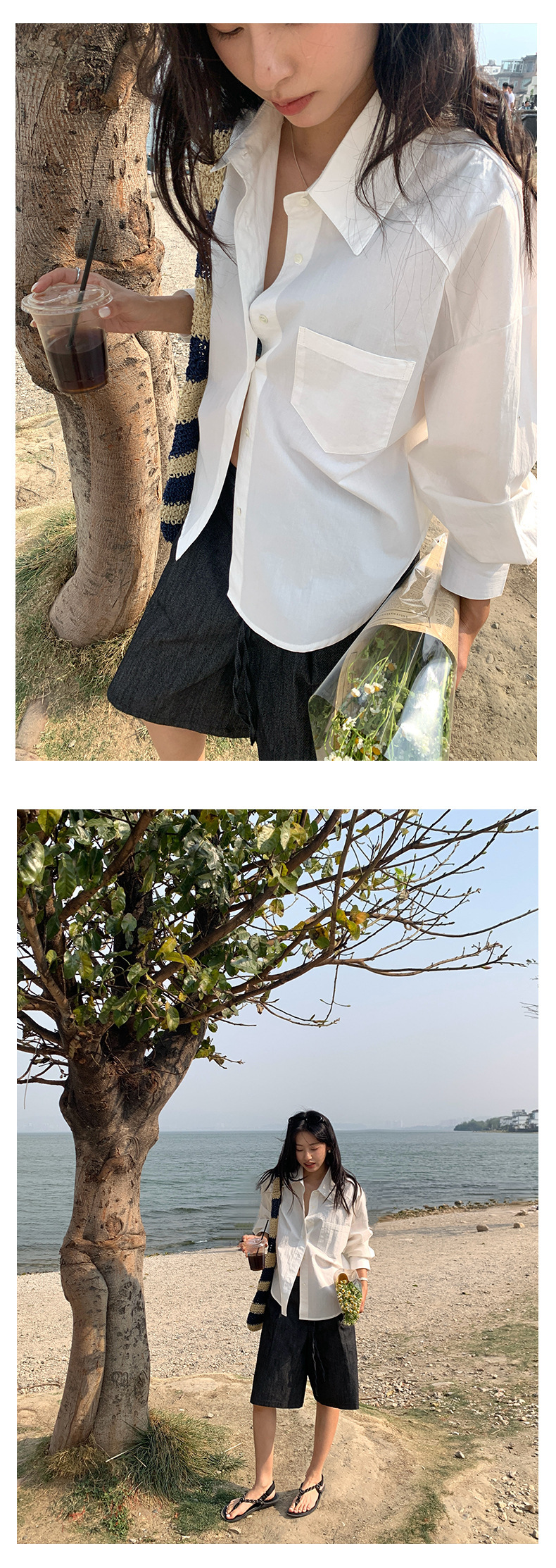 *o-ha-you*【FHZH1CA5020363】大翻領單口袋簡約設計長袖襯衫2025夏款幹練時尚上衣-3色