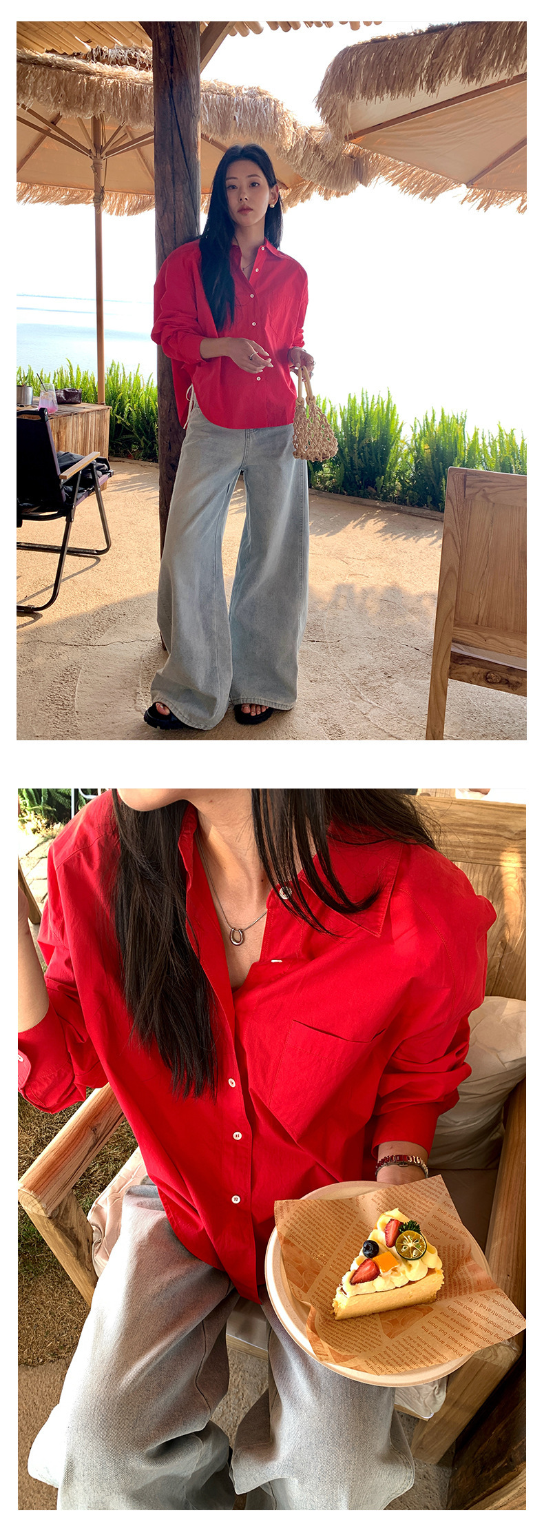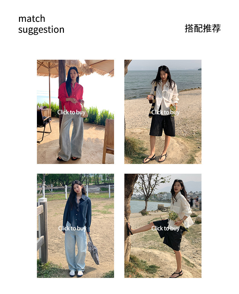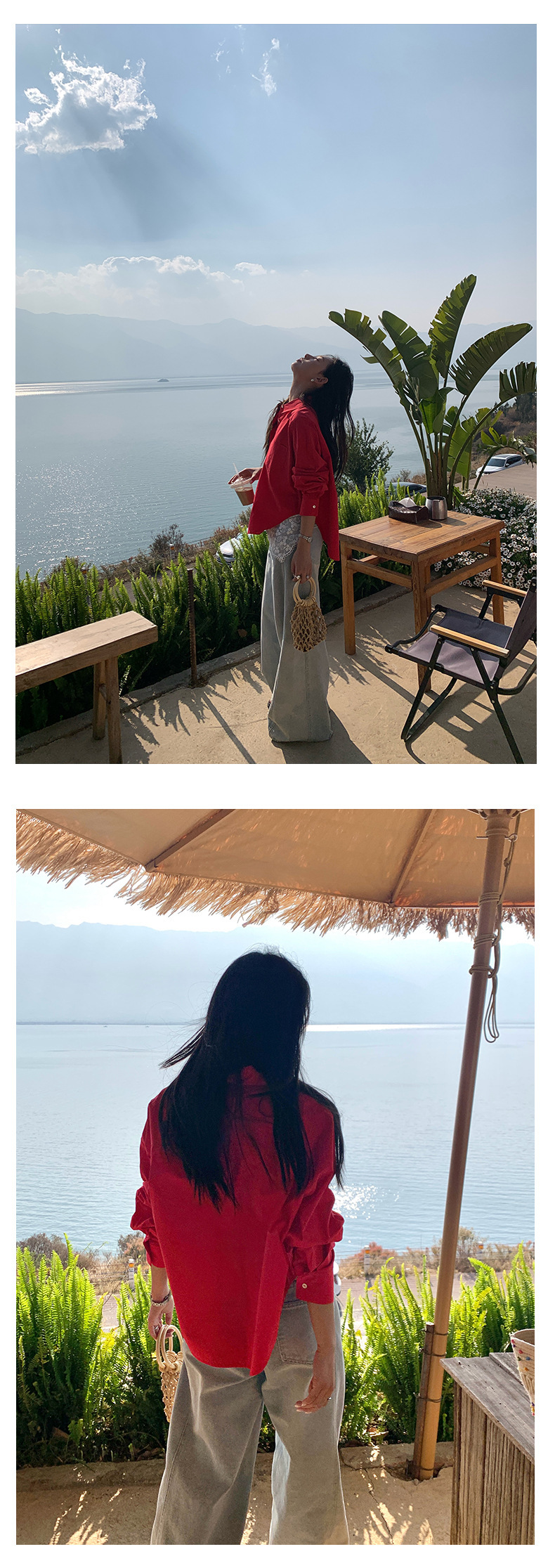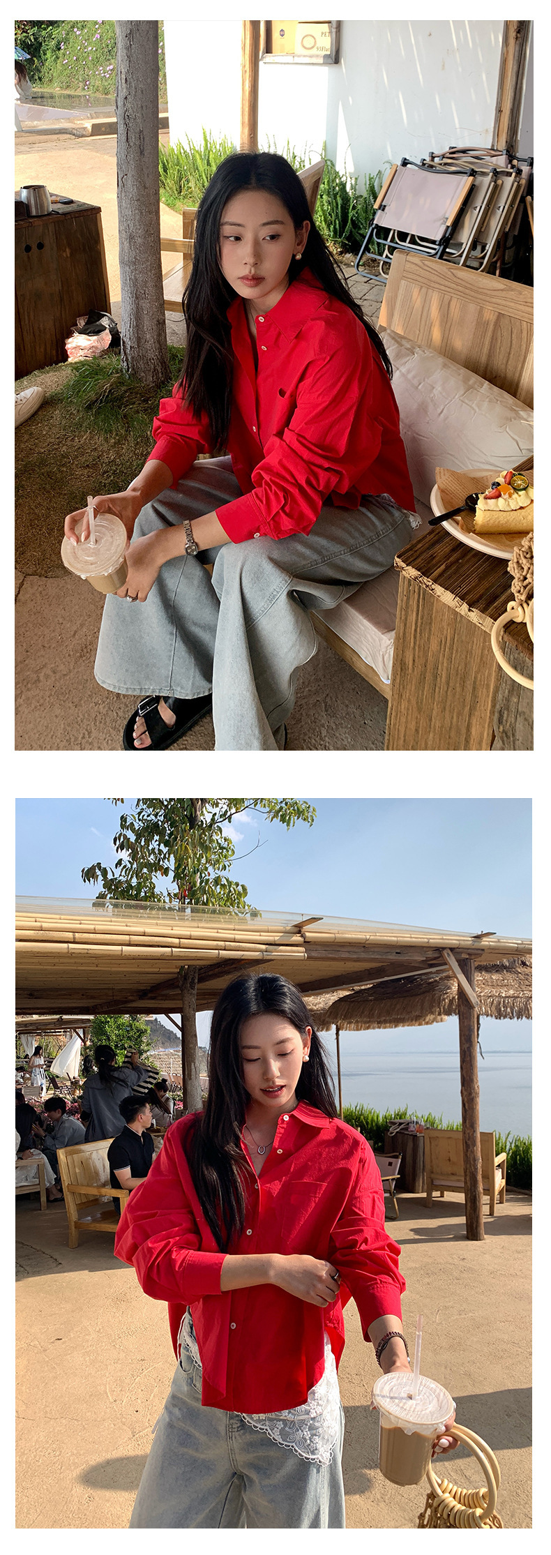 *o-ha-you*【FHZH1CA5020363】大翻領單口袋簡約設計長袖襯衫2025夏款幹練時尚上衣-3色