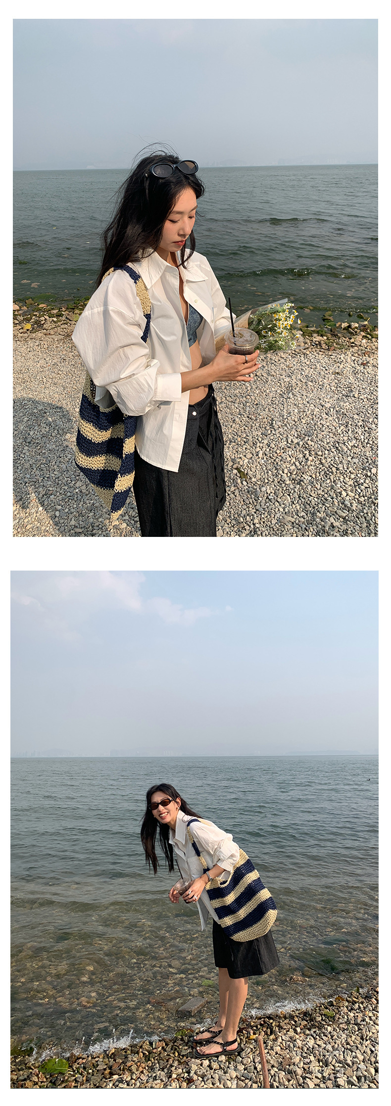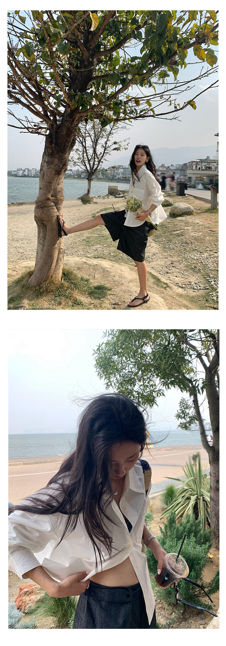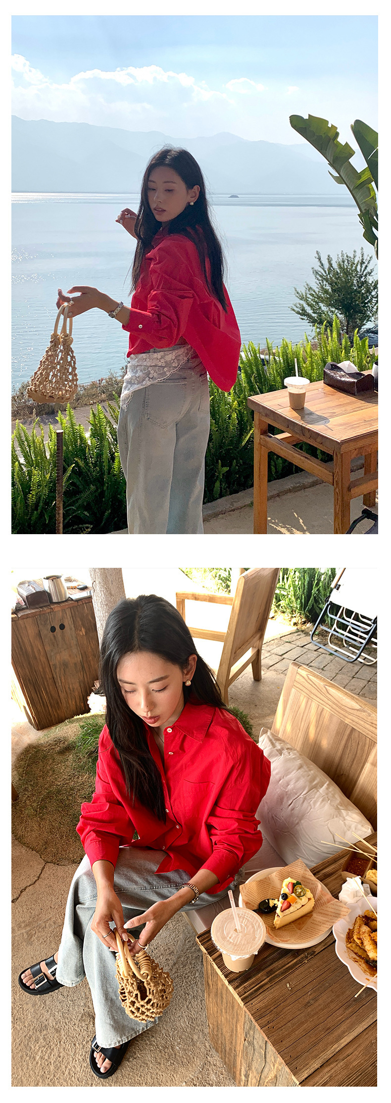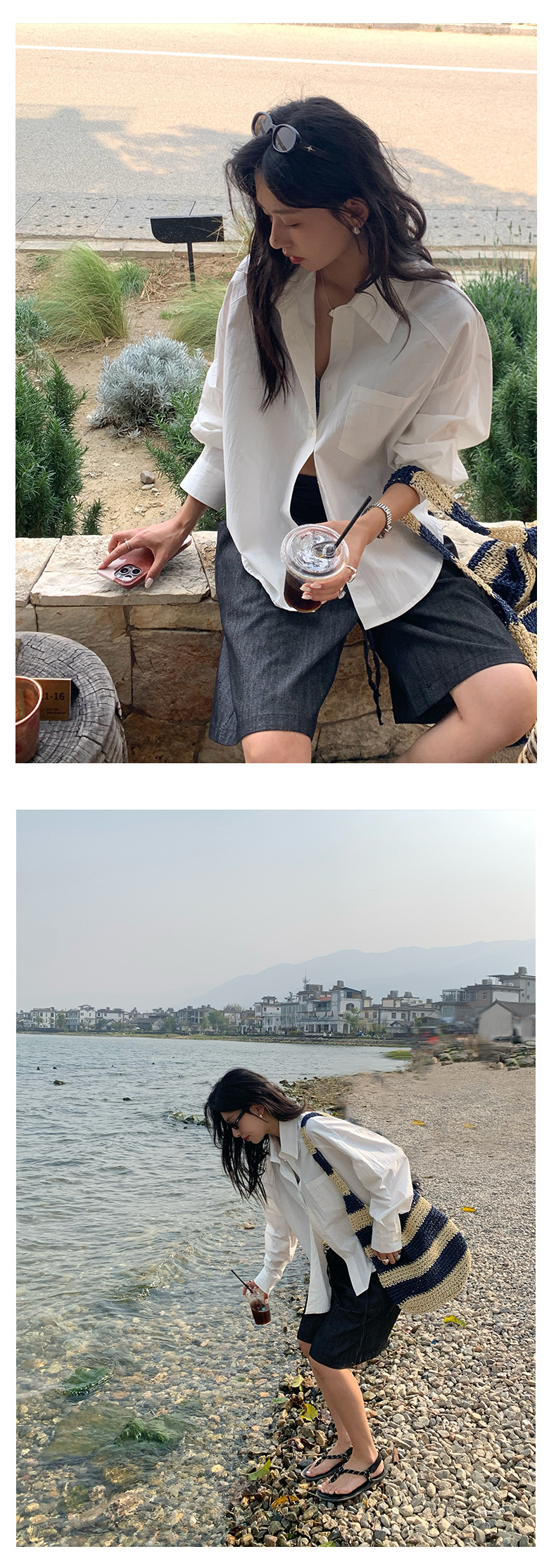 *o-ha-you*【FHZH1CA5020363】大翻領單口袋簡約設計長袖襯衫2025夏款幹練時尚上衣-3色