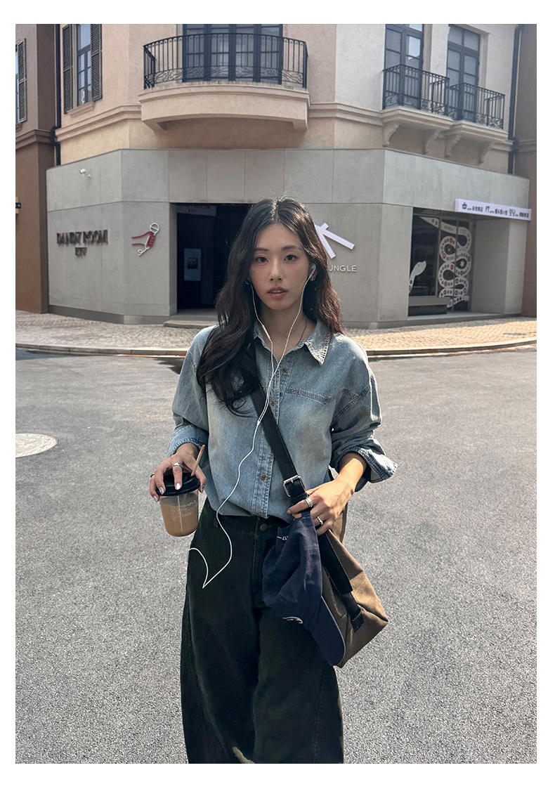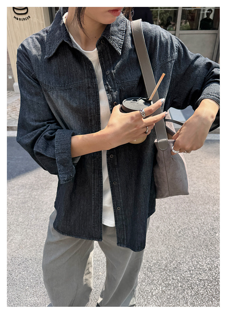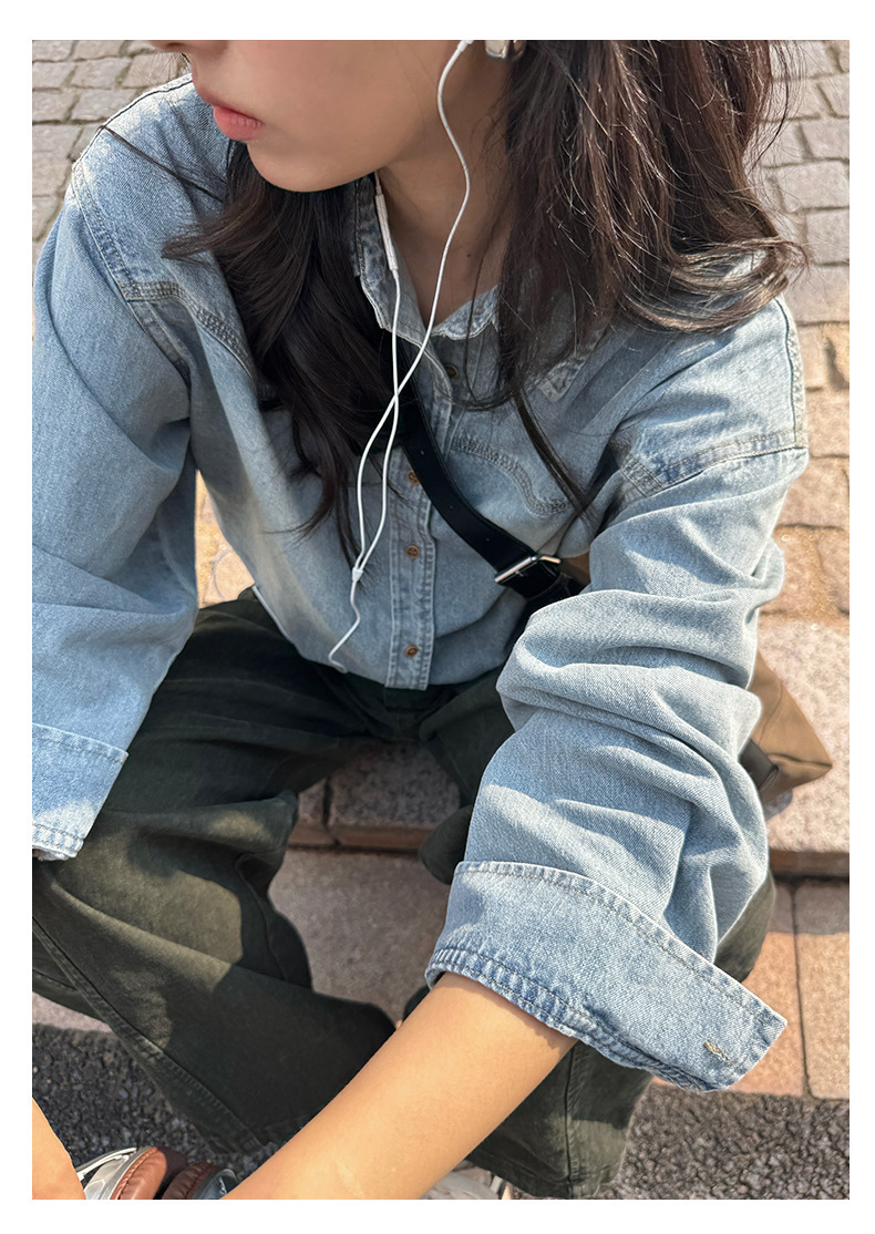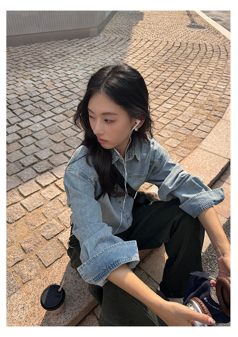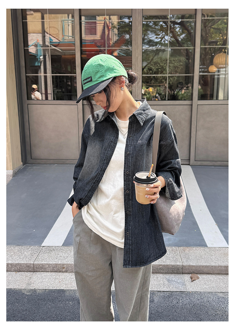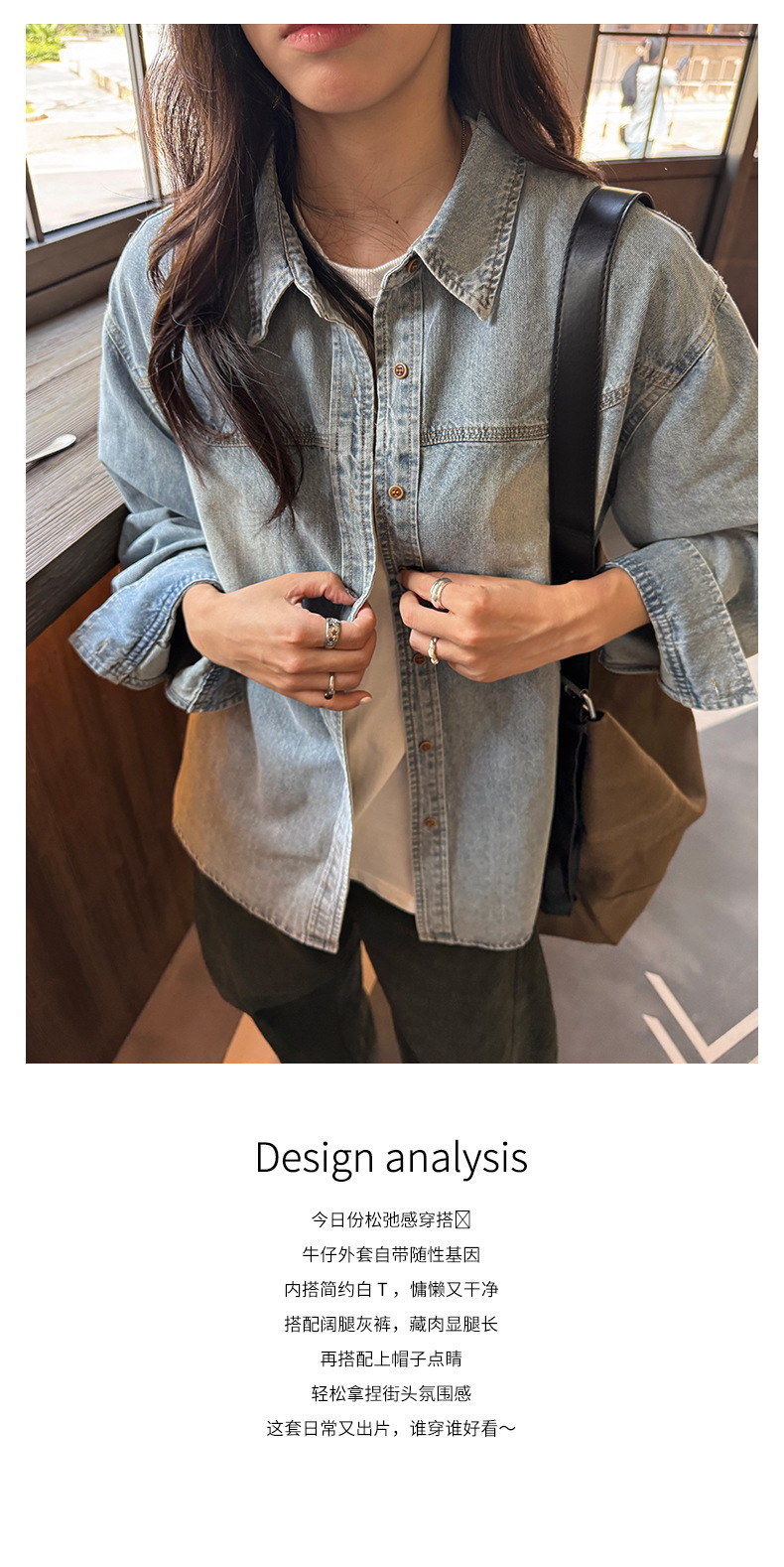 *o-ha-you*【FHZH1CA5030064】早秋新款韓系簡約百搭寬鬆休閒牛仔襯衫長袖襯衣潮-2色