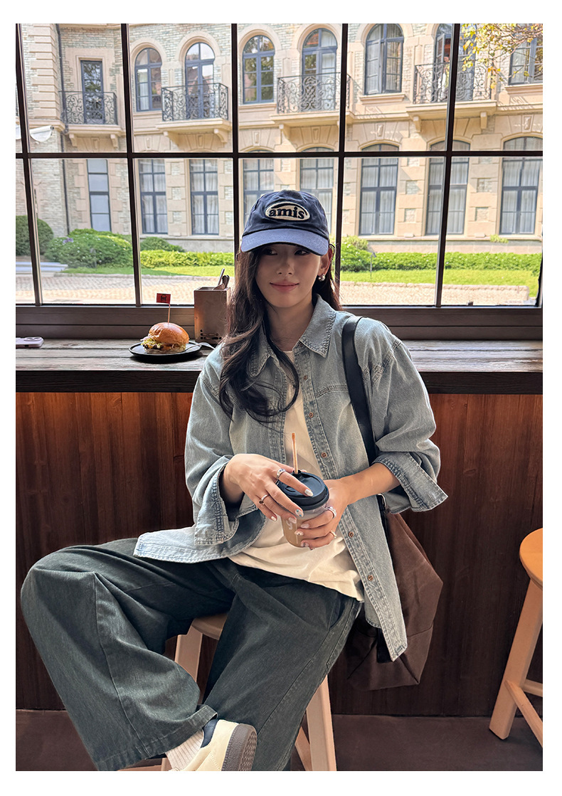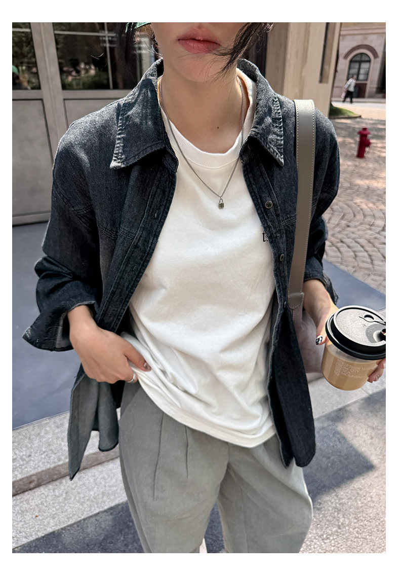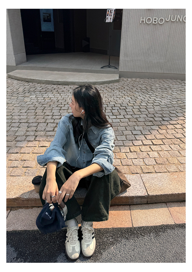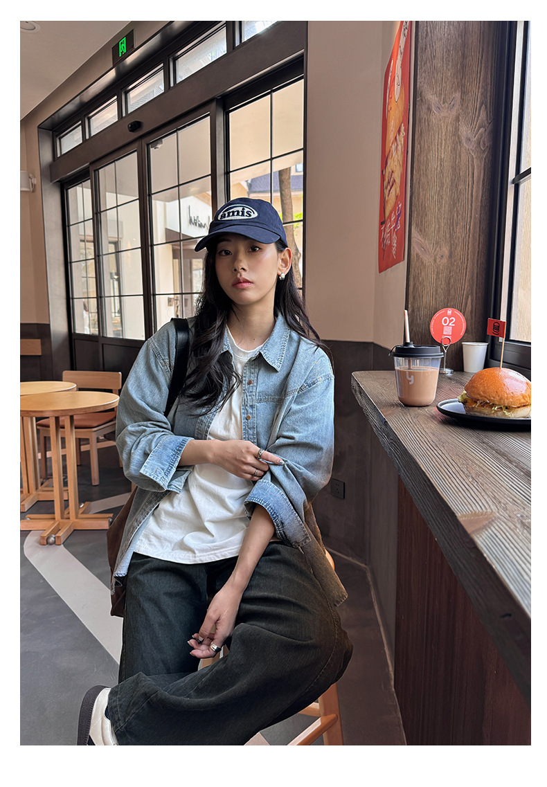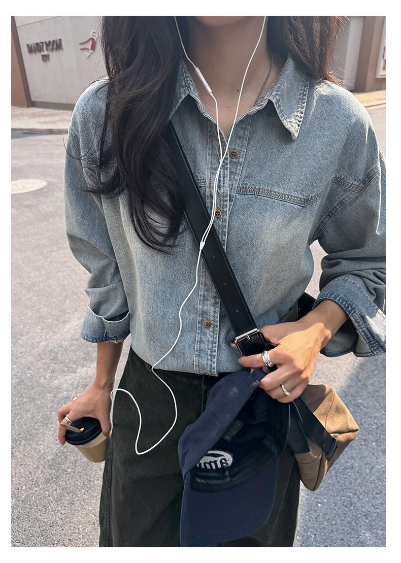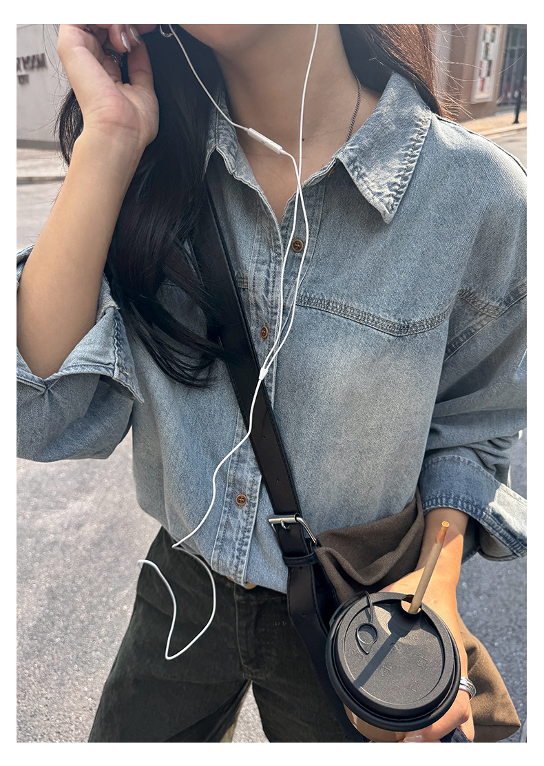 *o-ha-you*【FHZH1CA5030064】早秋新款韓系簡約百搭寬鬆休閒牛仔襯衫長袖襯衣潮-2色
