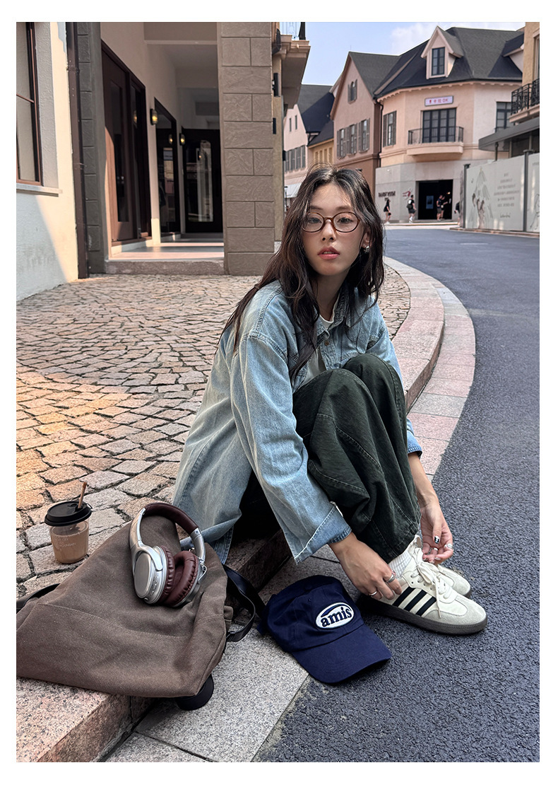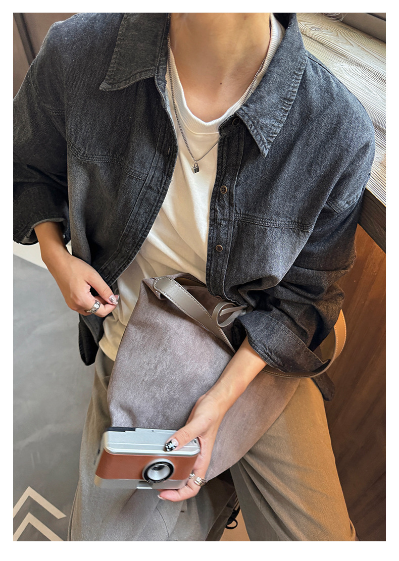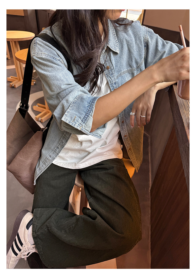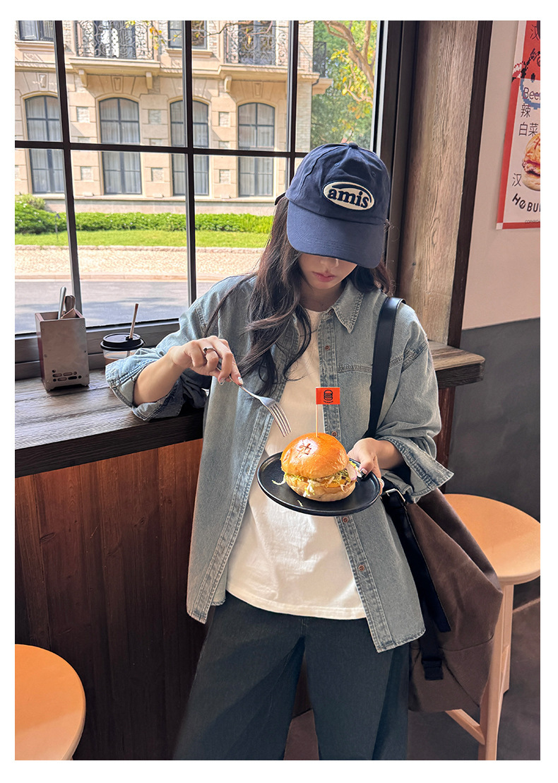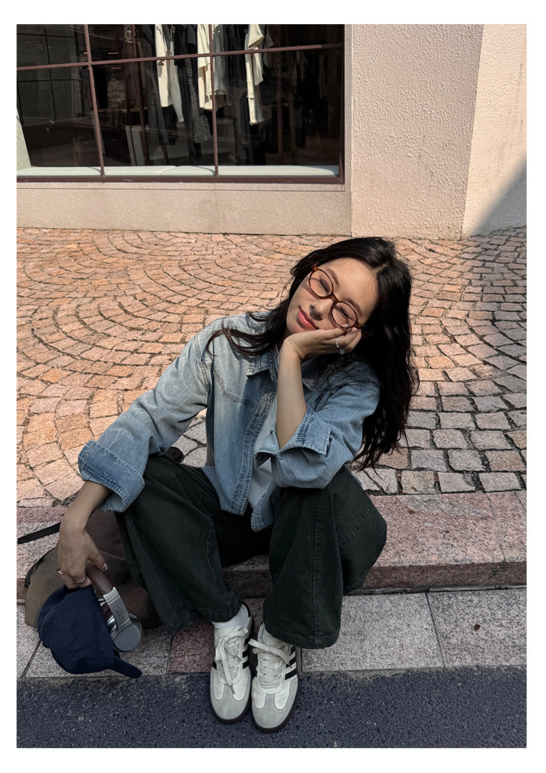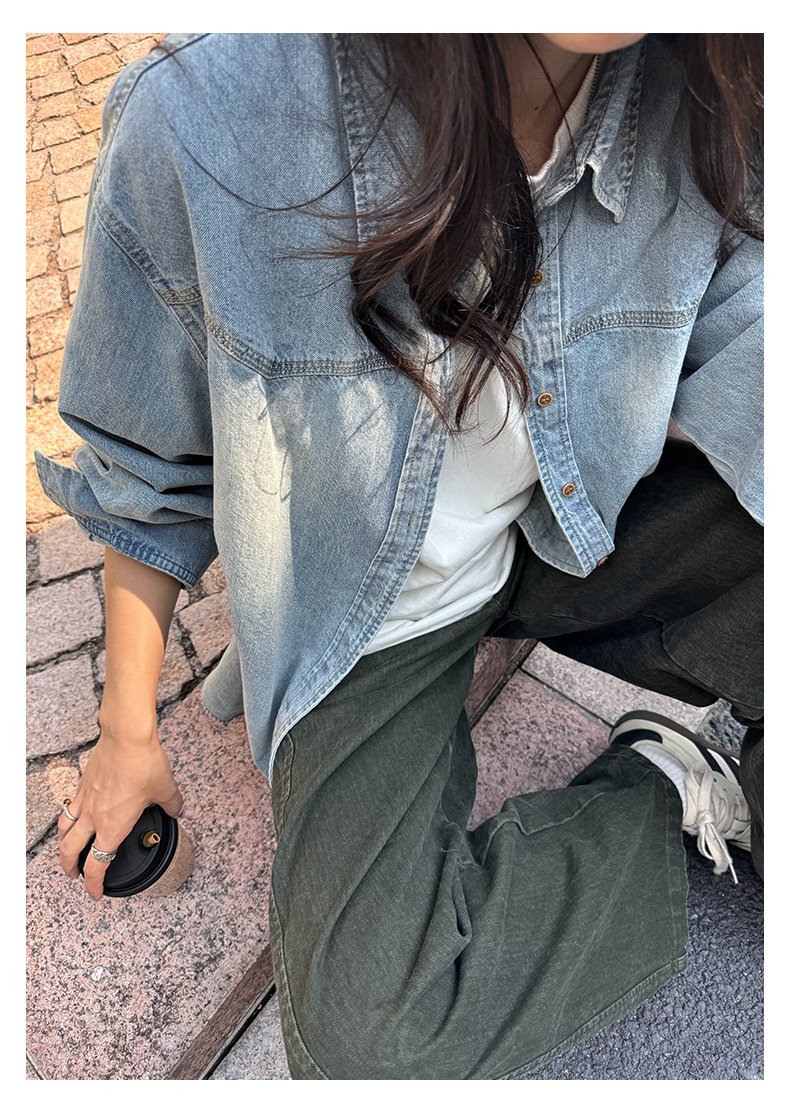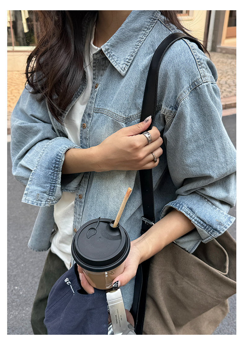 *o-ha-you*【FHZH1CA5030064】早秋新款韓系簡約百搭寬鬆休閒牛仔襯衫長袖襯衣潮-2色