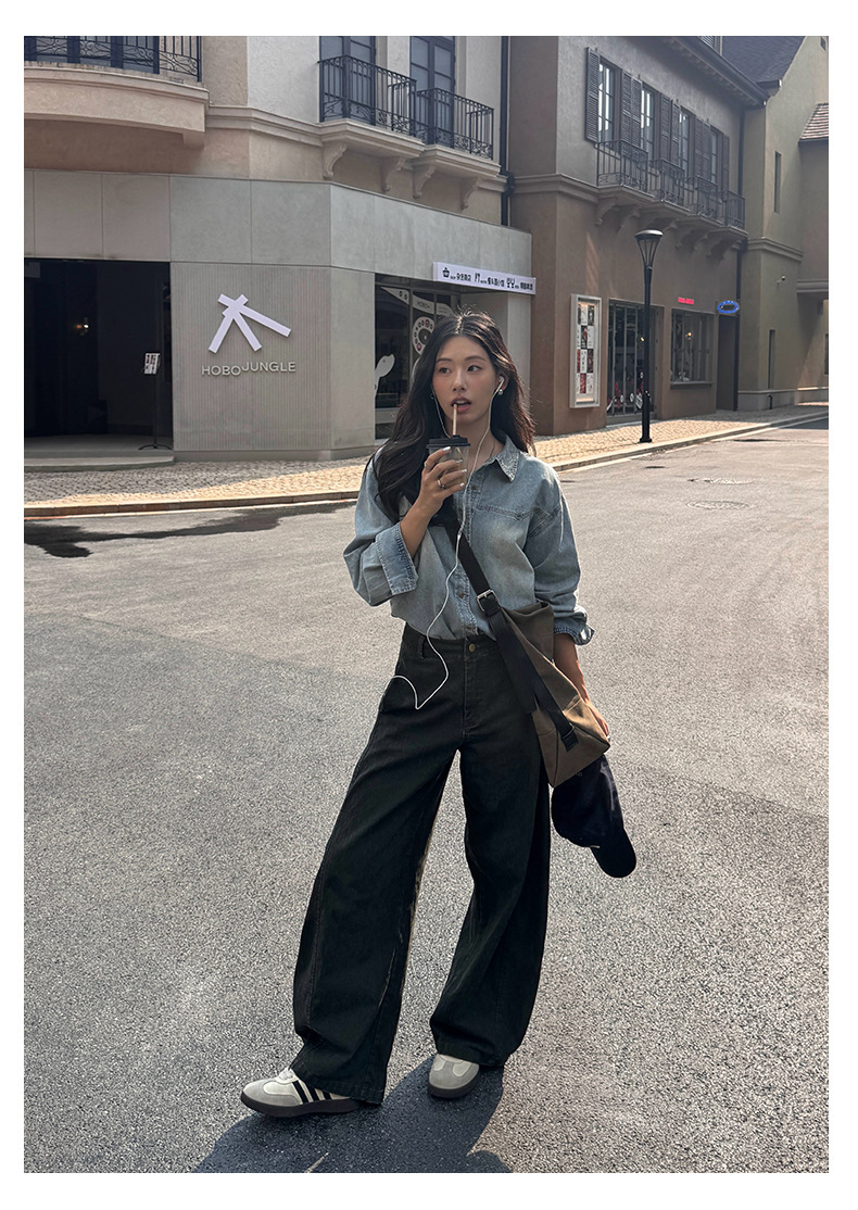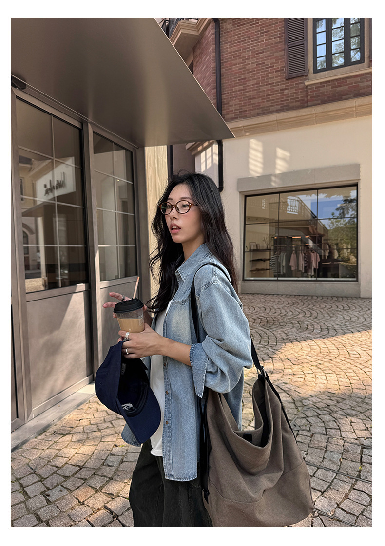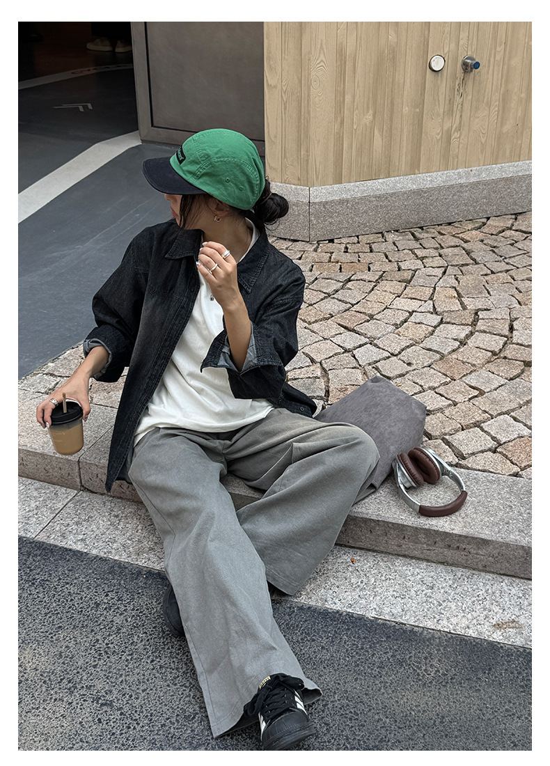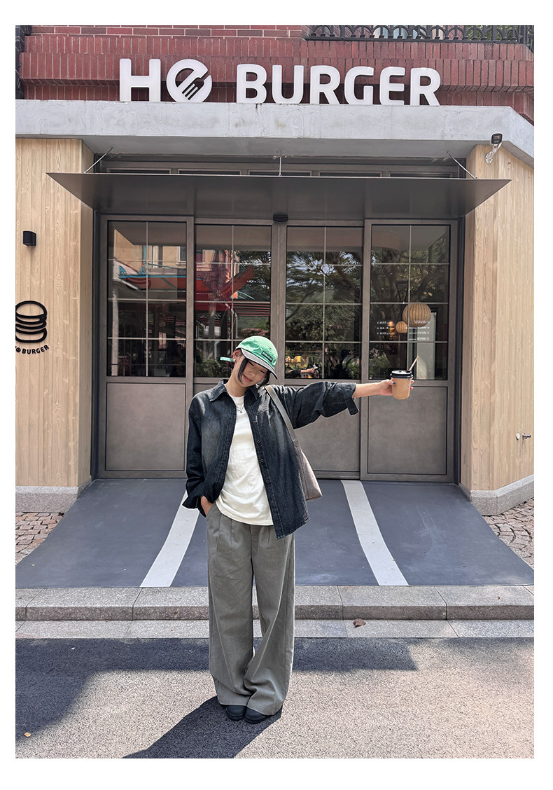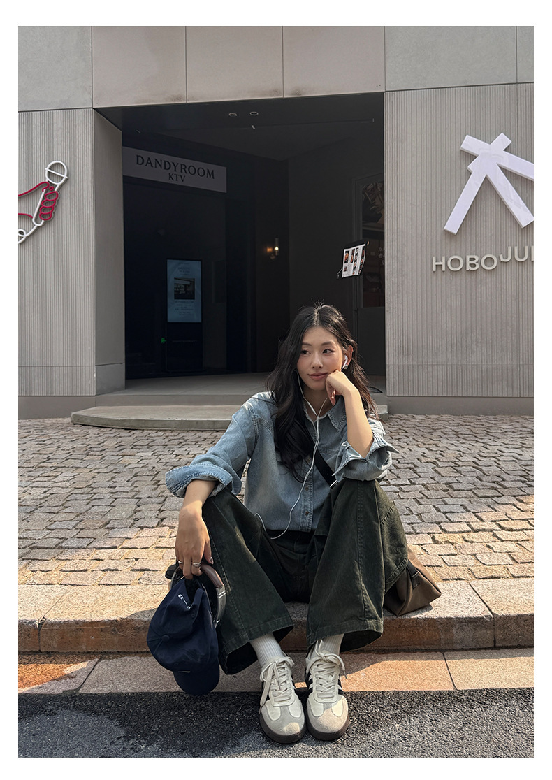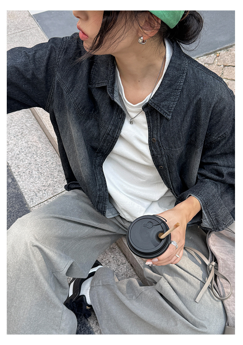 *o-ha-you*【FHZH1CA5030064】早秋新款韓系簡約百搭寬鬆休閒牛仔襯衫長袖襯衣潮-2色