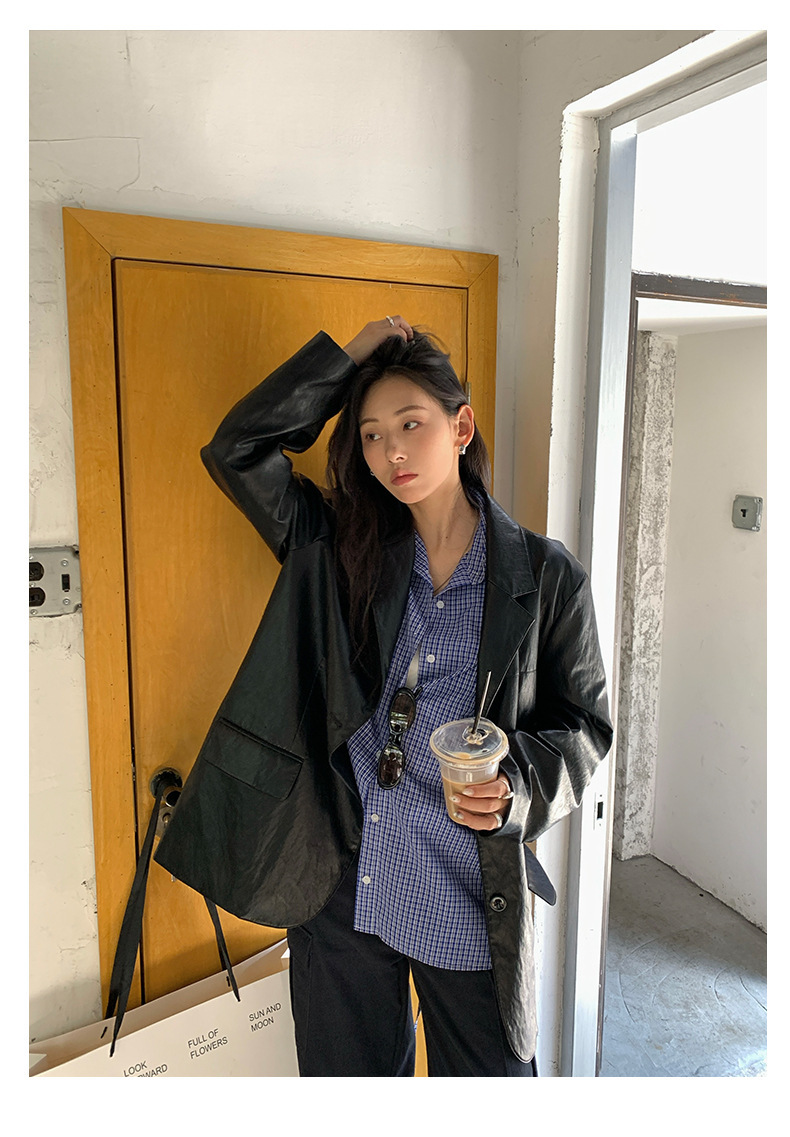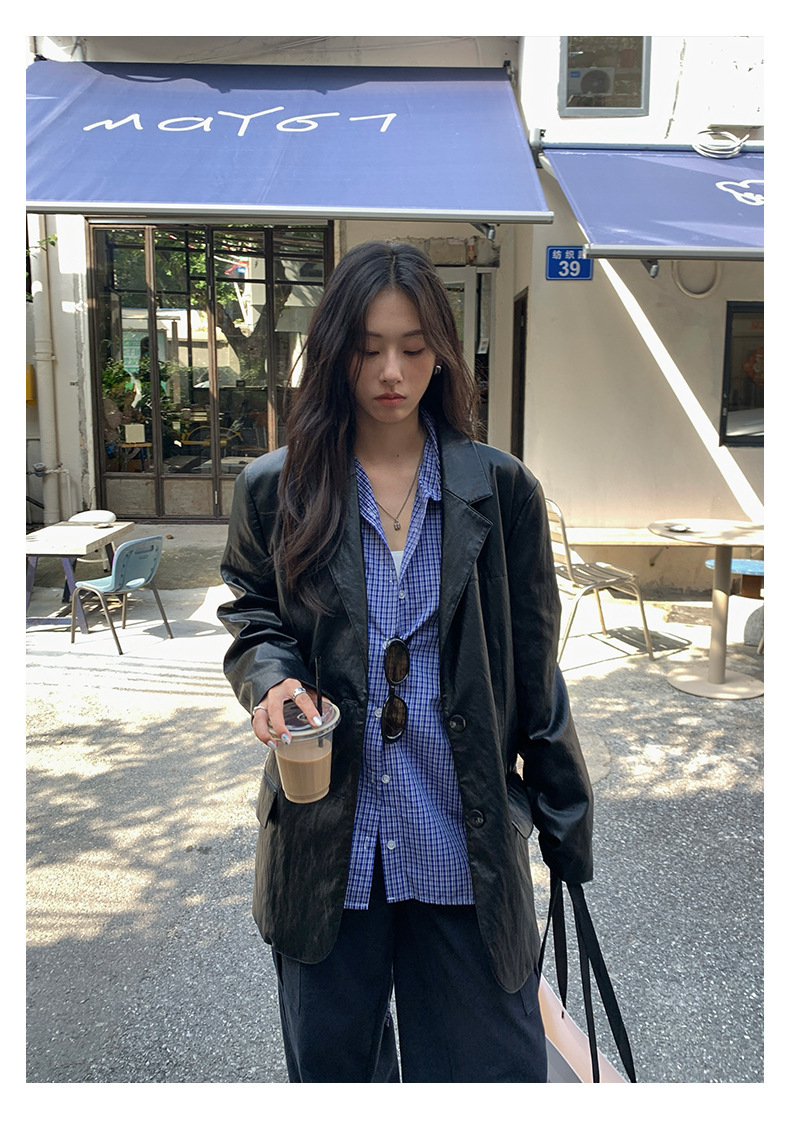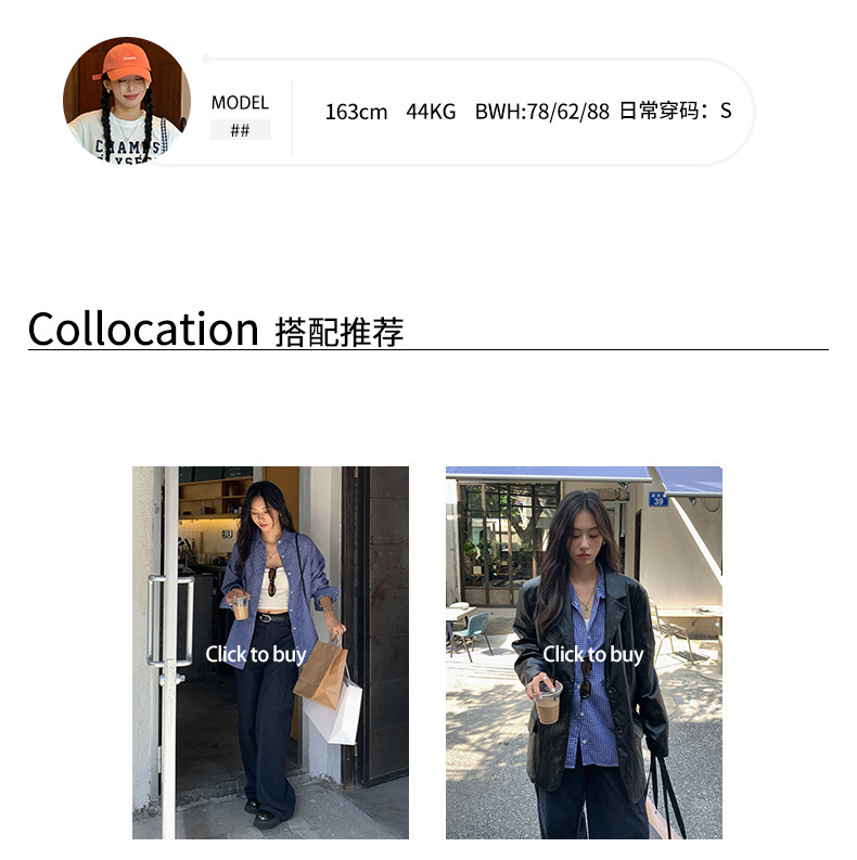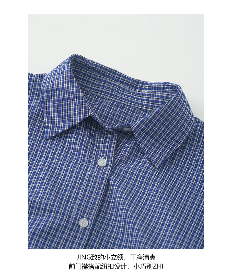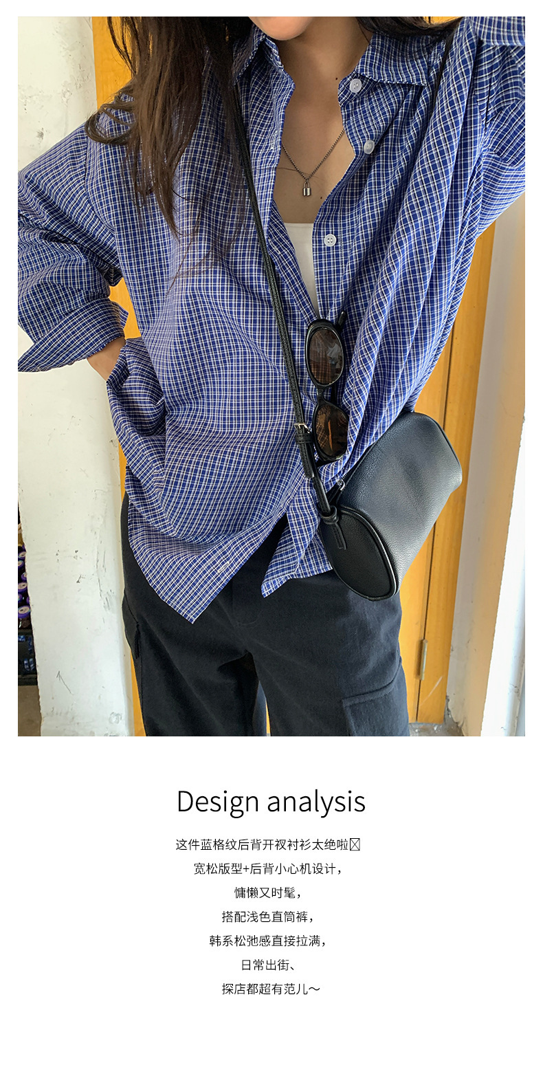 *o-ha-you*【FHZH1CA5030744】韓式藍色格紋長袖襯衫秋季寬鬆襯衣後背開叉設計