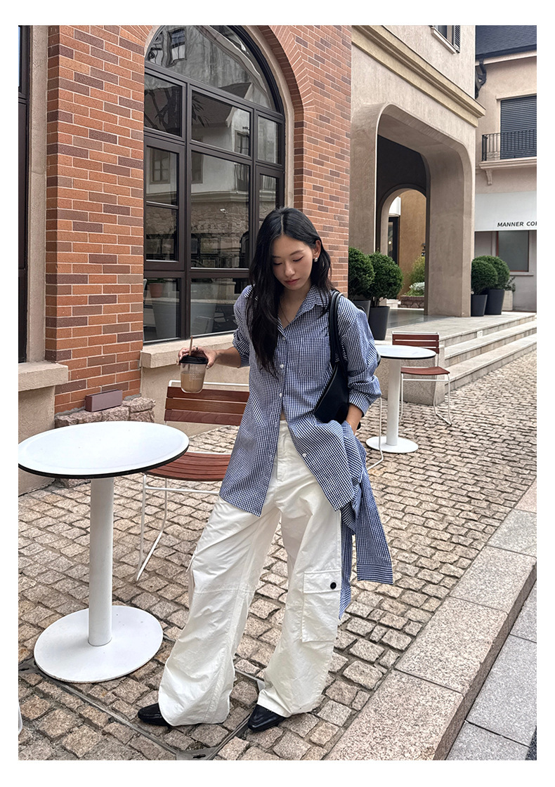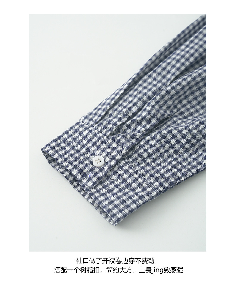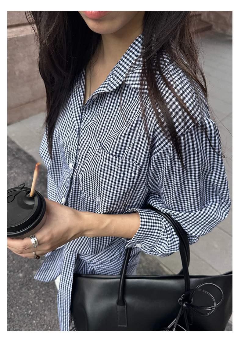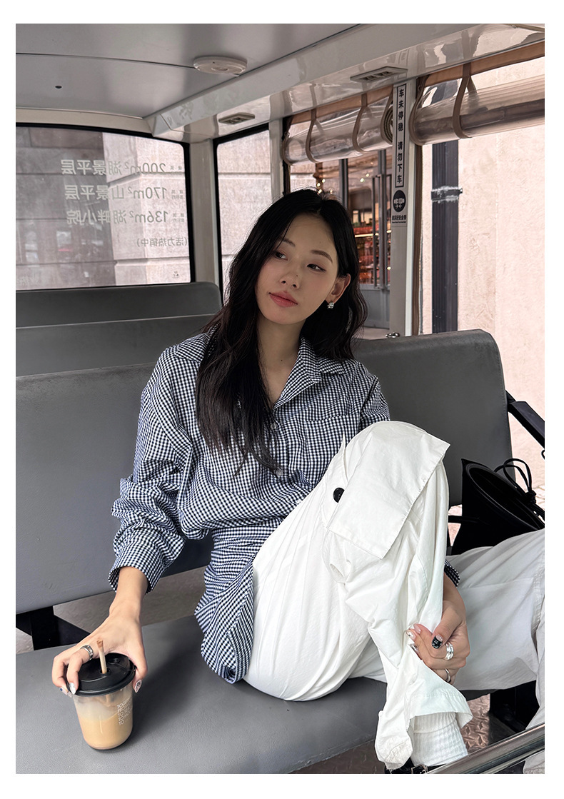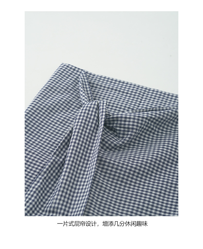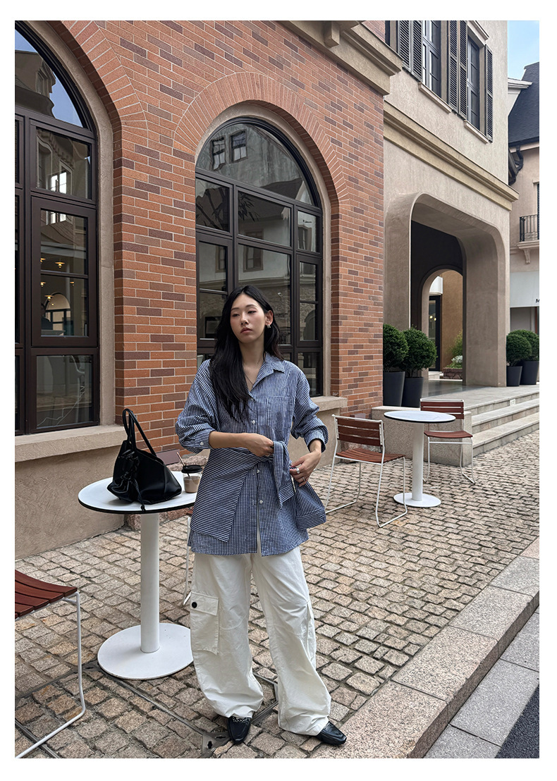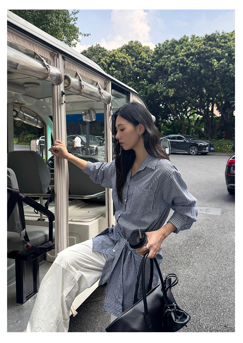 *o-ha-you*【FHZH1CA5030750】韓版秋季新款復古百搭顯瘦屁簾綁腰格紋長袖襯衫疊穿上衣