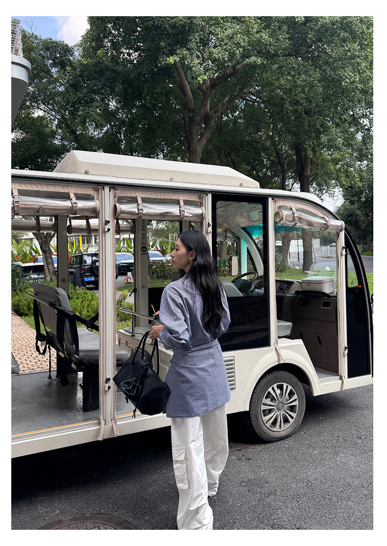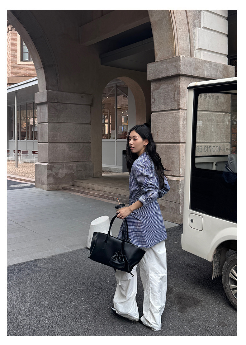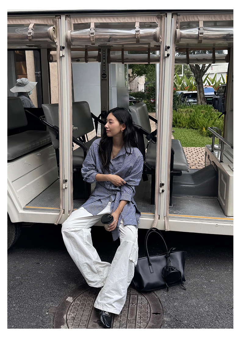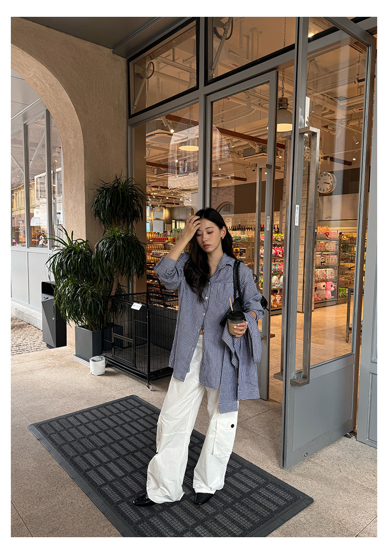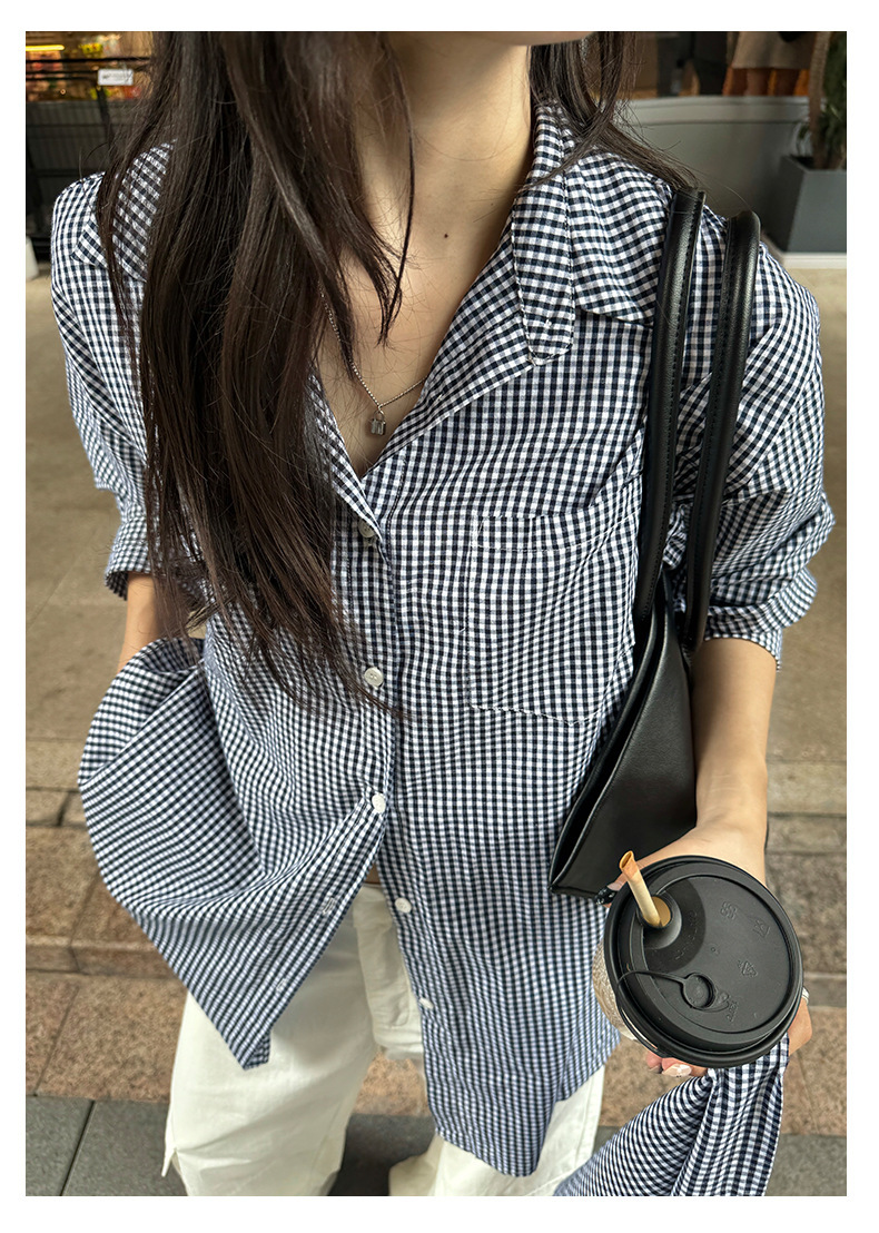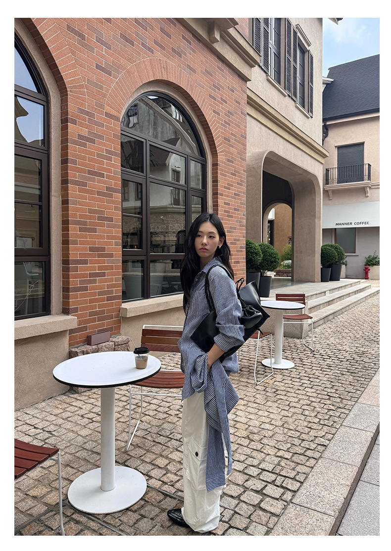 *o-ha-you*【FHZH1CA5030750】韓版秋季新款復古百搭顯瘦屁簾綁腰格紋長袖襯衫疊穿上衣