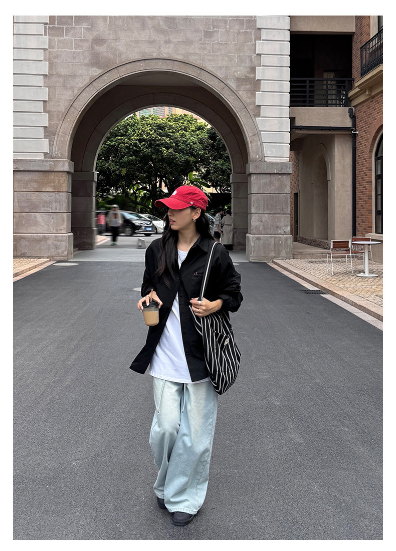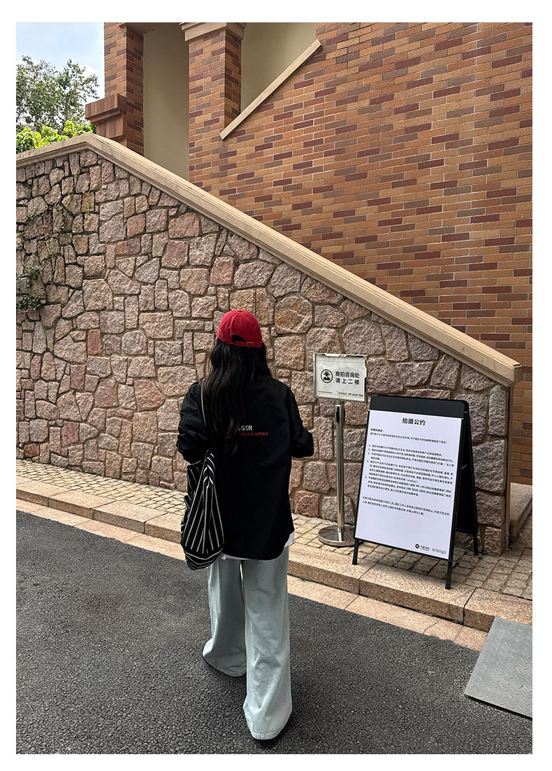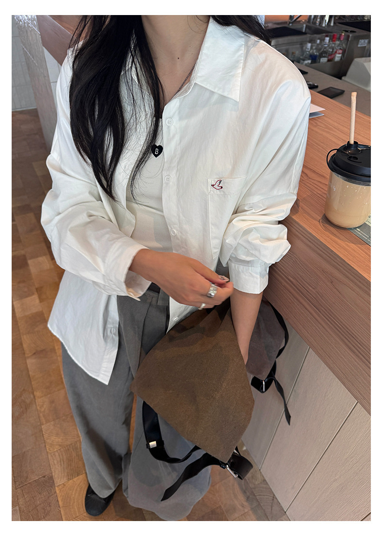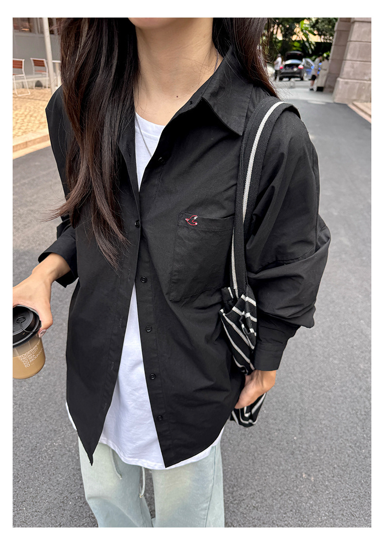 *o-ha-you*【FHZH1CA5030797】韓系襯衫背後刺繡設計寬鬆慵懶長袖早秋防曬襯衣-2色