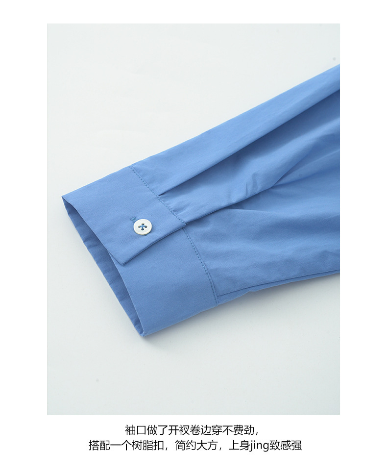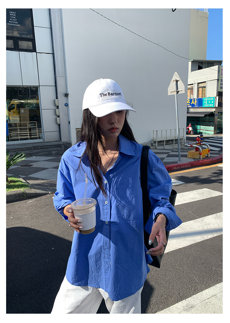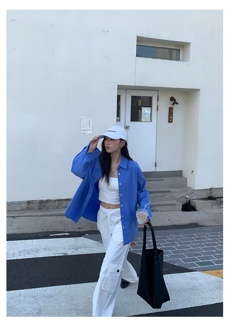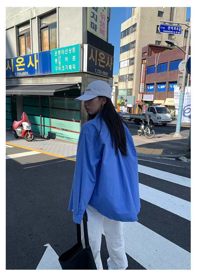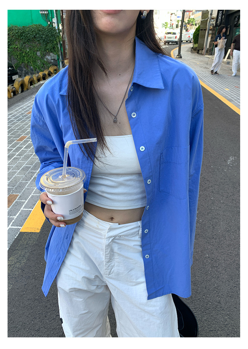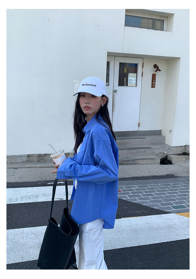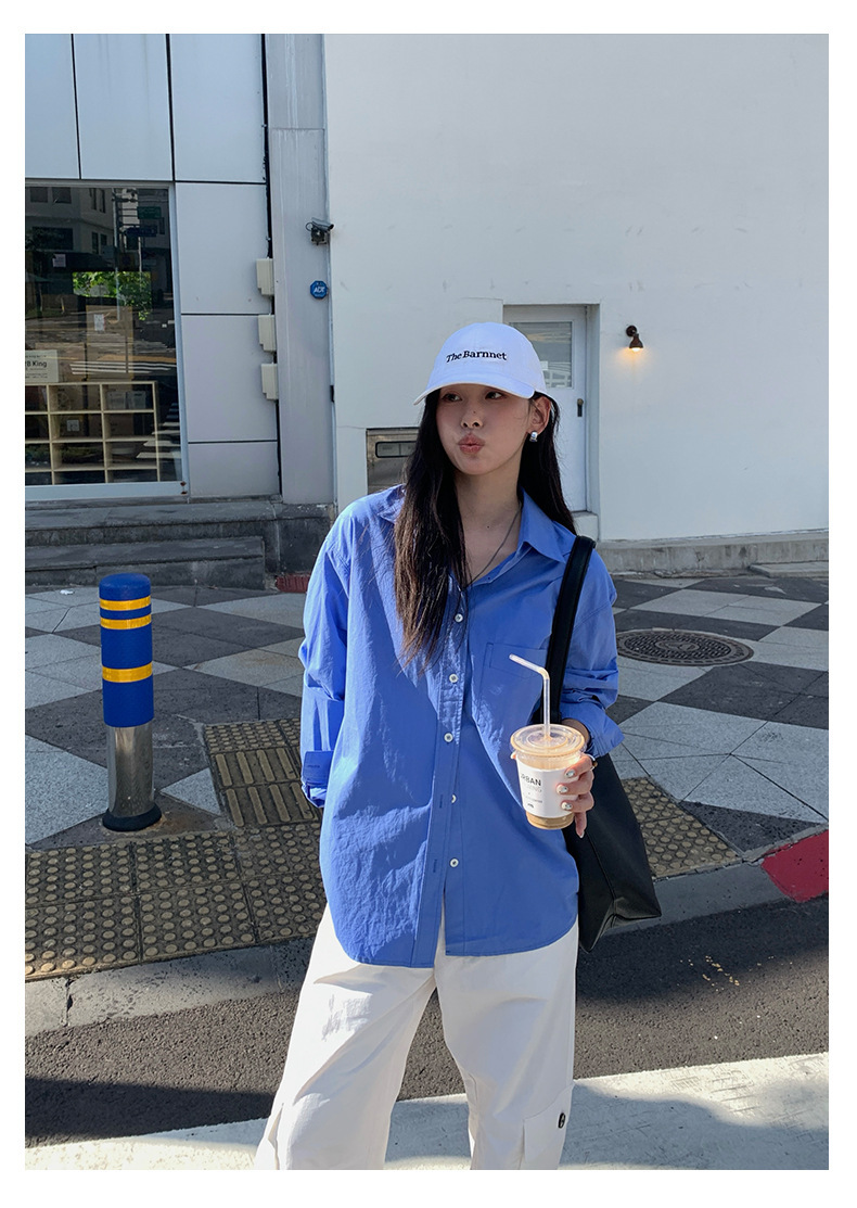 *o-ha-you*【FHZH1CA5030855】初秋純棉寶藍色襯衫長袖寬鬆純色疊穿襯衫外套開襟衫潮流