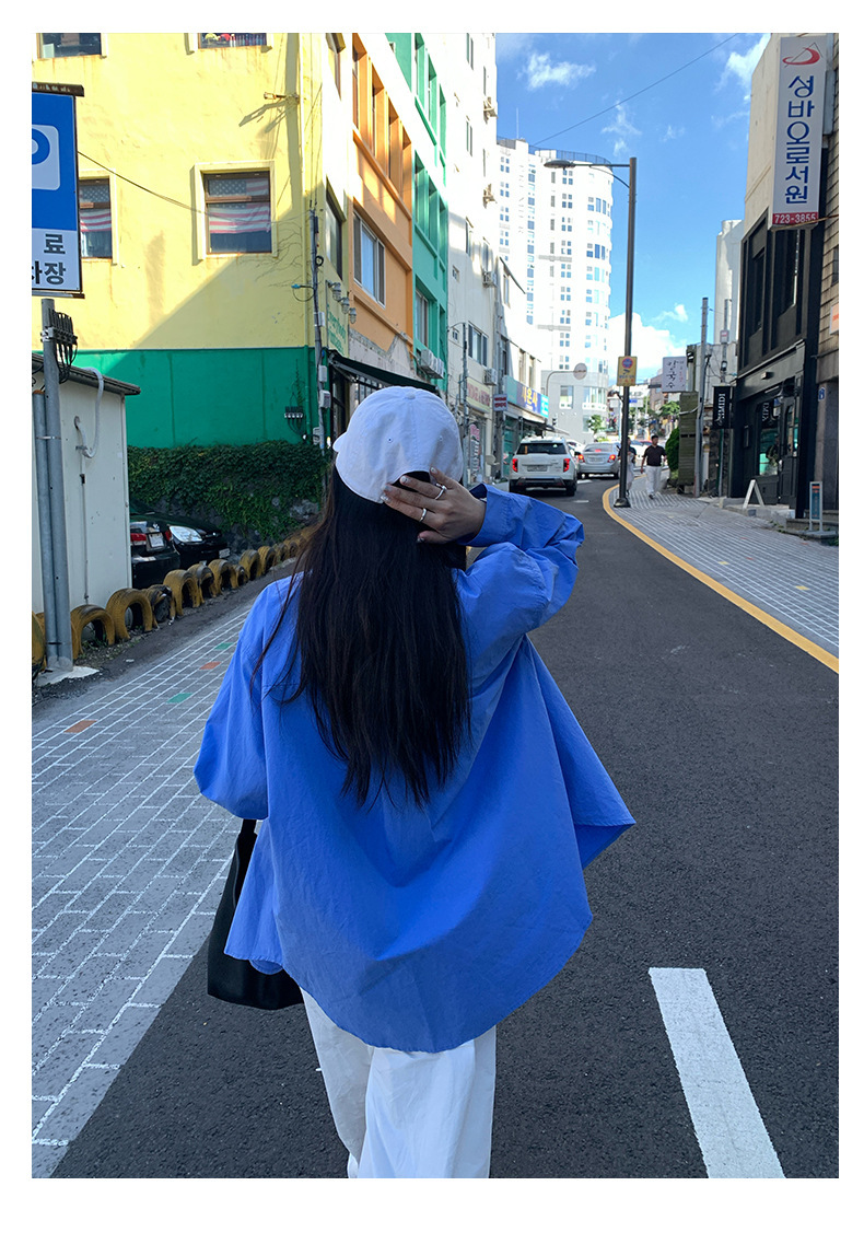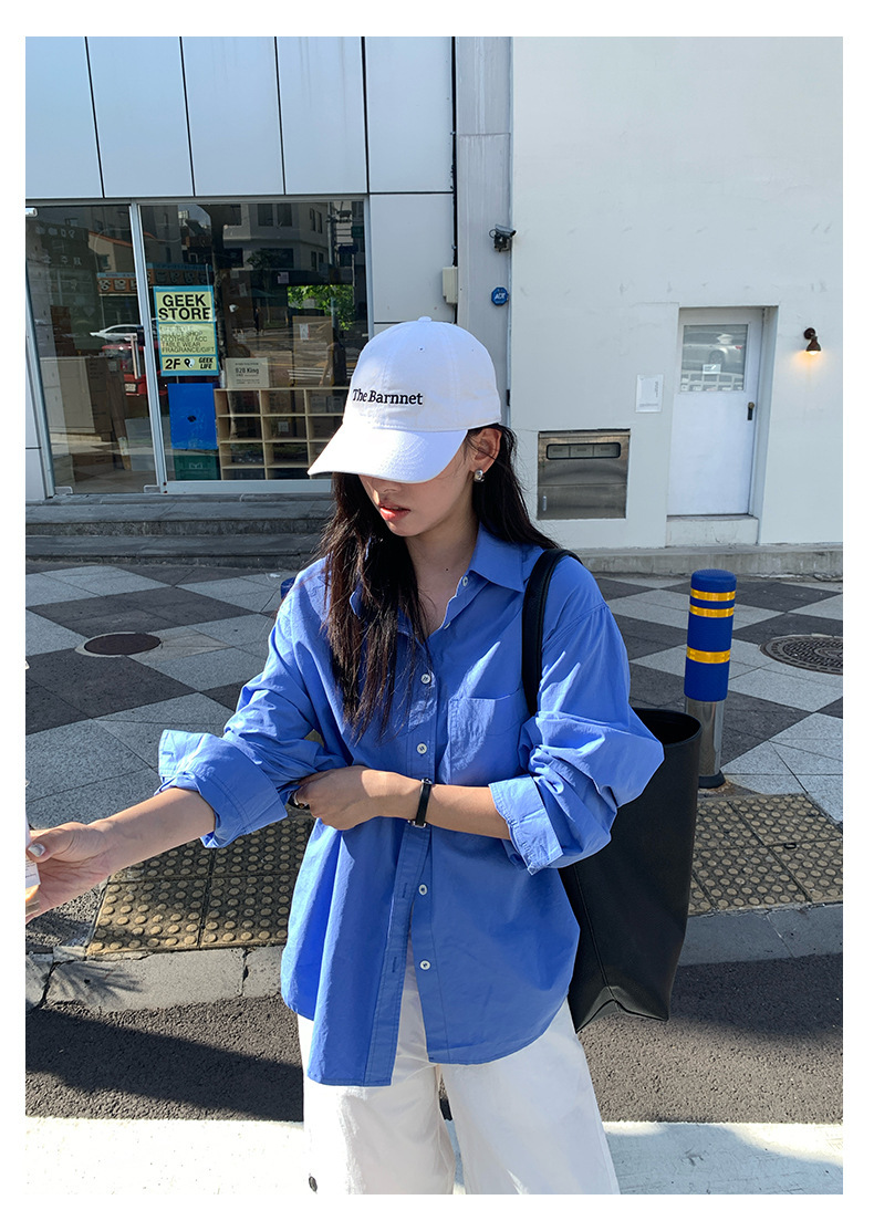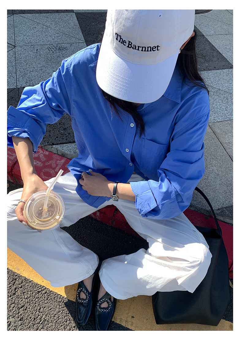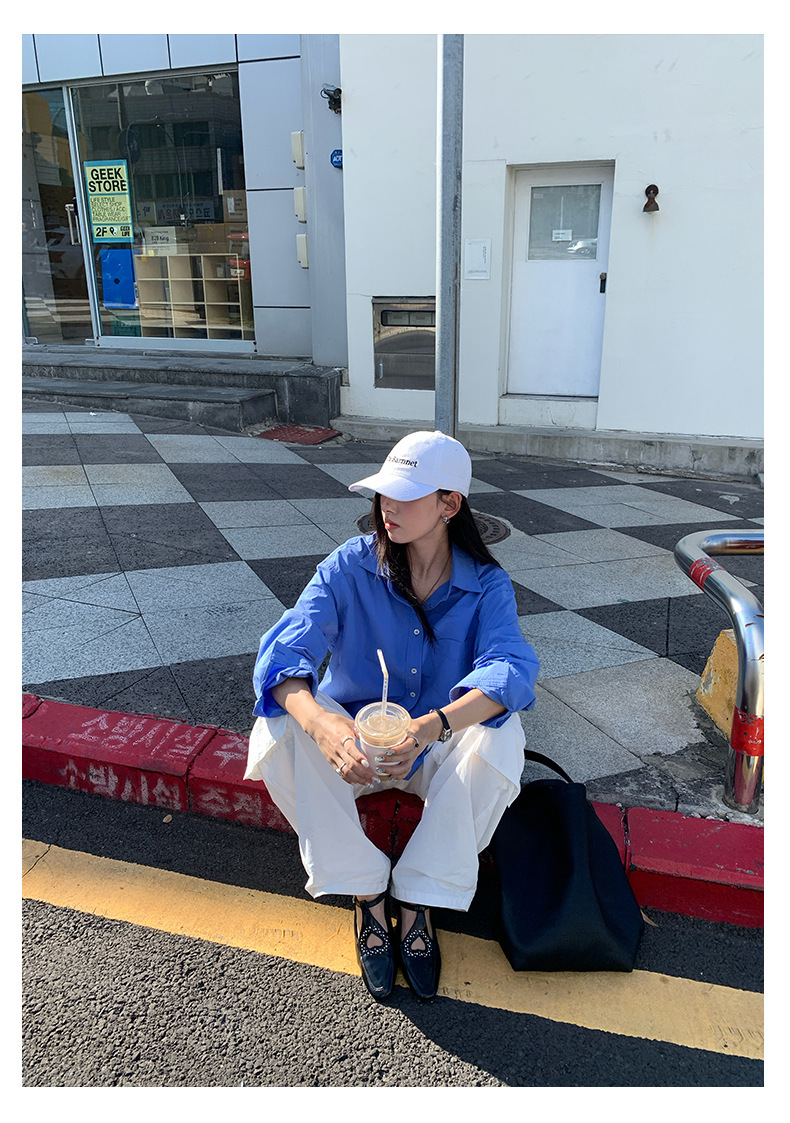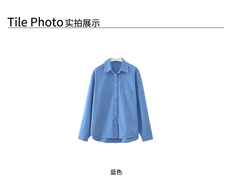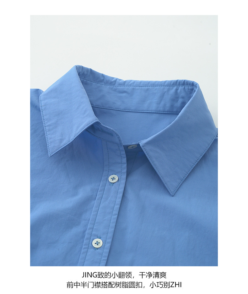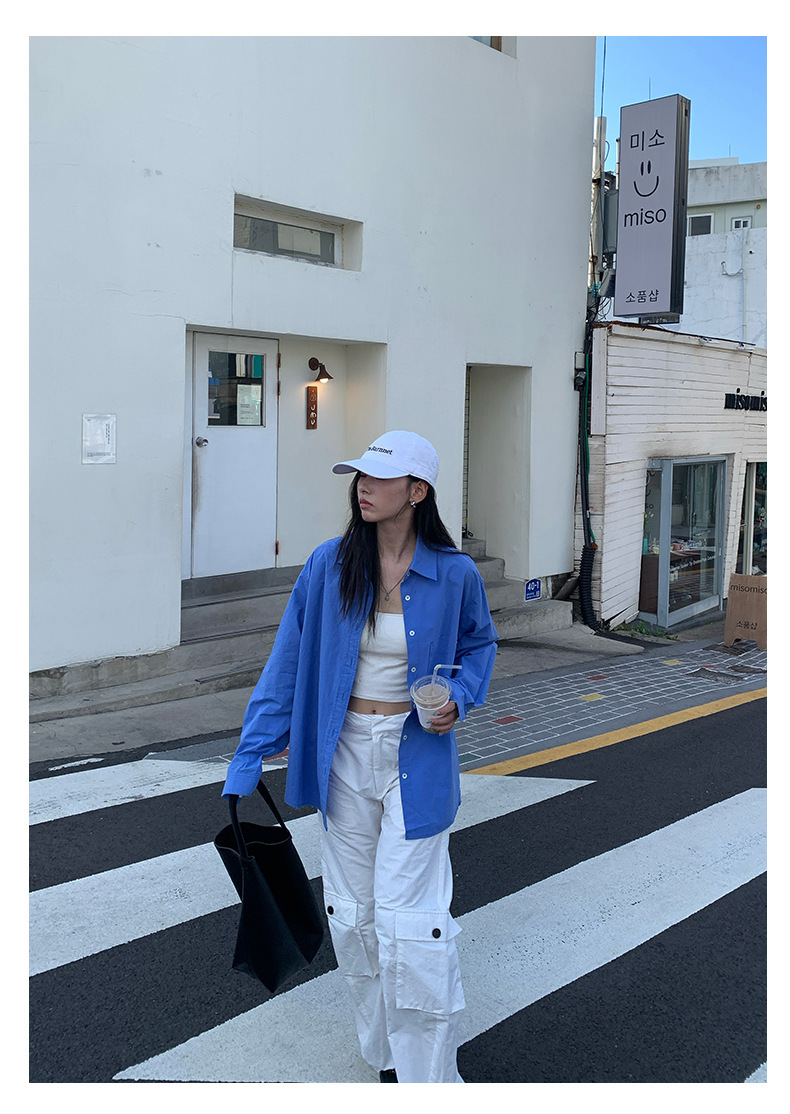 *o-ha-you*【FHZH1CA5030855】初秋純棉寶藍色襯衫長袖寬鬆純色疊穿襯衫外套開襟衫潮流