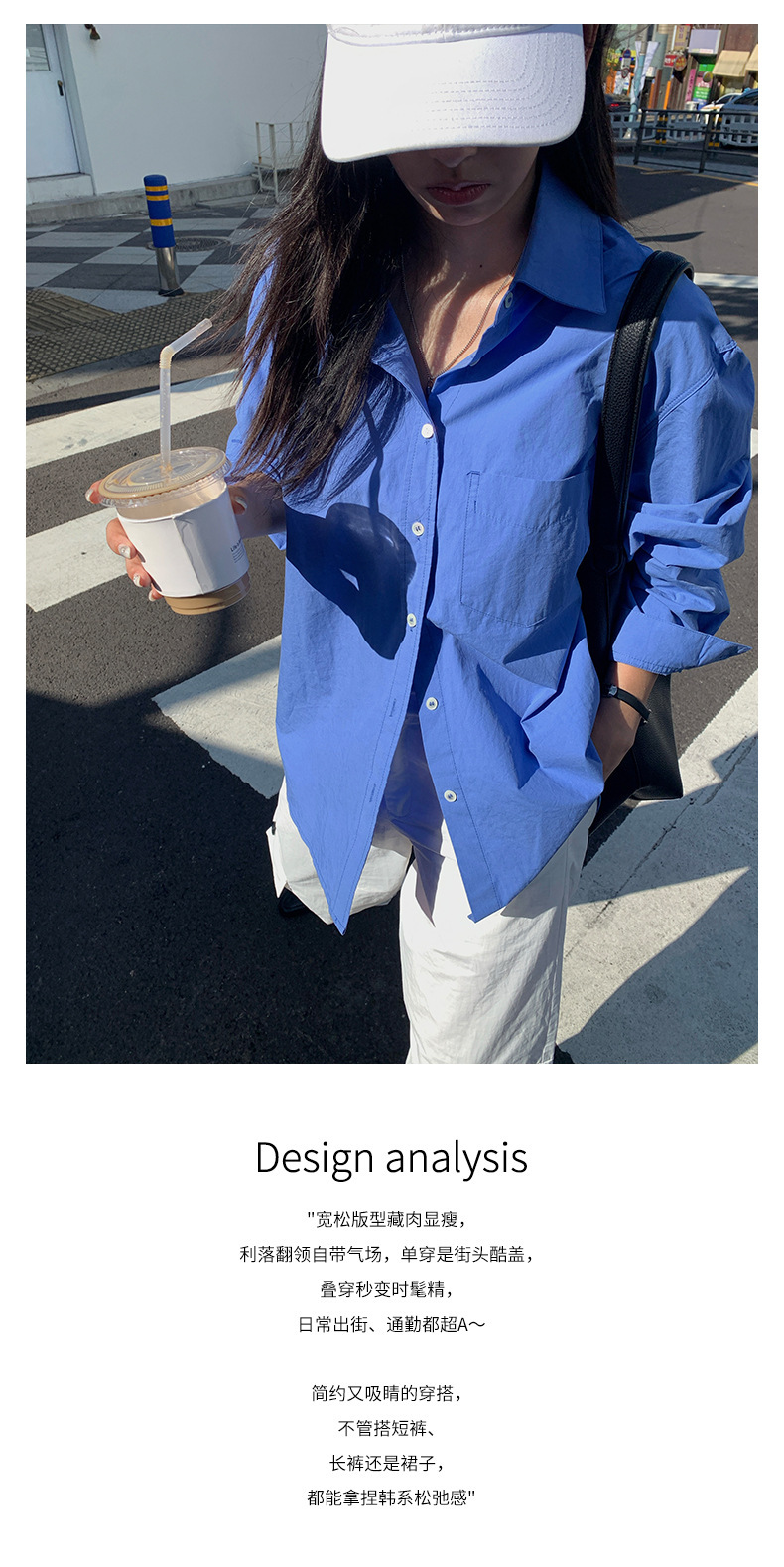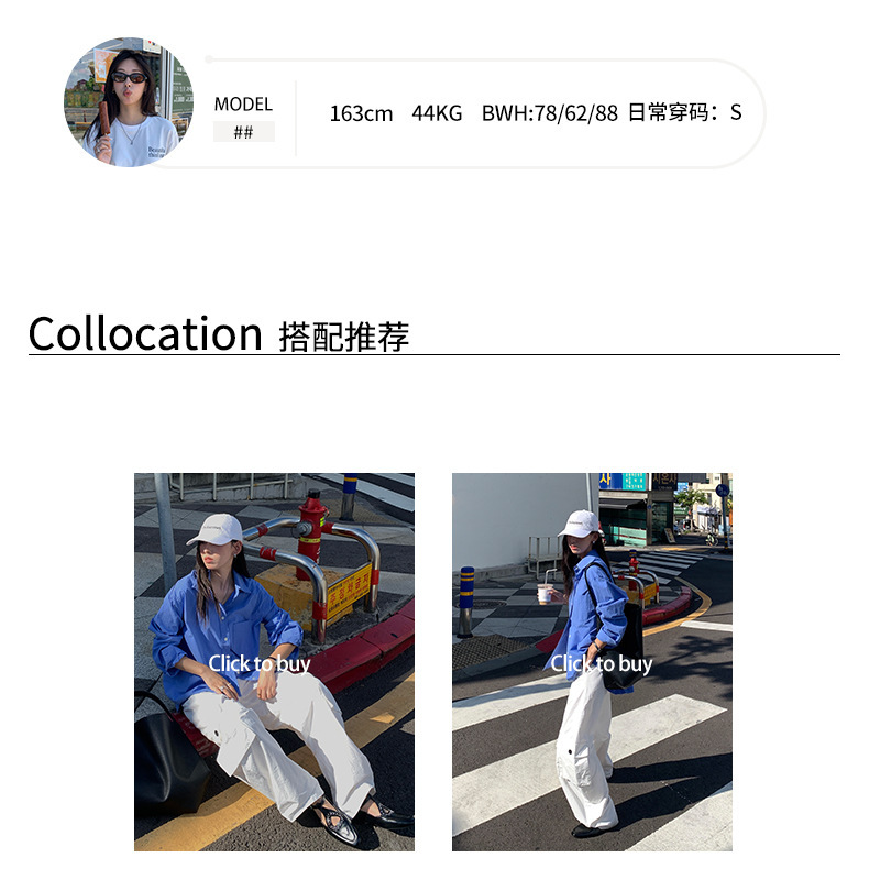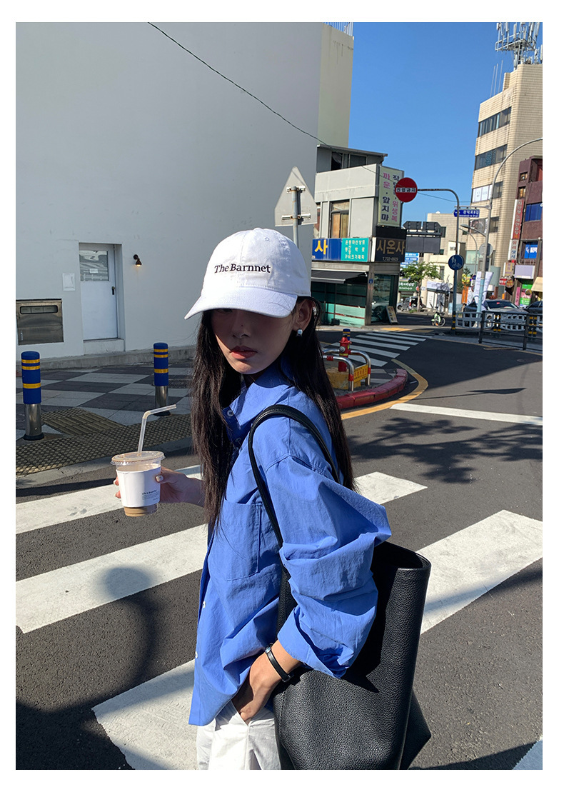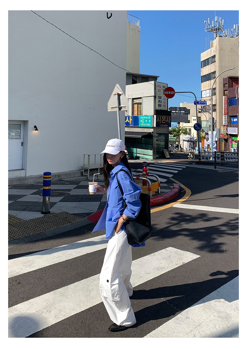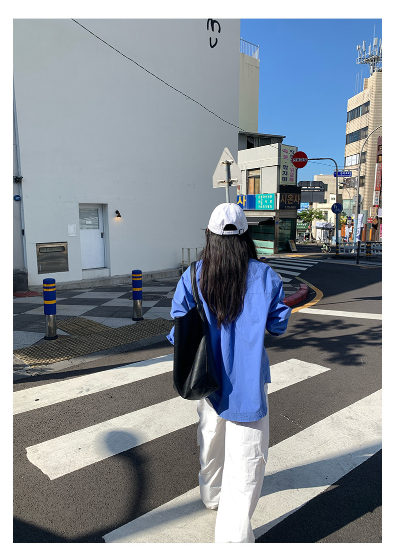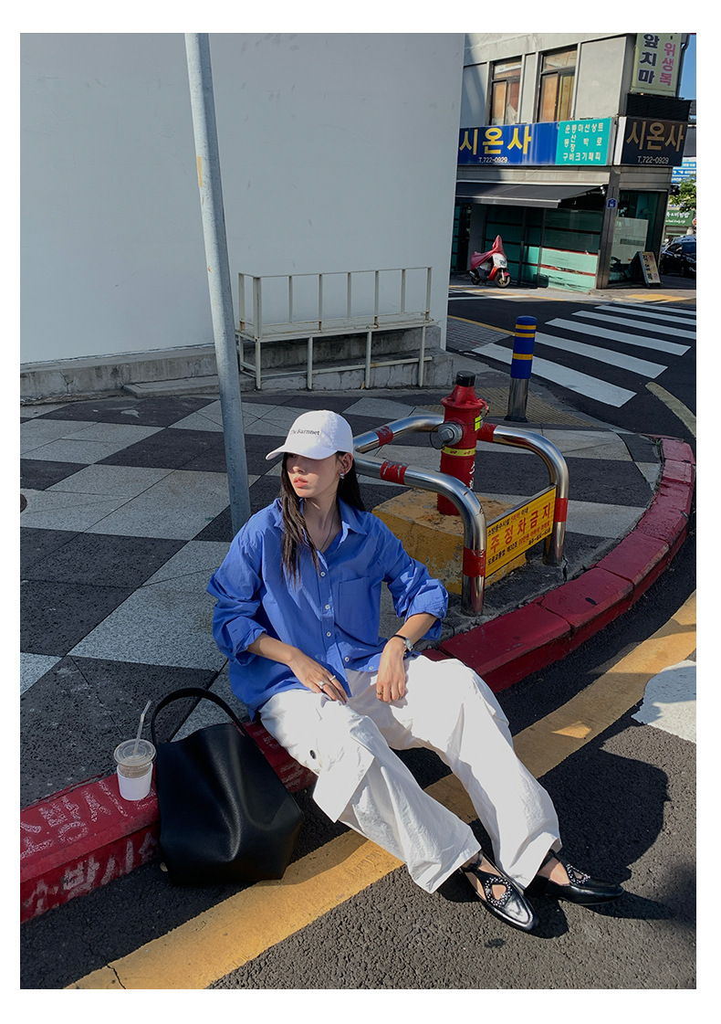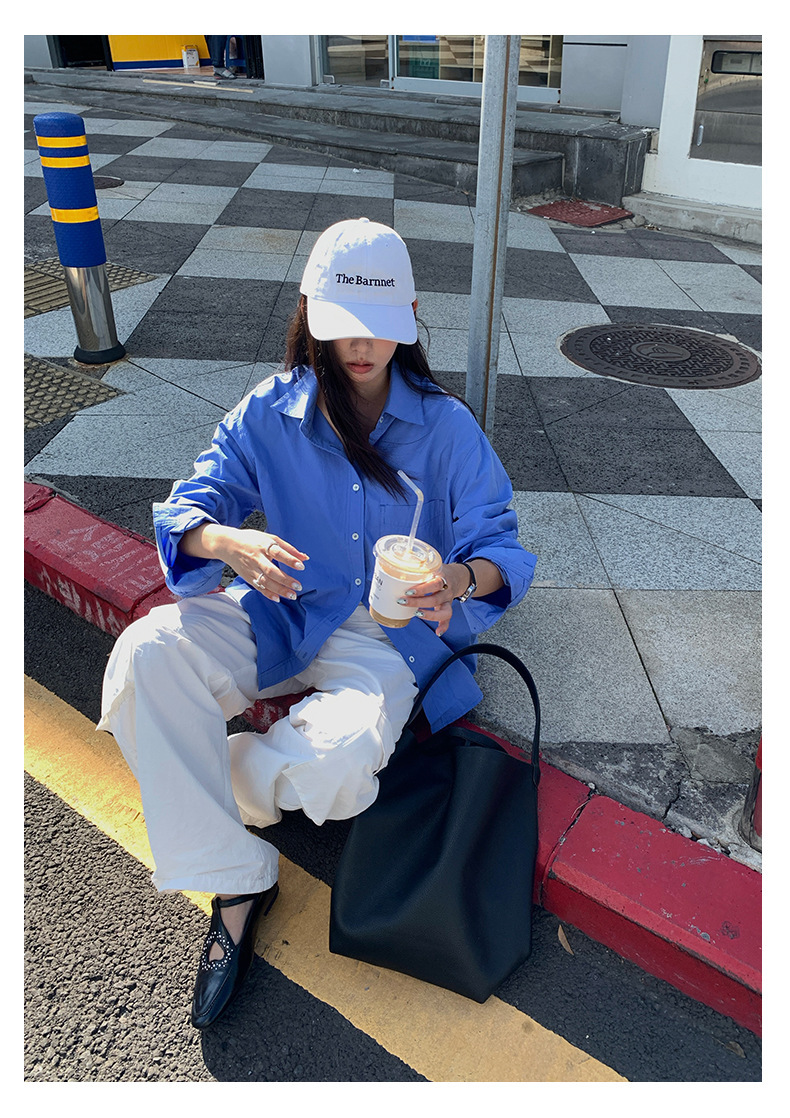 *o-ha-you*【FHZH1CA5030855】初秋純棉寶藍色襯衫長袖寬鬆純色疊穿襯衫外套開襟衫潮流