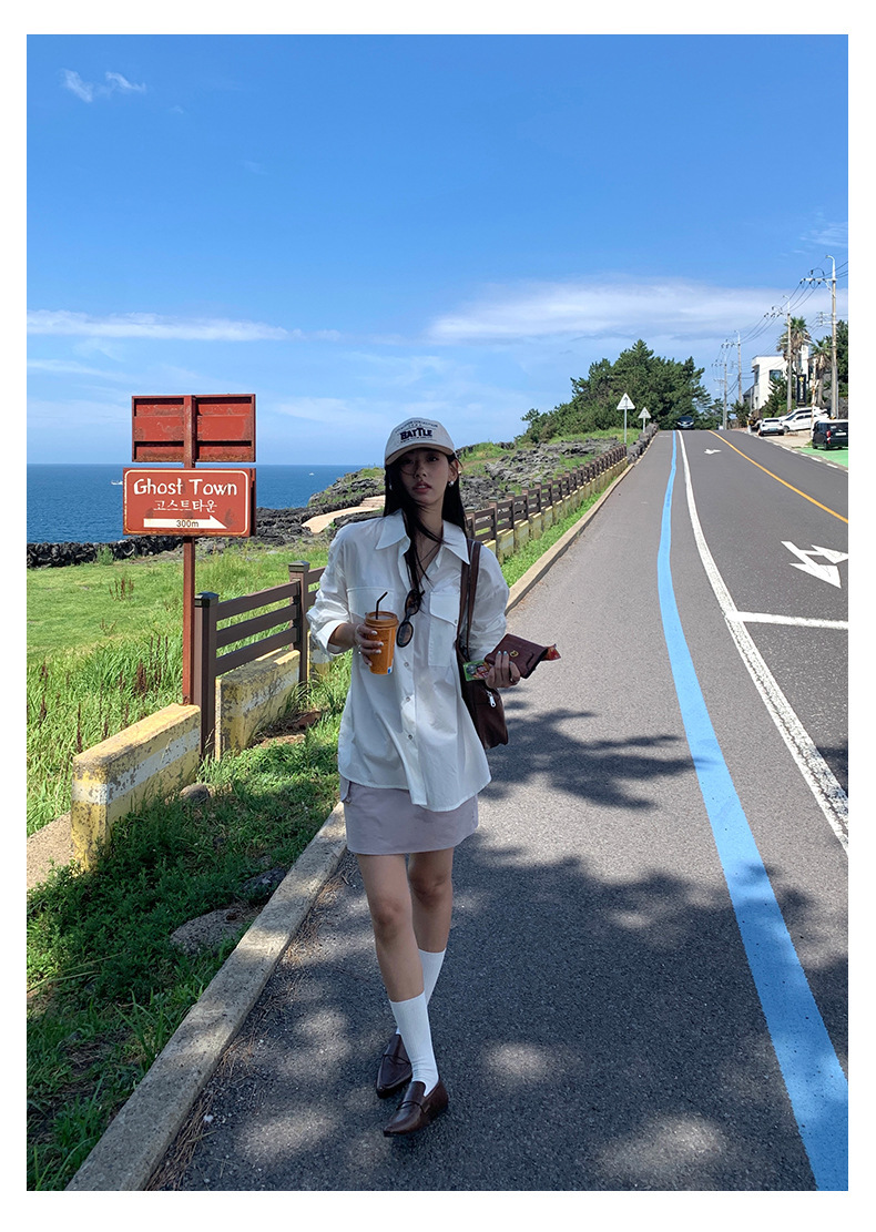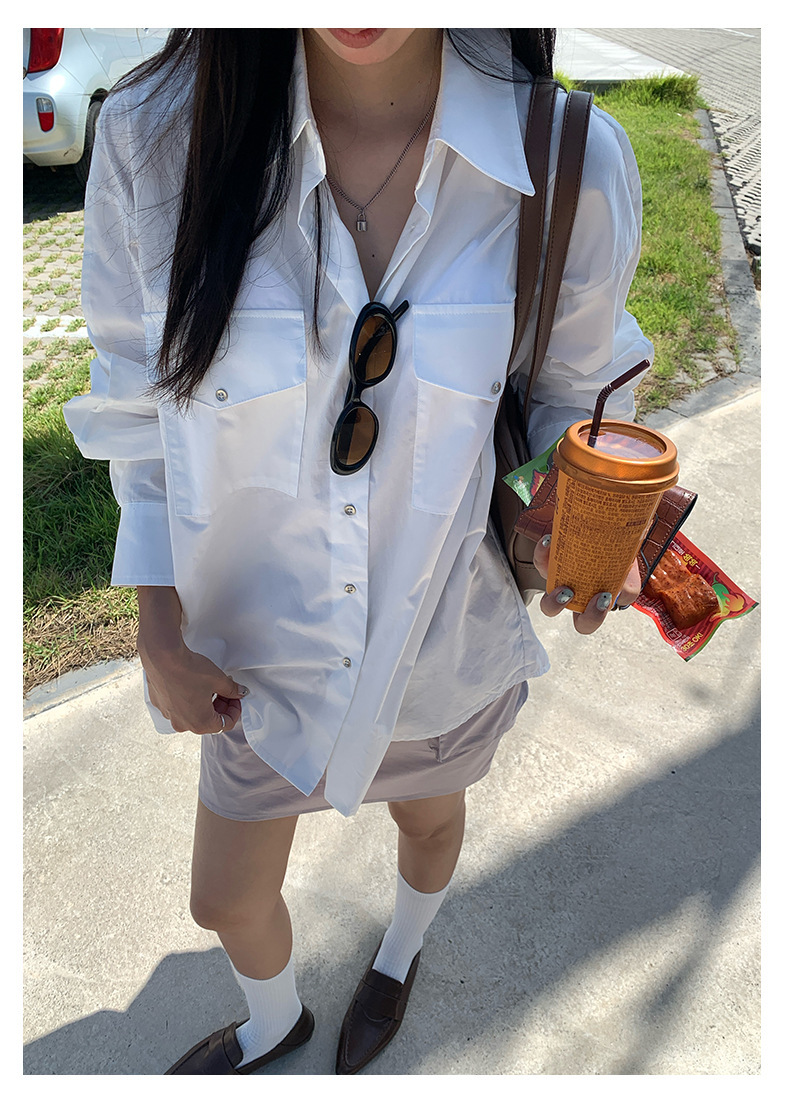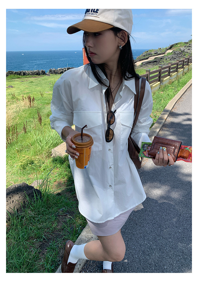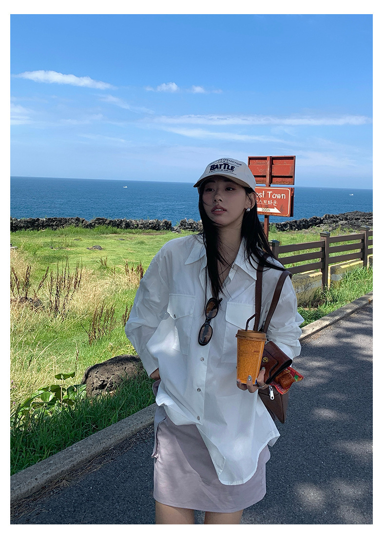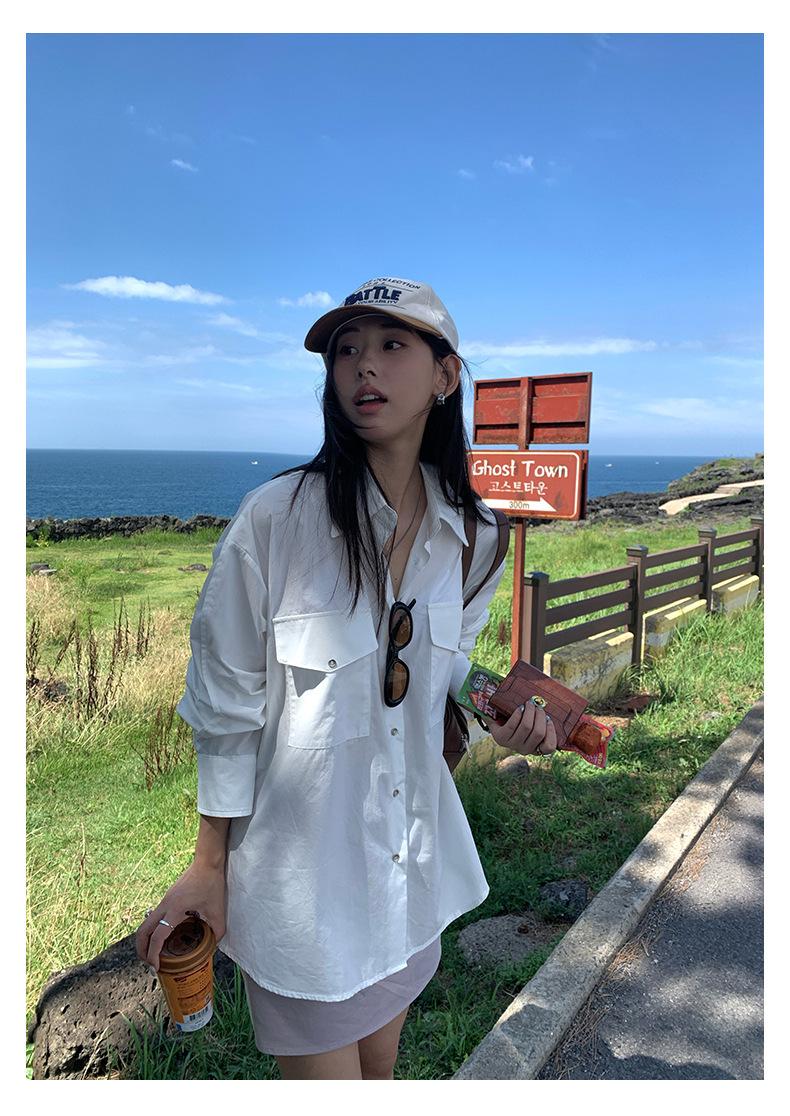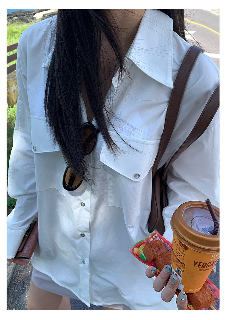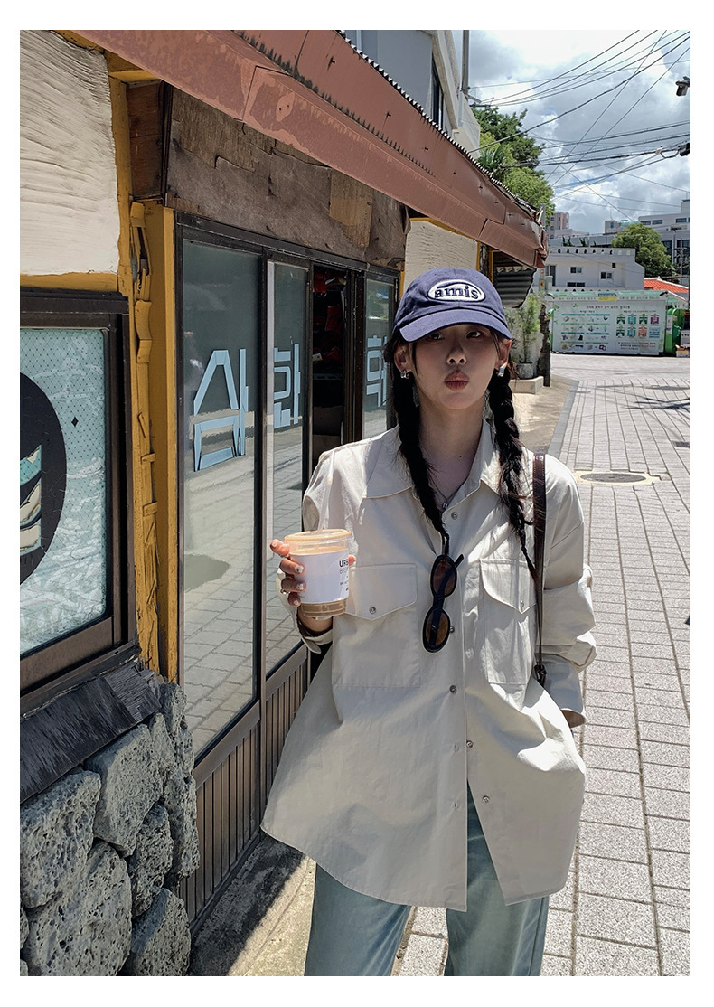 *o-ha-you*【FHZH1CA5030856】韓版秋季新款棉質工裝外穿襯衫寬鬆長袖設計感上衣-2色