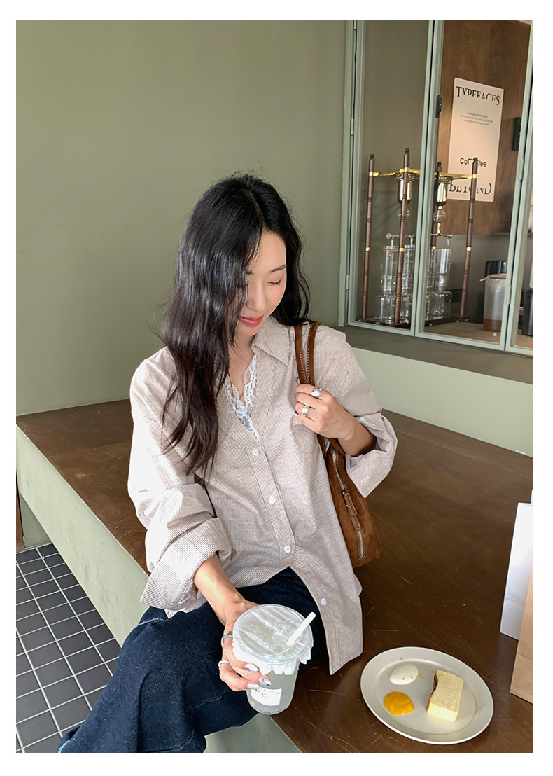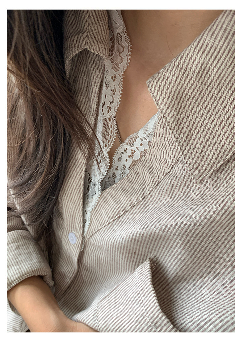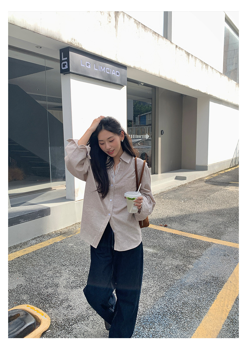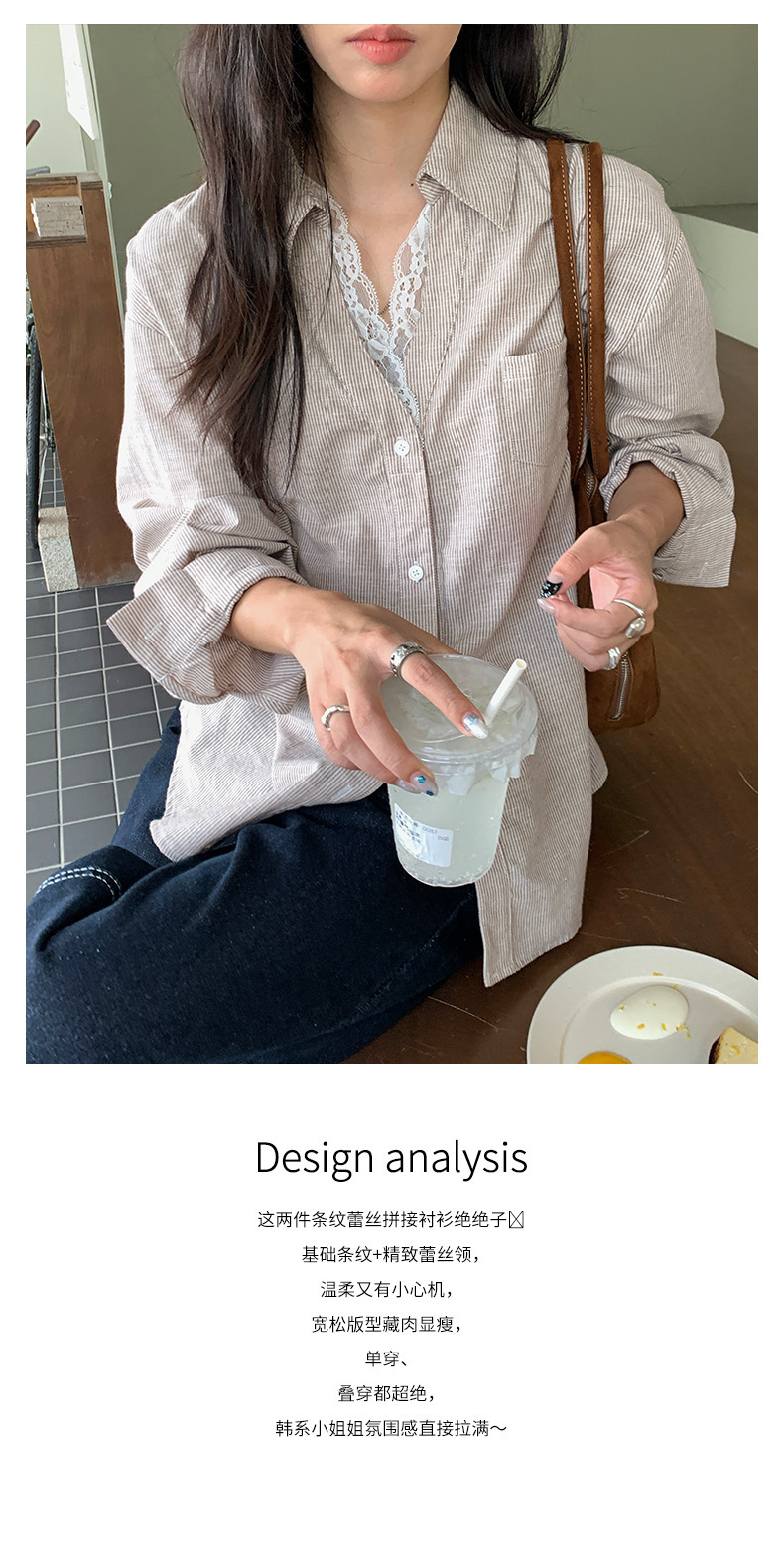 *o-ha-you*【FHZH1CA5030896】早秋氛圍感穿搭韓版chic蕾絲拼接長袖襯衫甜美上衣-2色