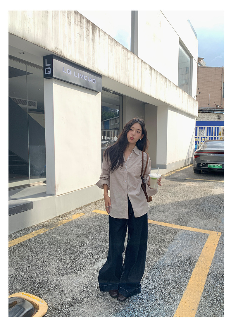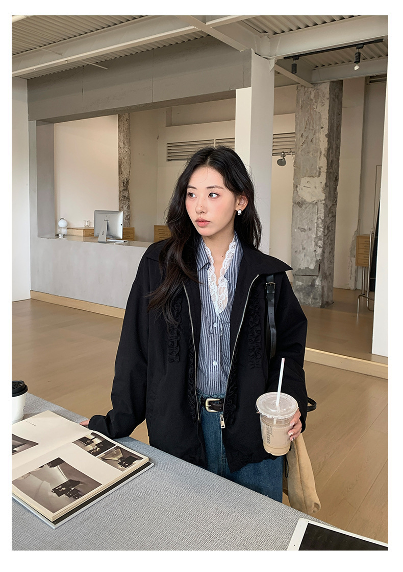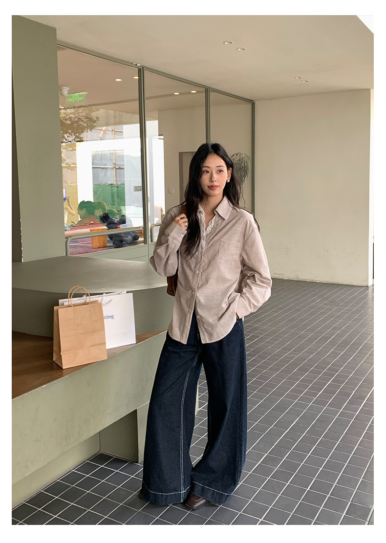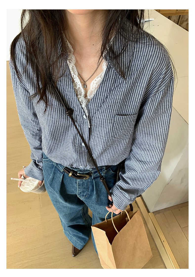 *o-ha-you*【FHZH1CA5030896】早秋氛圍感穿搭韓版chic蕾絲拼接長袖襯衫甜美上衣-2色