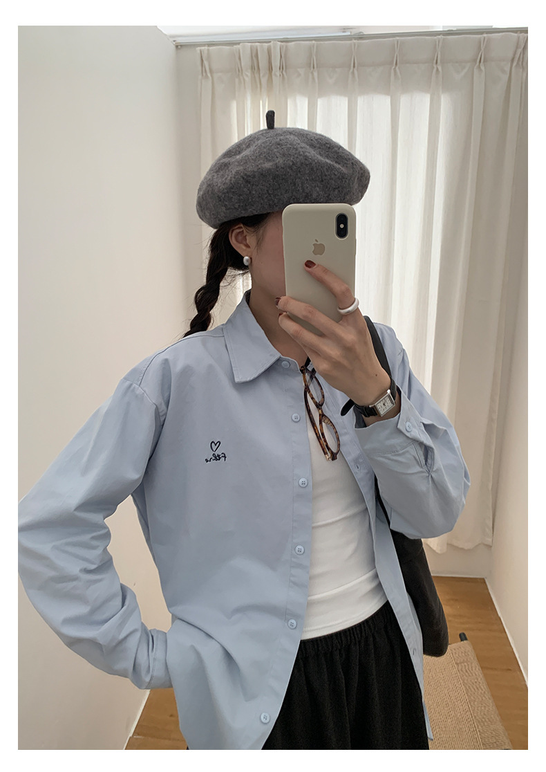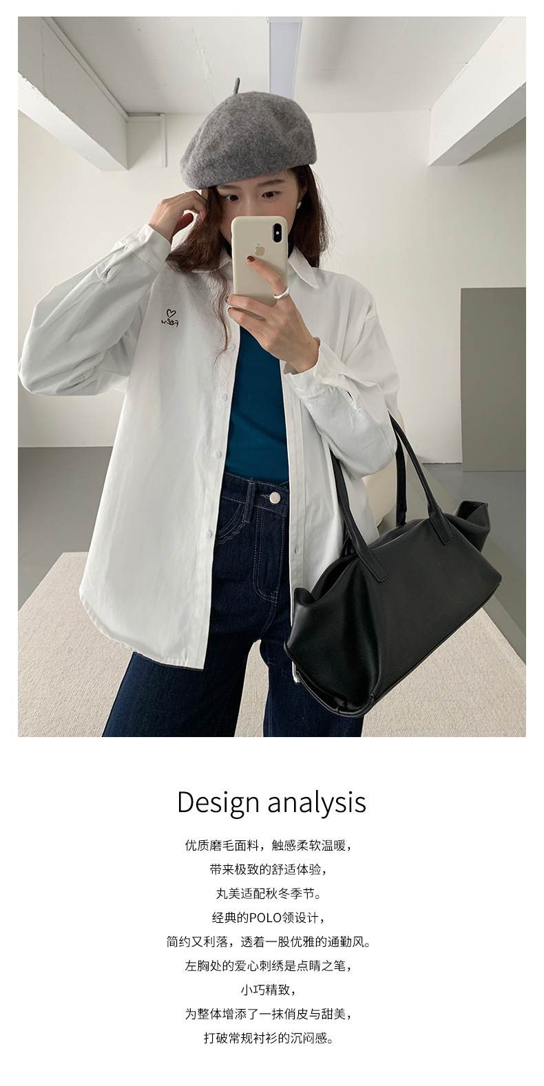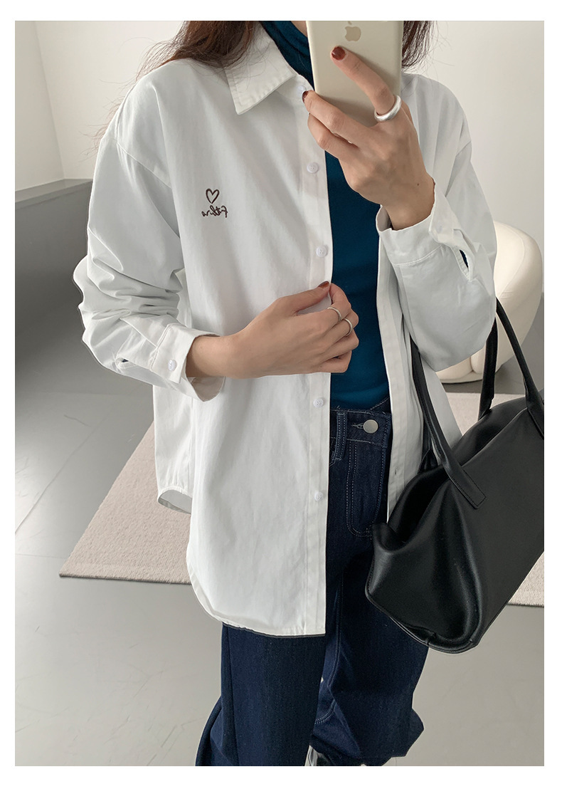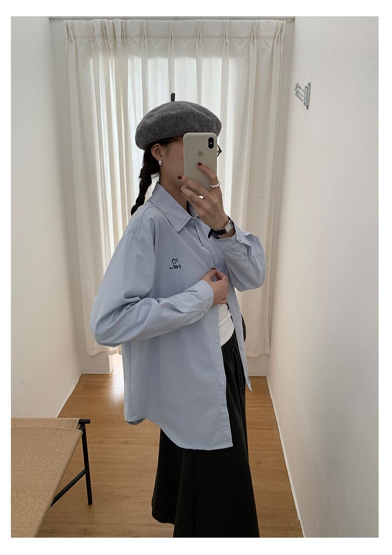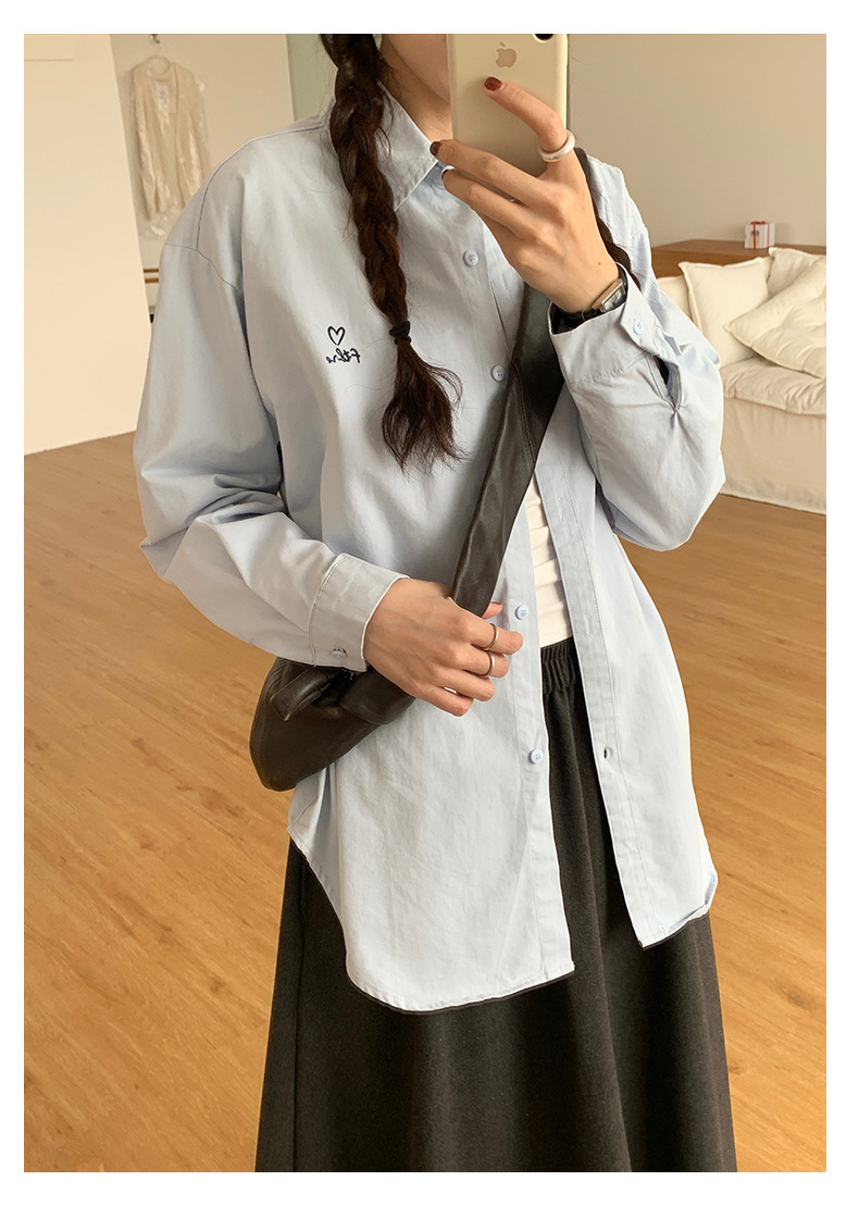*o-ha-you*【FHZH1CA5041083】韓系POLO領磨毛愛心刺繡長袖襯衫秋冬疊穿百搭通勤上衣-2色