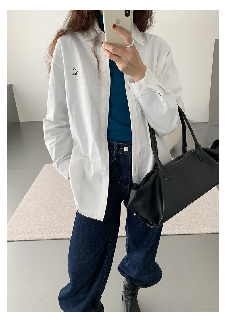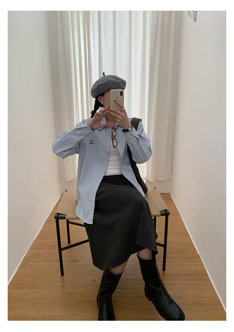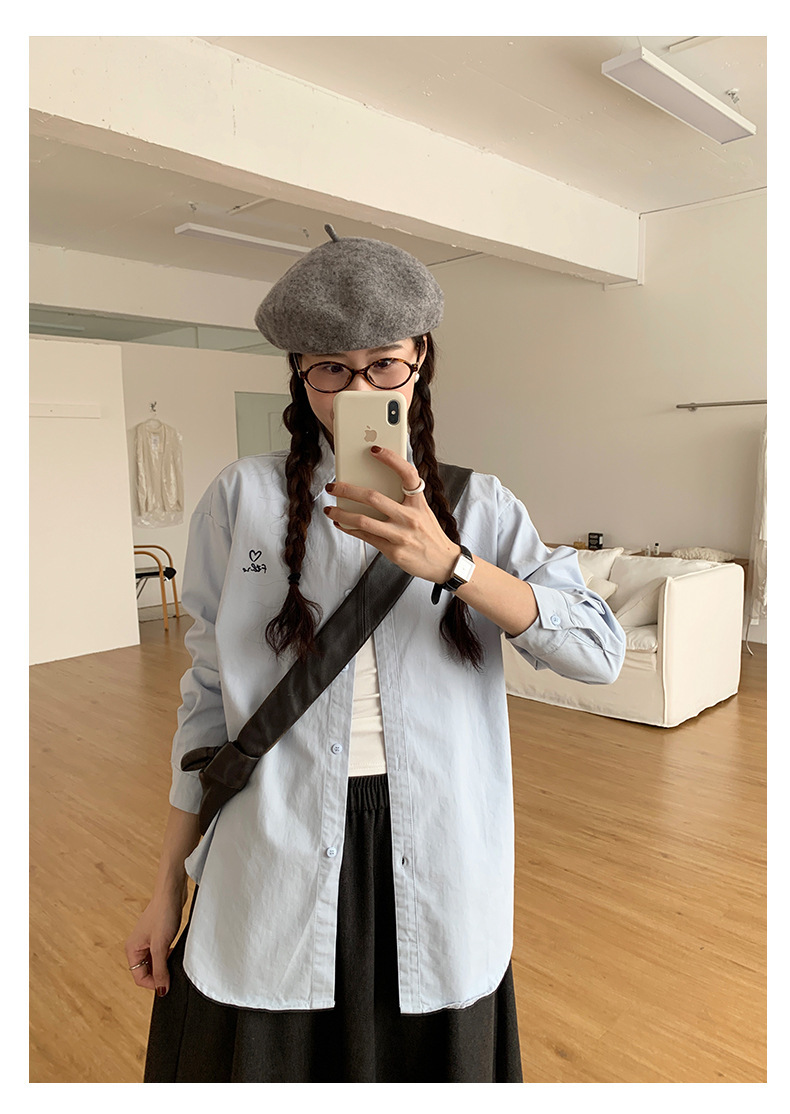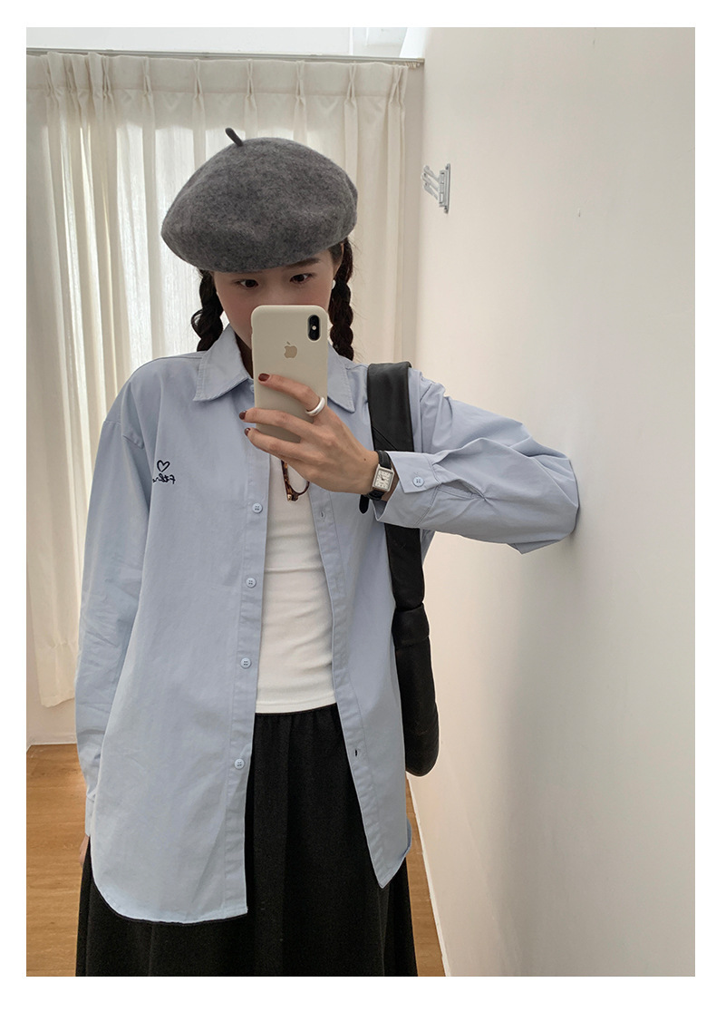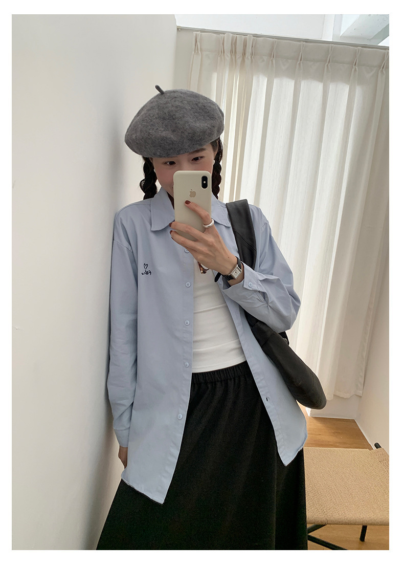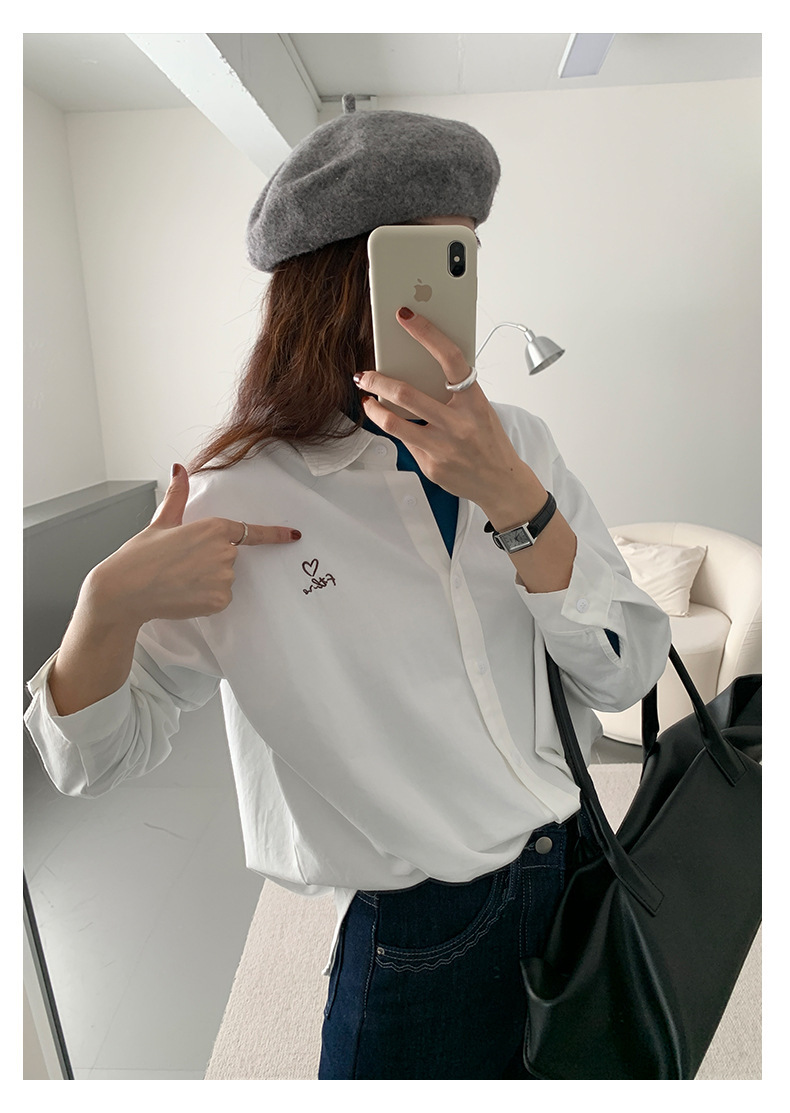 *o-ha-you*【FHZH1CA5041083】韓系POLO領磨毛愛心刺繡長袖襯衫秋冬疊穿百搭通勤上衣-2色