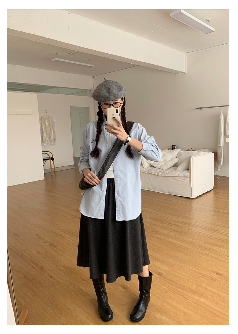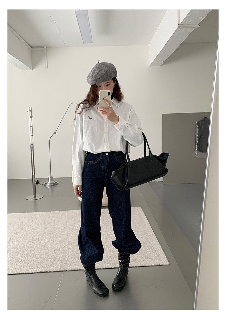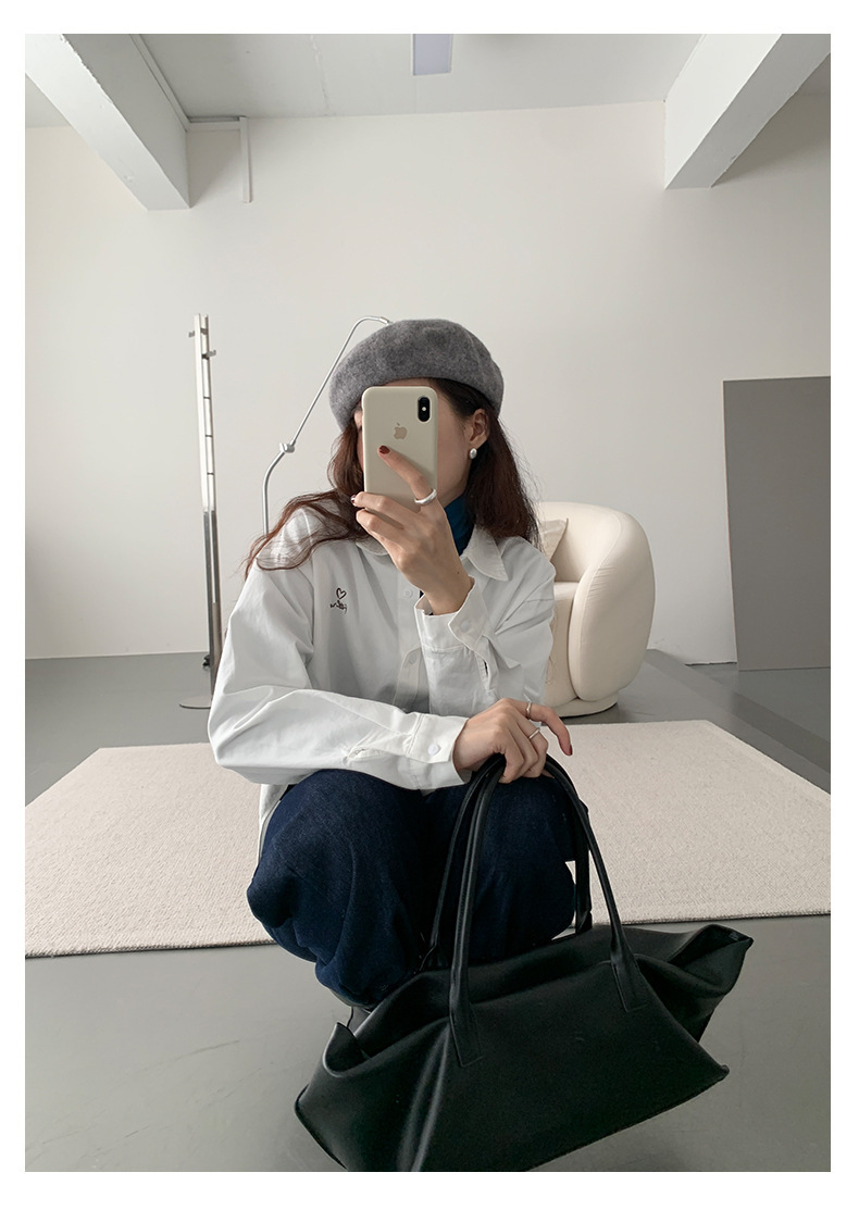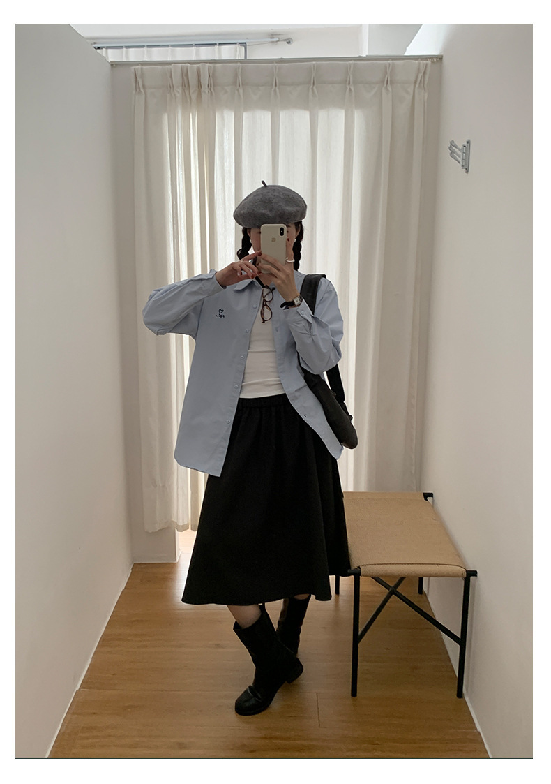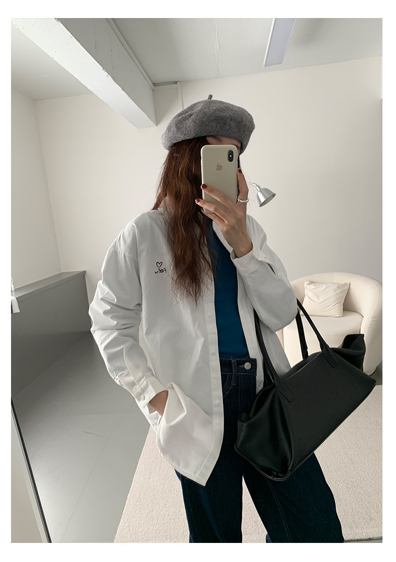 *o-ha-you*【FHZH1CA5041083】韓系POLO領磨毛愛心刺繡長袖襯衫秋冬疊穿百搭通勤上衣-2色